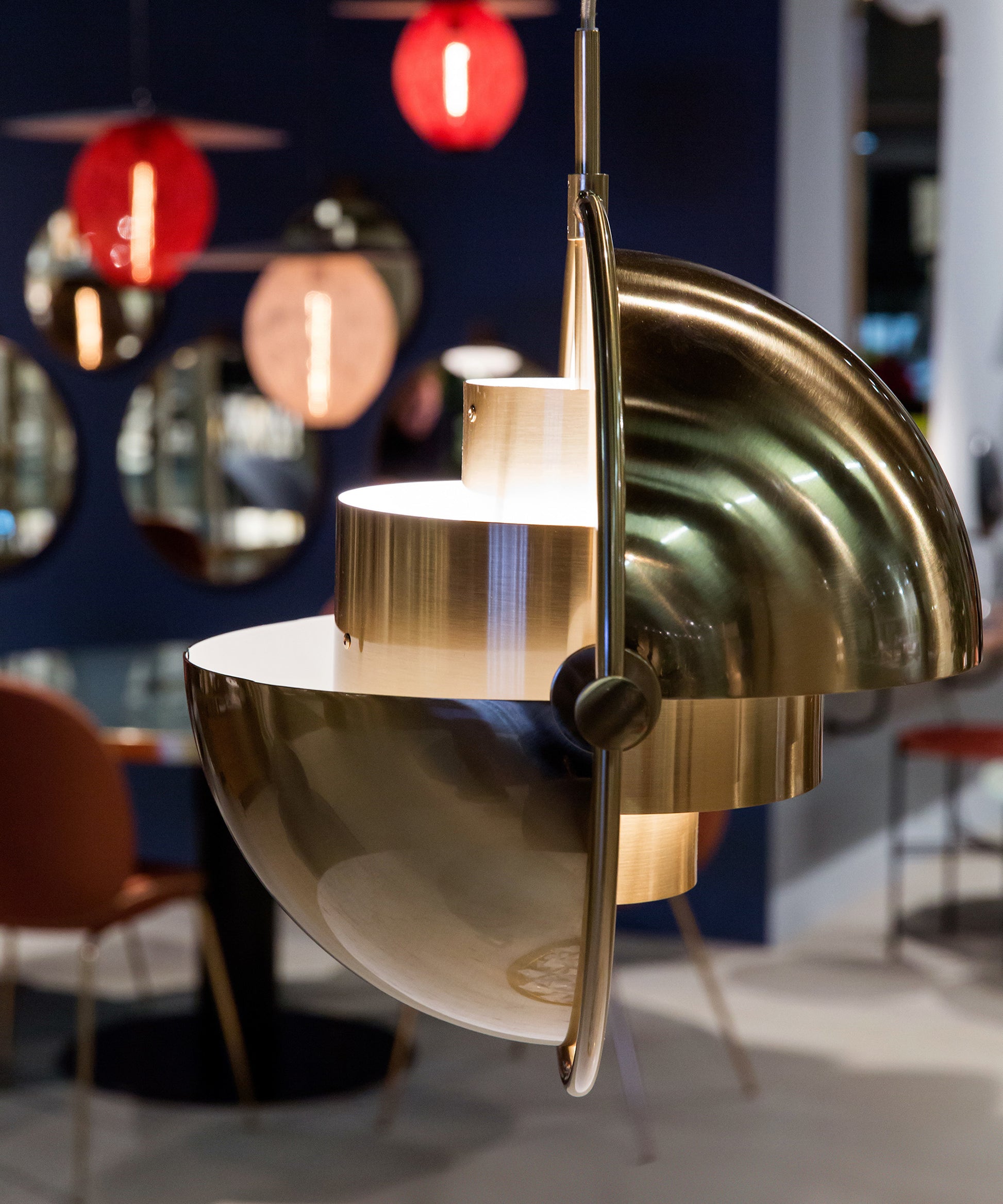 Designed in 1972, the Multi-Lite Pendant can be directed upwards, downwards or project an asymmetrical art light.
