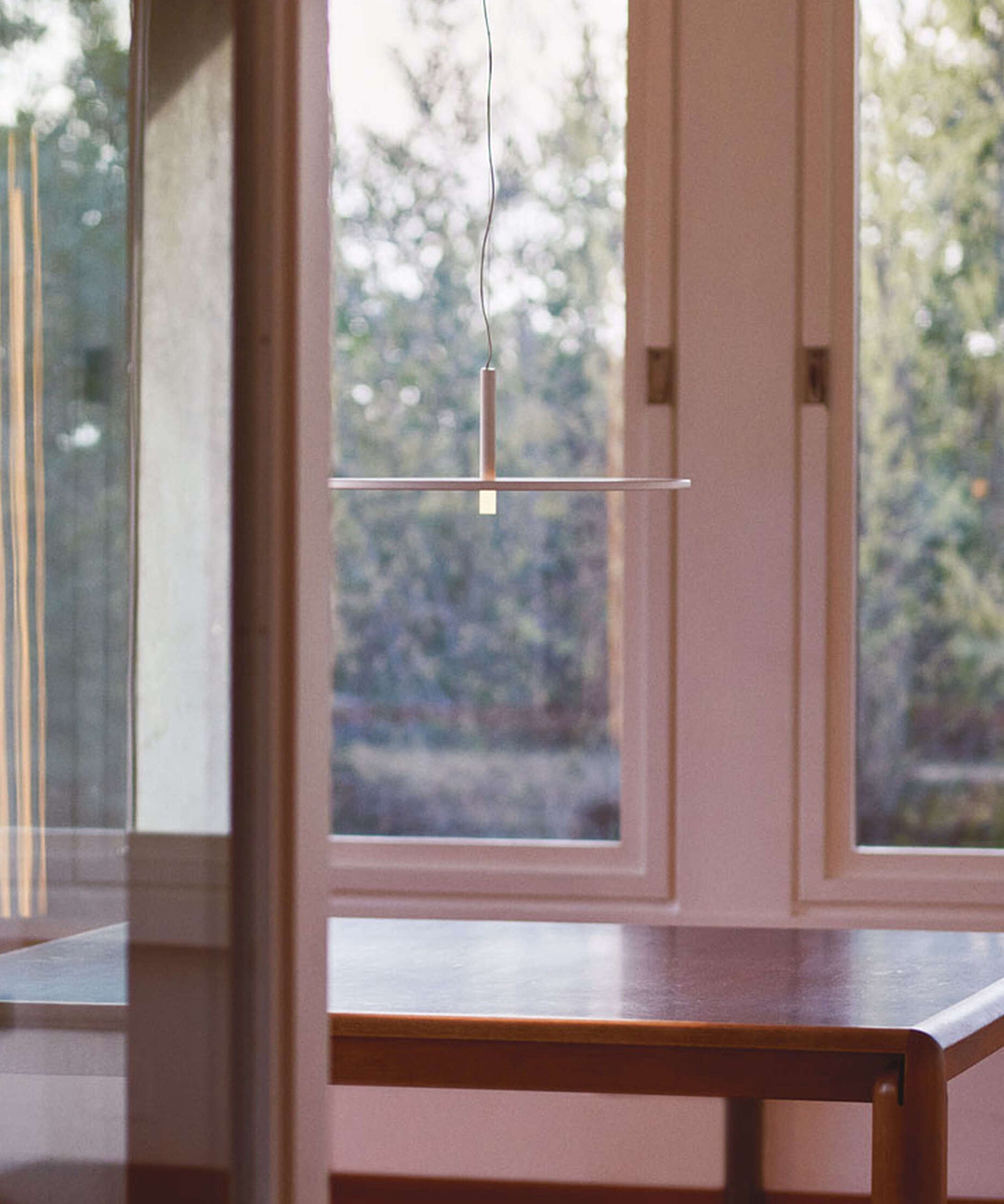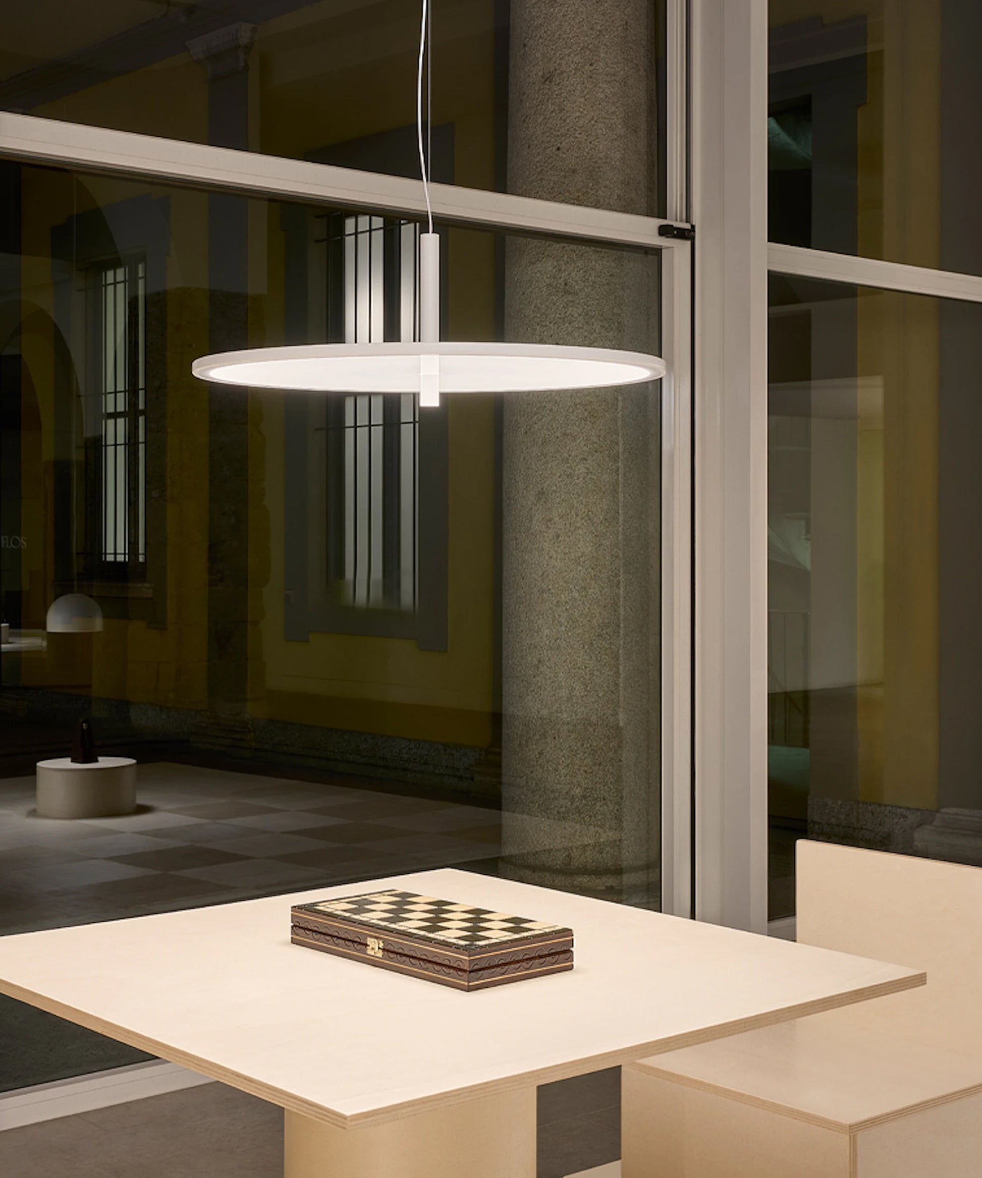 My Circuit Disc is a suspended lamp with diffused light composed of a slender horizontal disc crossed by a vertical stem with a refined balance of geometries.