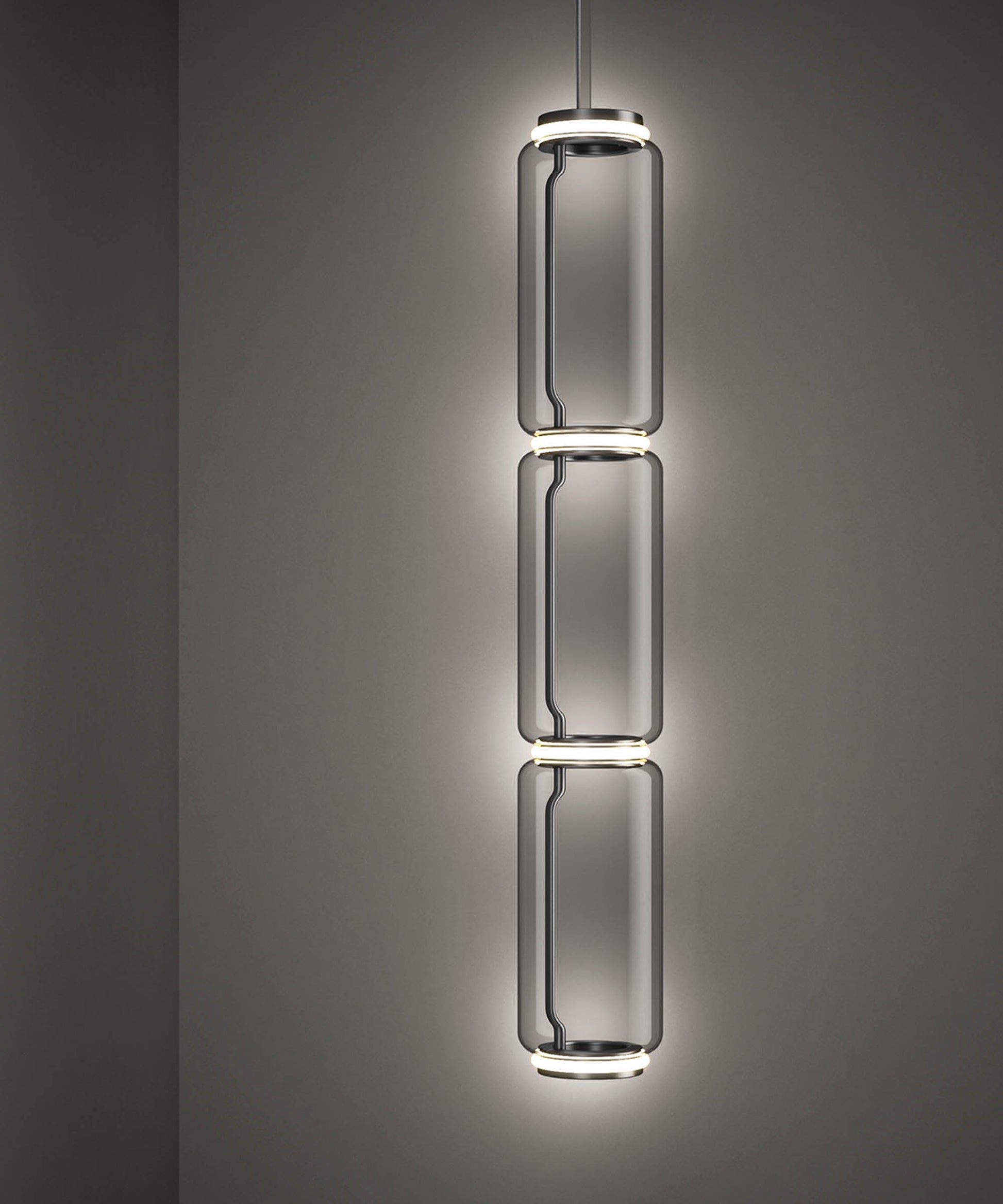 Interior Design's 2019 Best of Year Awards Winner Another pioneering lighting design in the array of lamps and lighting fixtures FLOS is known for, Noctambule LED dimmable pendant light with tall cylinders is one of designer Konstantin Grcic's finest creations.