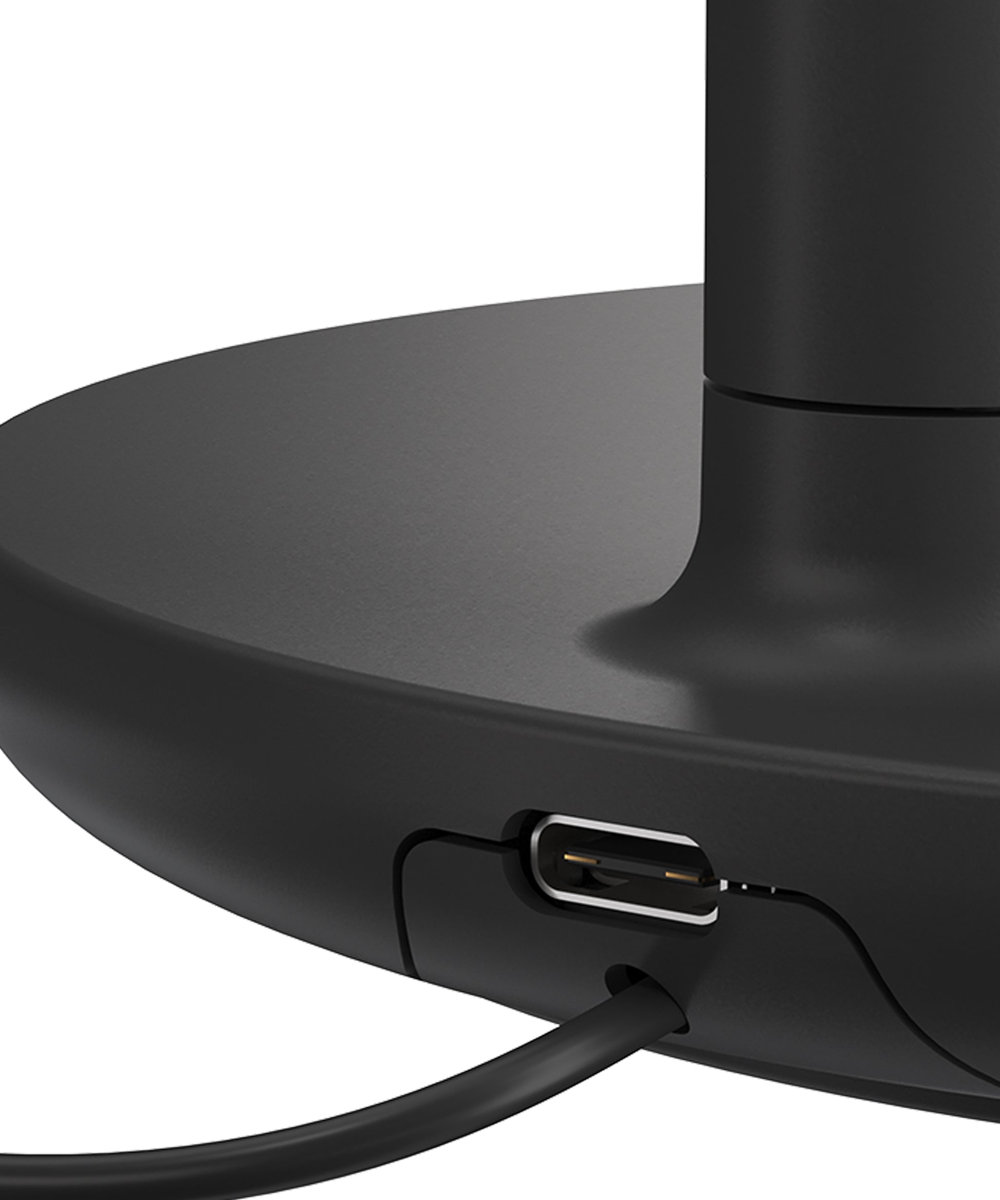 Key features an Integrated USB-C port into the base to charge additional devices. Round flat head for minimal visual intrusion A patented ultra-flat lens with a very high efficiency of 97% *Only the Oblique Qi version comes with a built-in wireless charging port at the base. It allows users to charge their smartphones while freeing desks from unsightly wire and cable clutter.