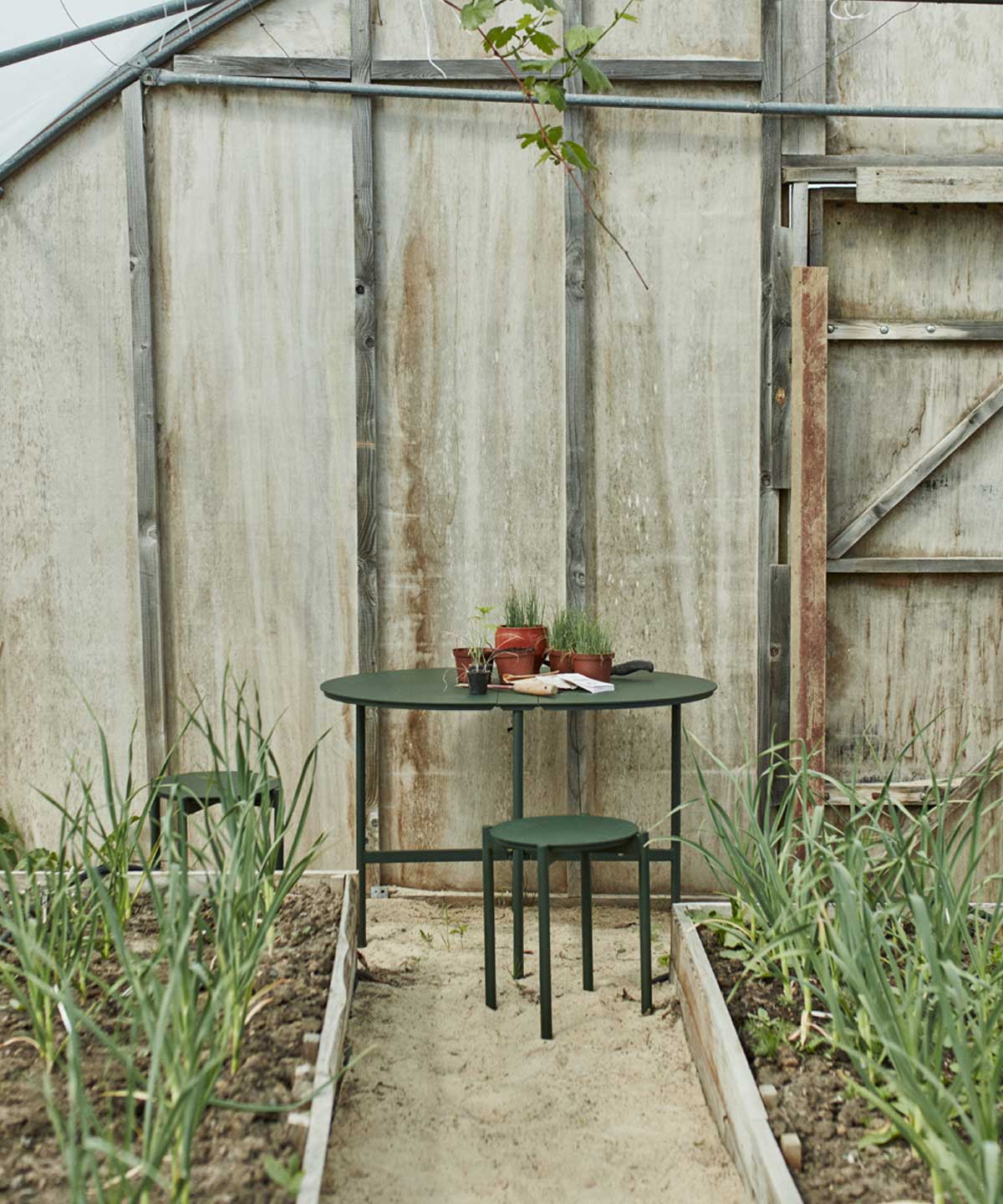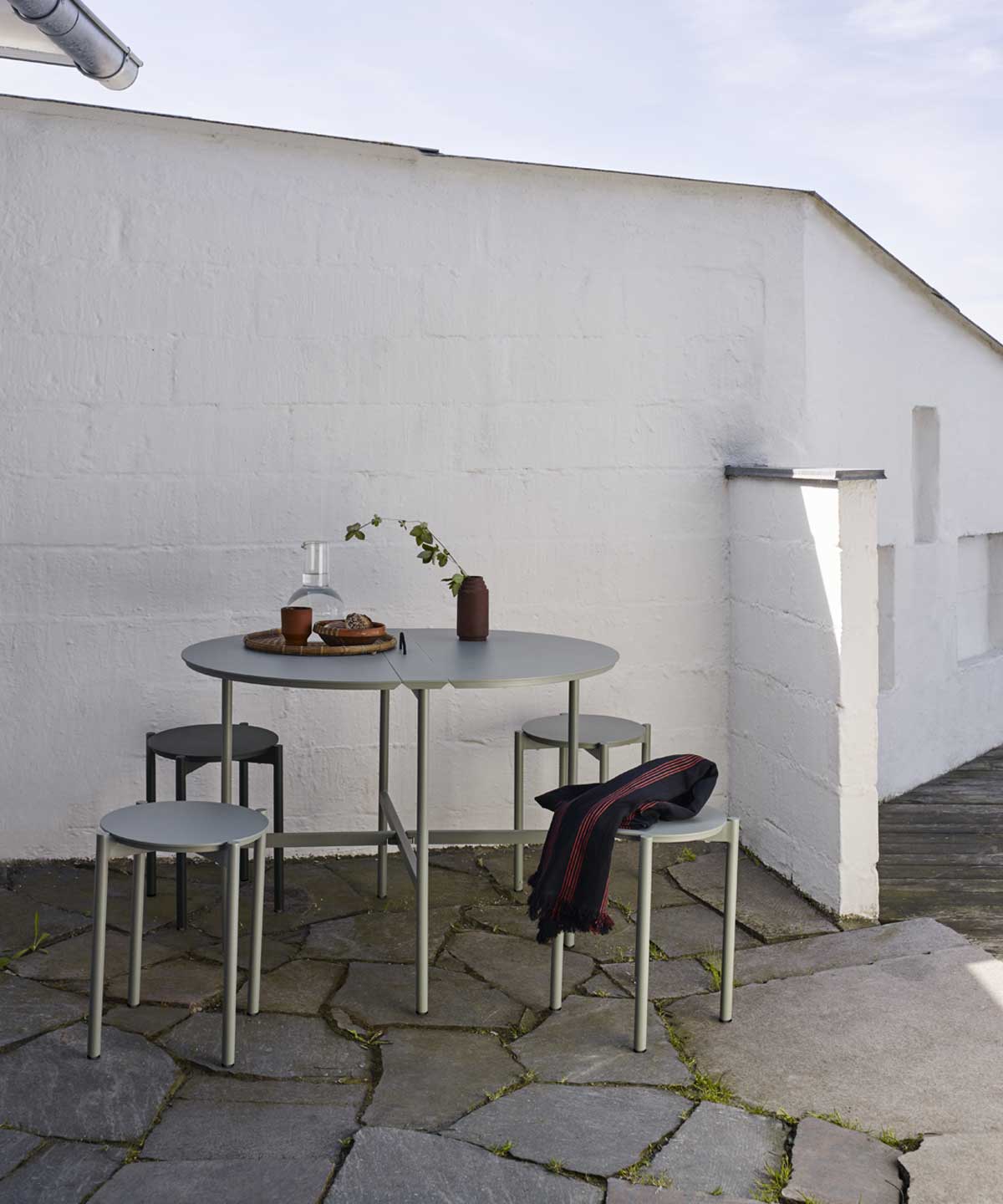 These stackable stools pair perfectly with their counterpart 'The Picnic Table,' but also make a nice complement to other outdoor furniture made from wood. The aluminum construction makes them light and easy to move around - perfect for the balcony or small terrace. Also, powder coating is a high-quality and dry finishing process which makes is possible to create a thicker and more streamlined surface than with conventional liquid paint. The coating is applied to reduce the risk of impact from moisture, UV, scratches and corrosion.