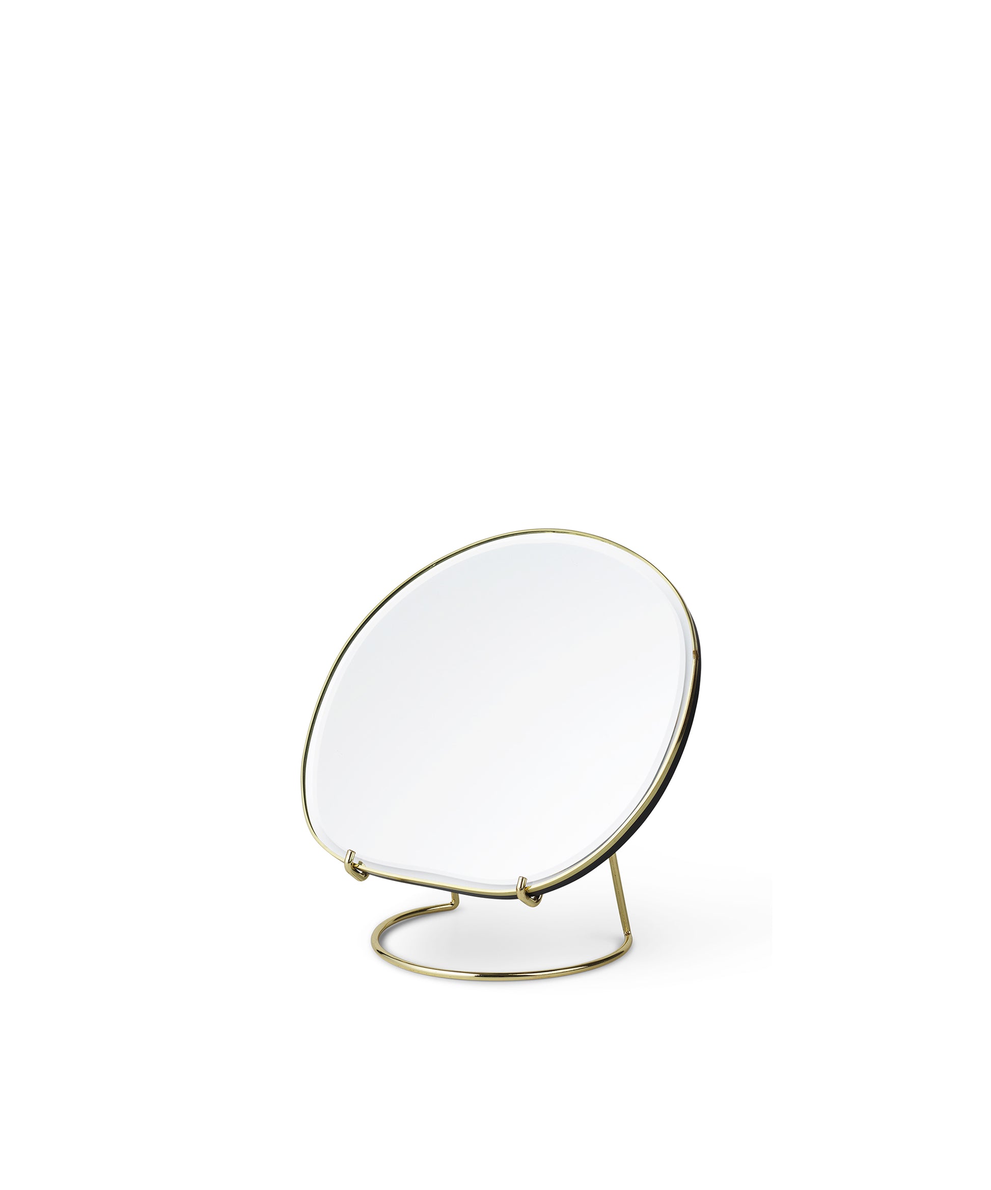 Set on a slender, detachable metal stand, our shape-shifting Pond mirror is cut in an asymmetrical silhouette for an intriguing take on a classic design.