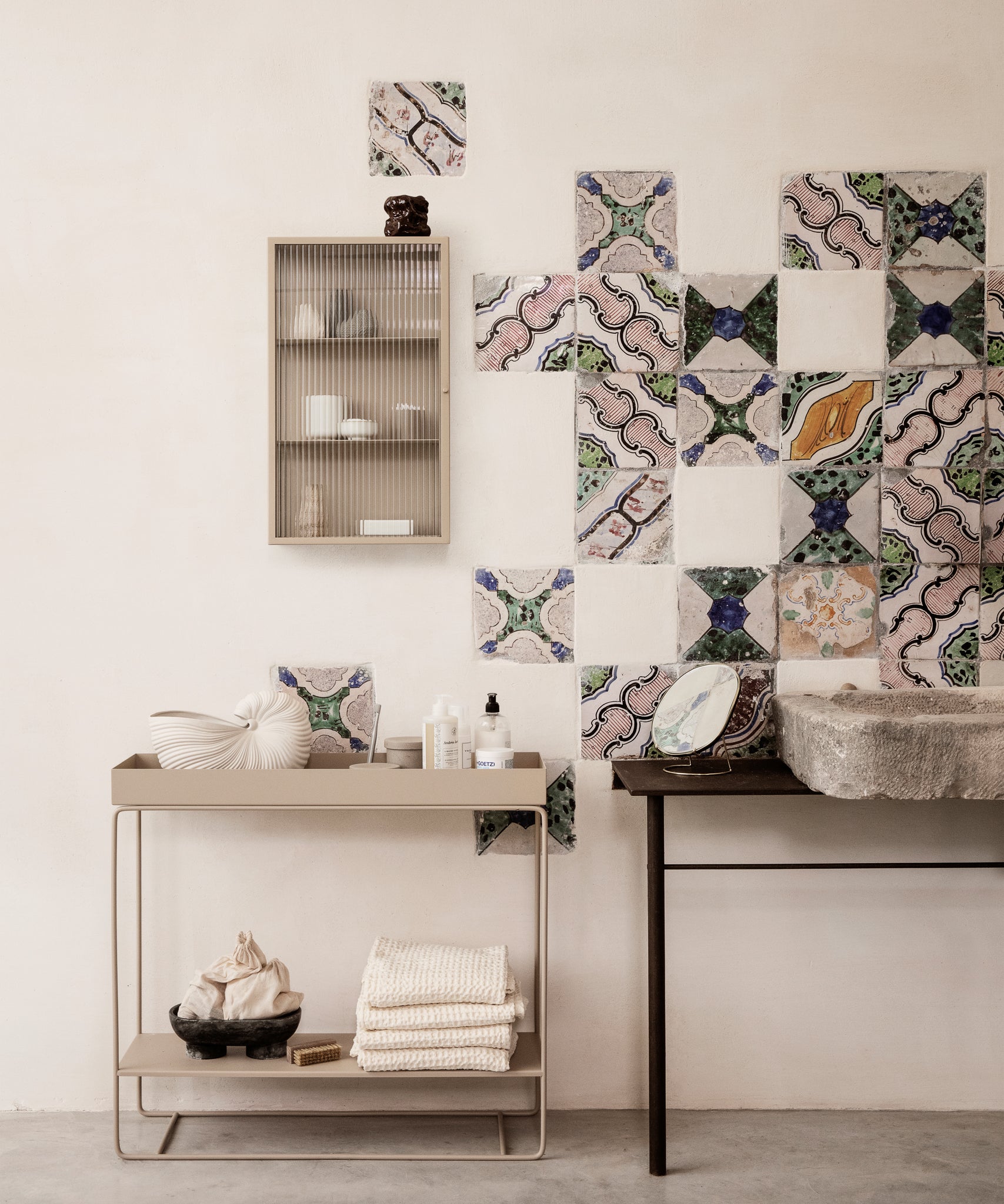 Inspired by free-flowing movements of water, the organically-shaped mirror is made to sit on any surface – from a bedroom dressing table or hallway console to a bathroom shelf – it is an elegant way to reflect your daily routine.