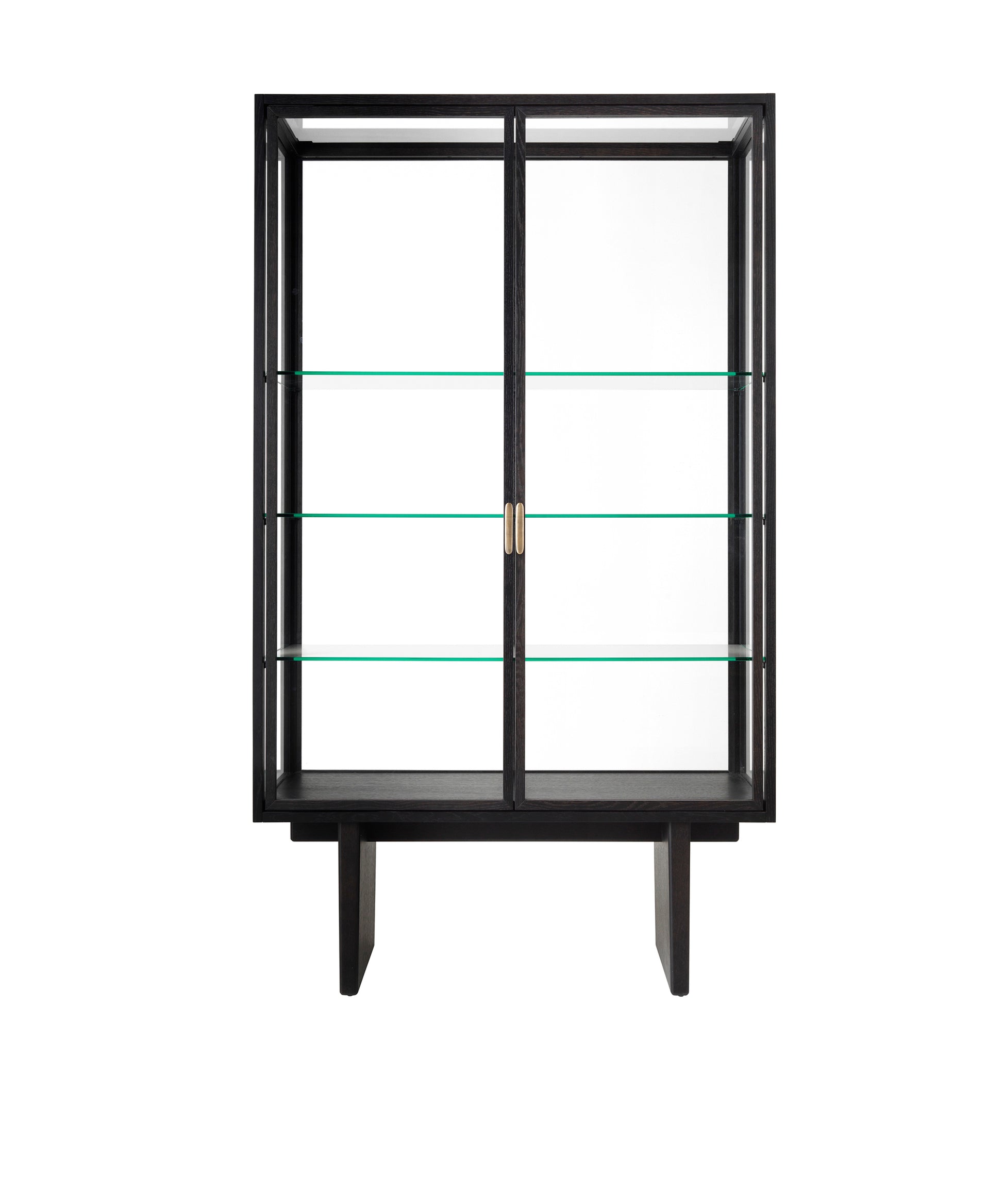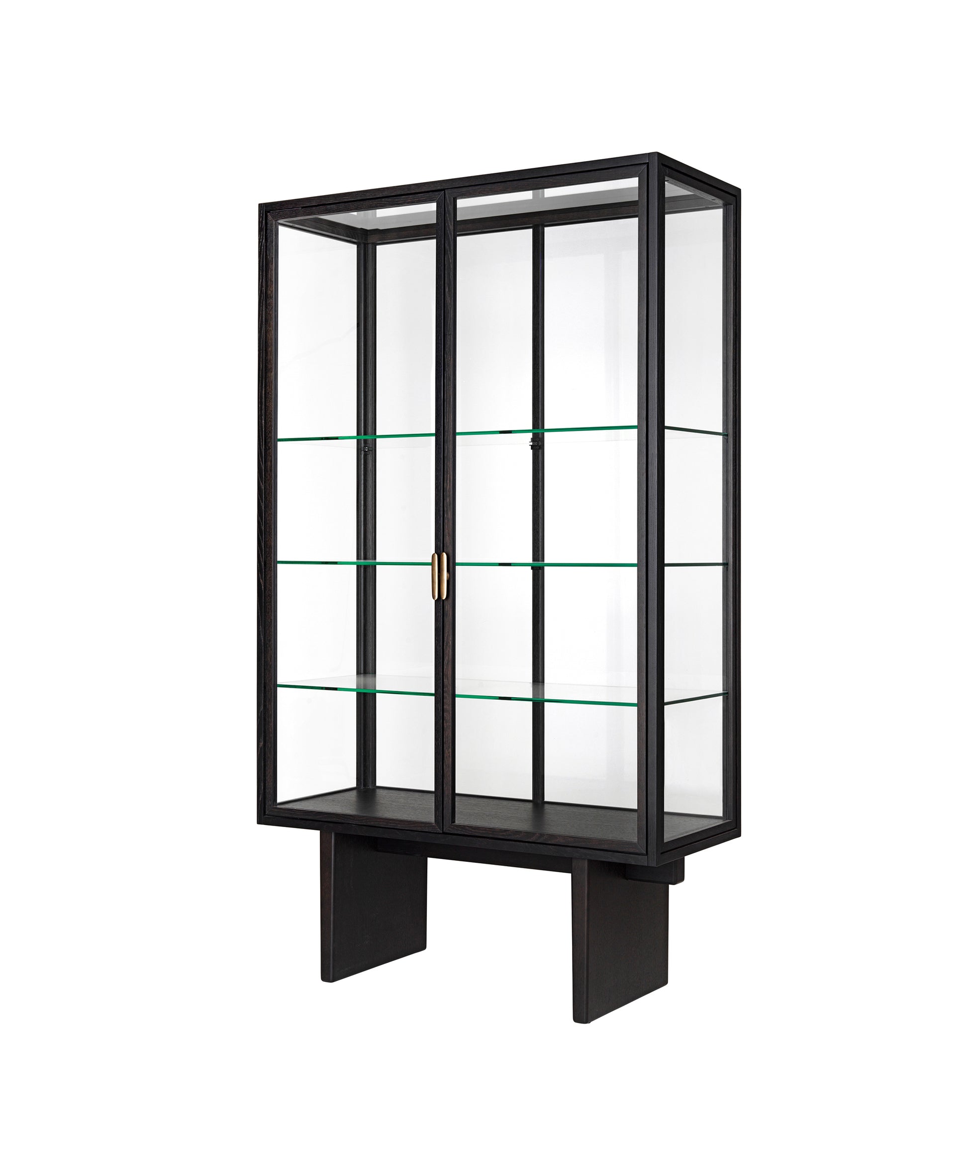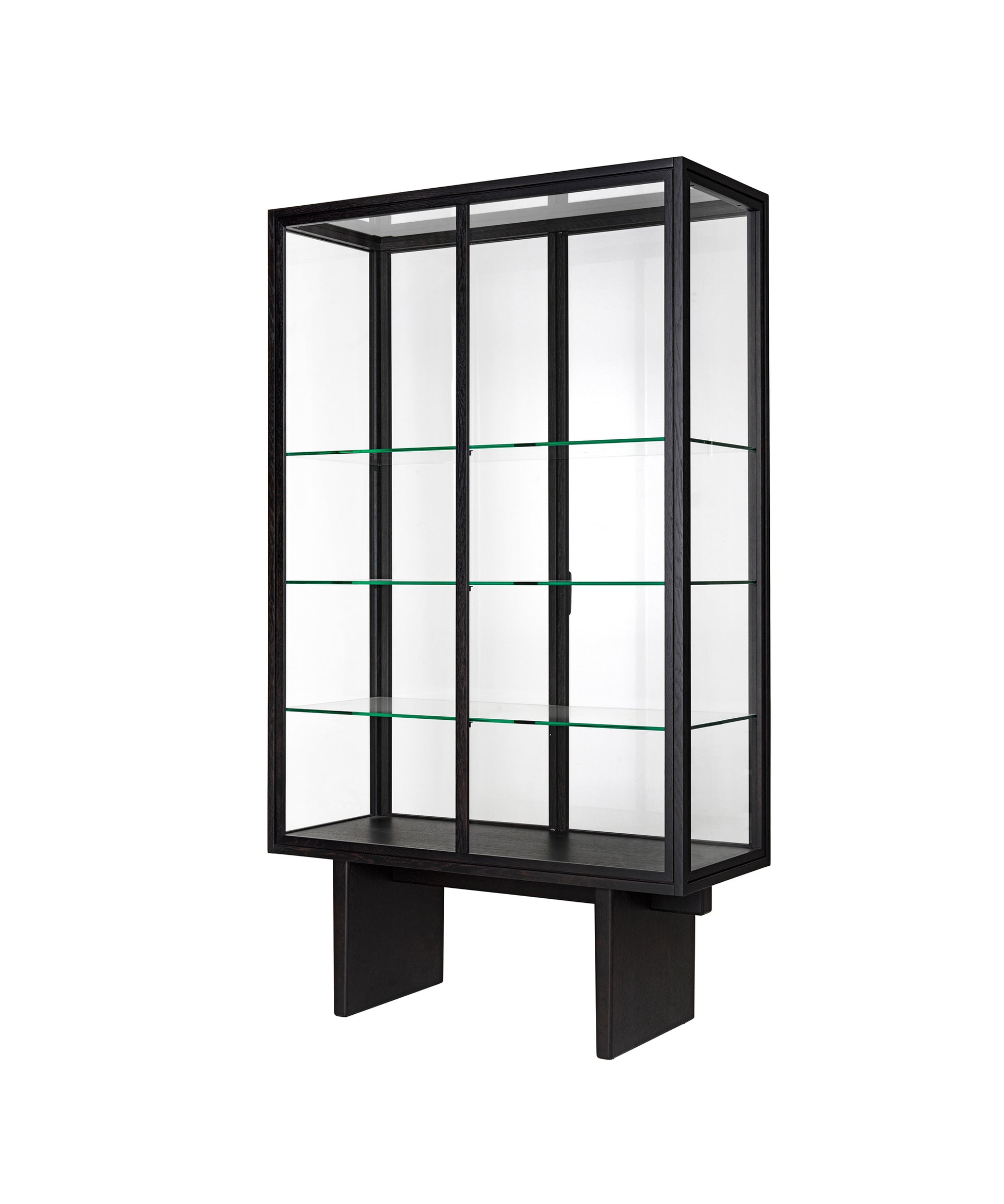 Inspired by antique Japanese furniture in both style and craft, this oak-veneered cabinet is elevated by two vertical legs, providing a lightness to its appearance and an understated elegance to its form. The frame secures a tall glass case, with three glass shelves, and two perfectly-aligned glass doors, completing the overall impression of lightness and transparency. Its very simplicity means the Private Vitrine can be used to store and display many types of possessions, from books to precious ornaments.