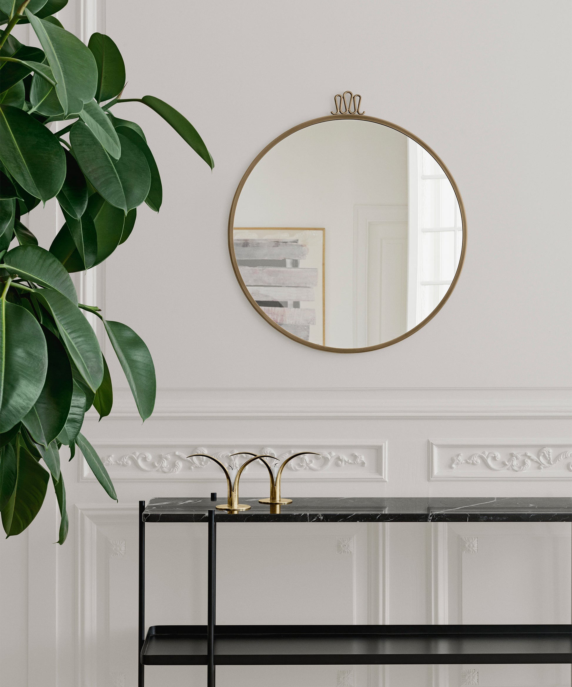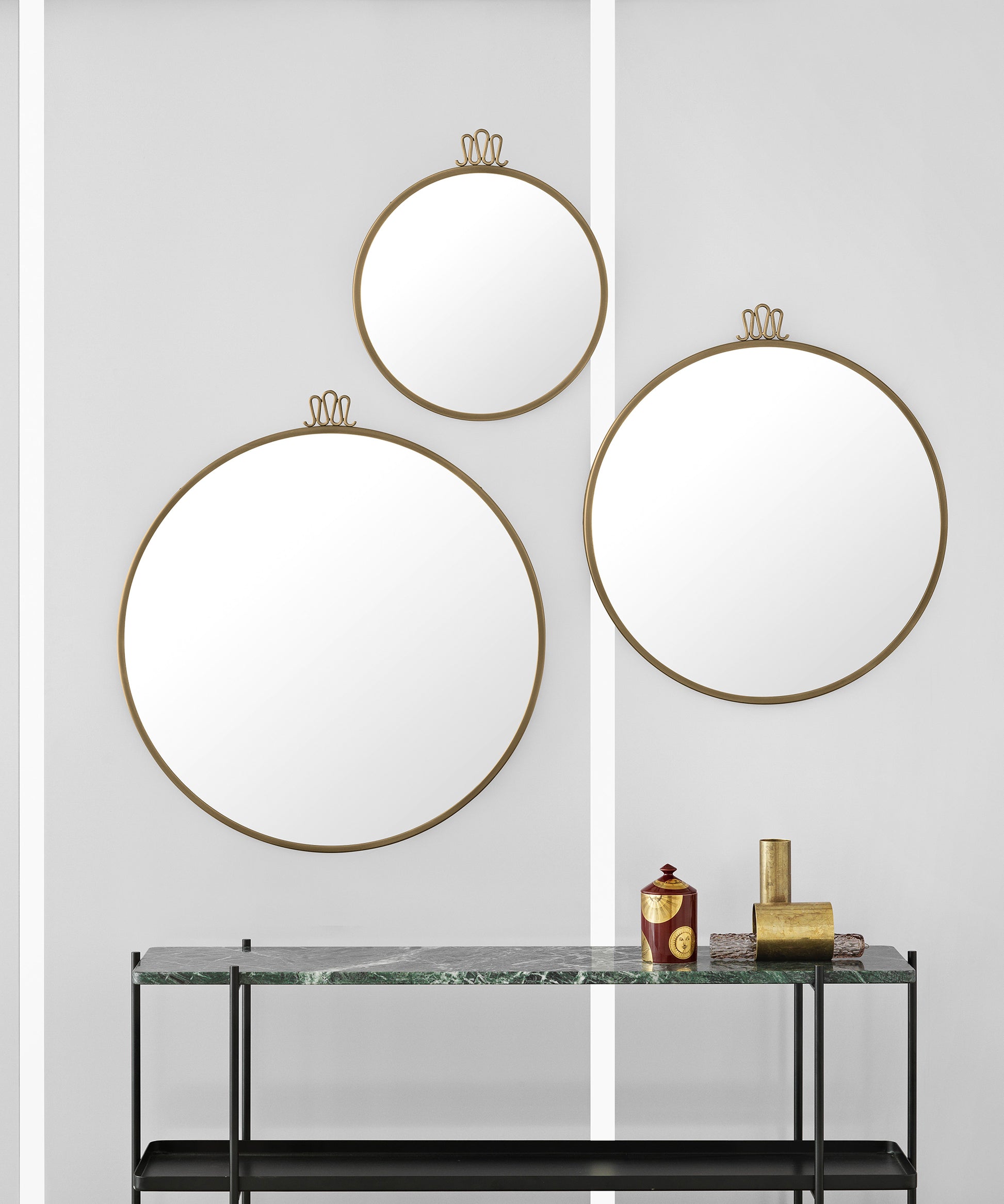 The Randaccio Mirror unites elegance with simplicity and is characterised by its atypical crown-like detailing on the top, a detail used by Ponti in several of his works. Available in three different sizes, the mirror references the original time period but is able to add personality to a contemporary setting.