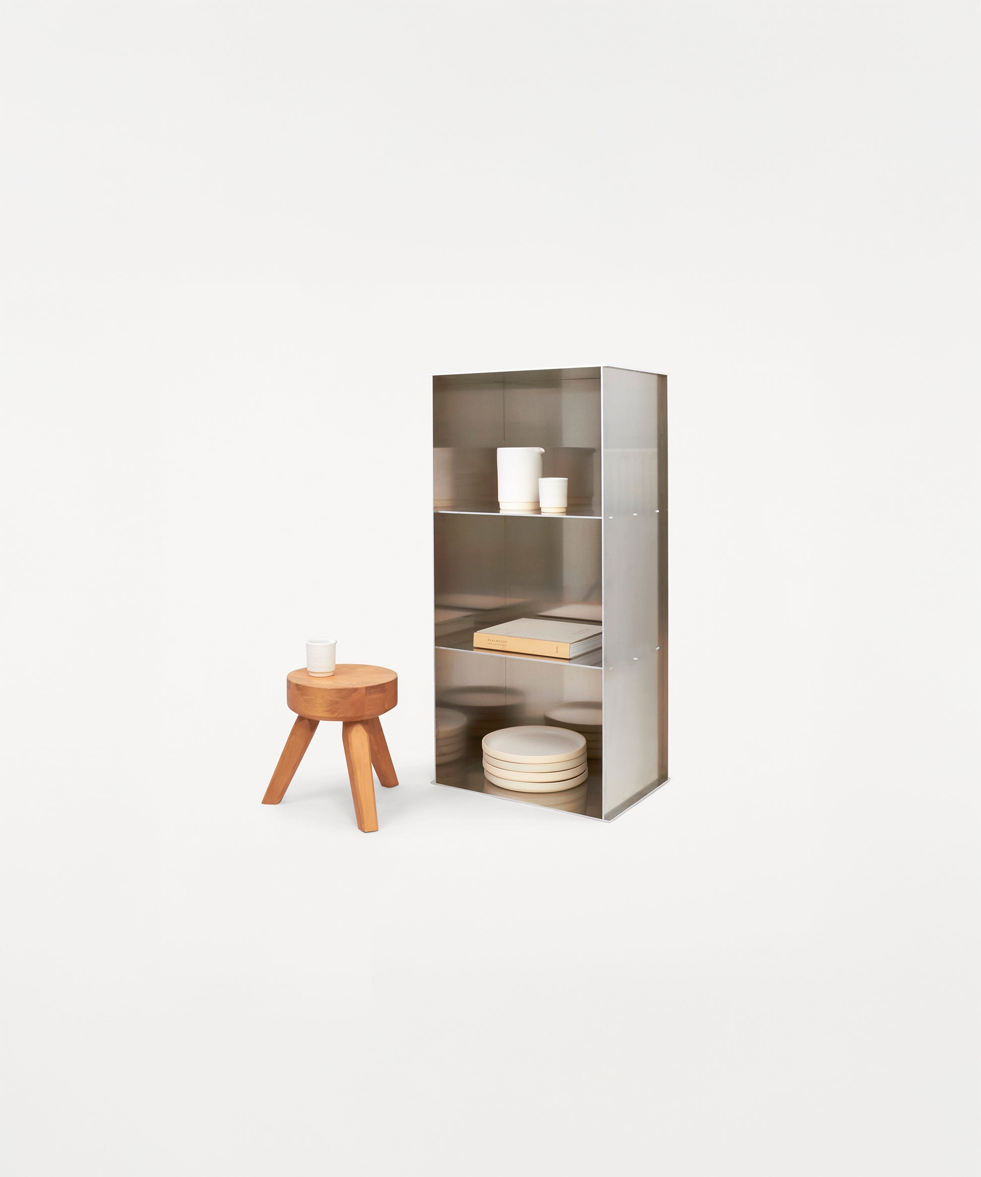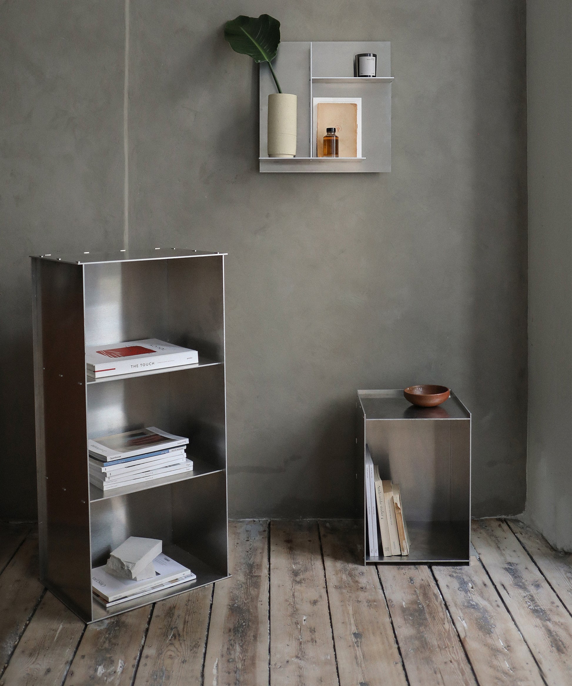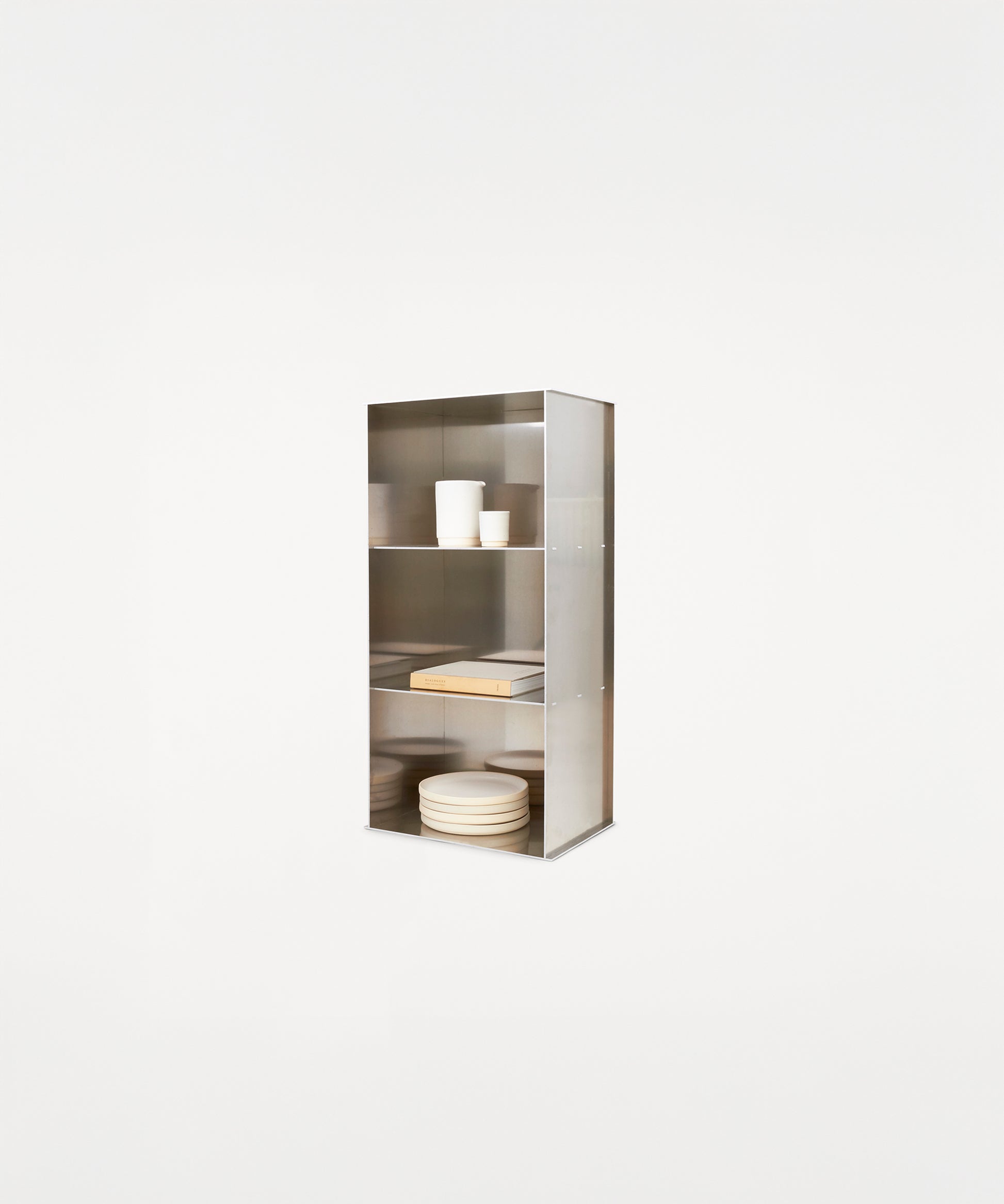 The Rivet Case is convenient with its solid and versatile design. It can be placed vertically as well as horizontally while functioning as a table, storage, or display room.