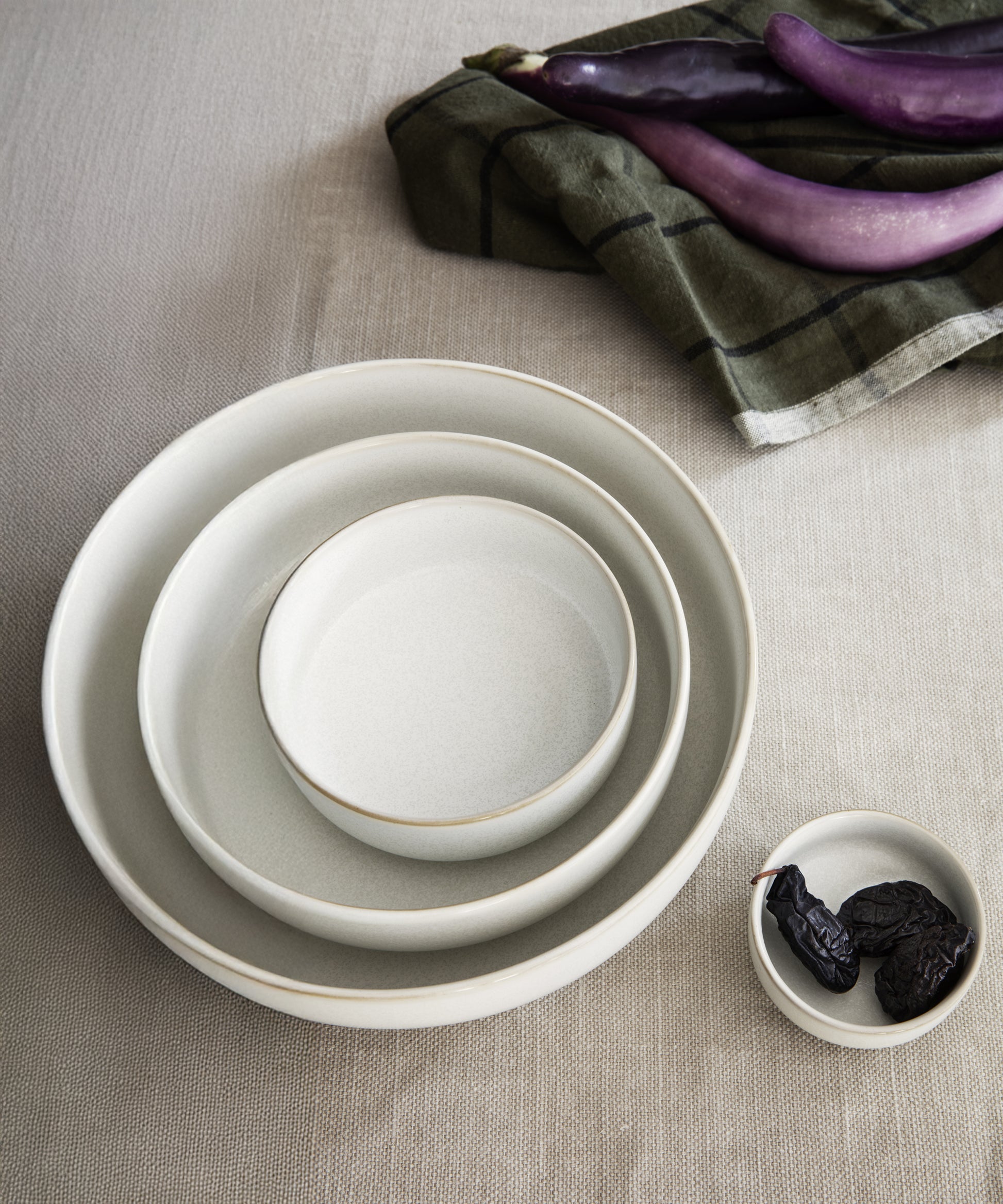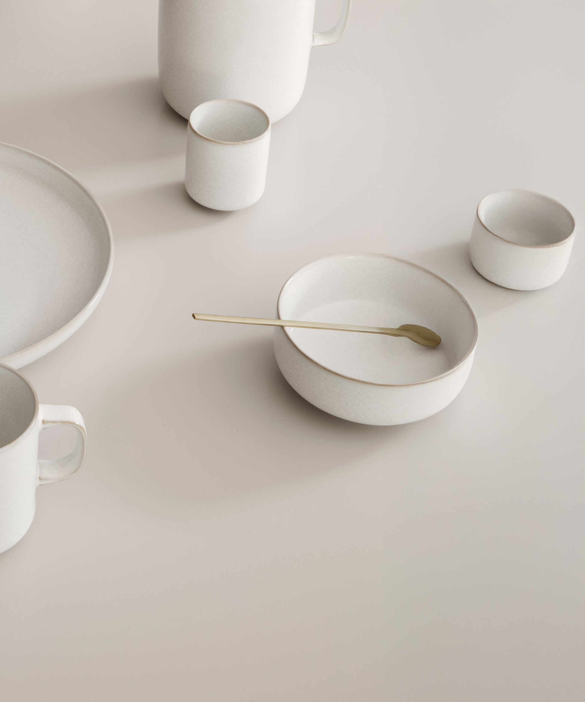 Rediscovering the magic of traditional manufacturing, the cream-coloured glazed Sekki Bowls with tiny grey speckles and a glorious surface, draw a straight line to the rich Japanese ceramic heritage.