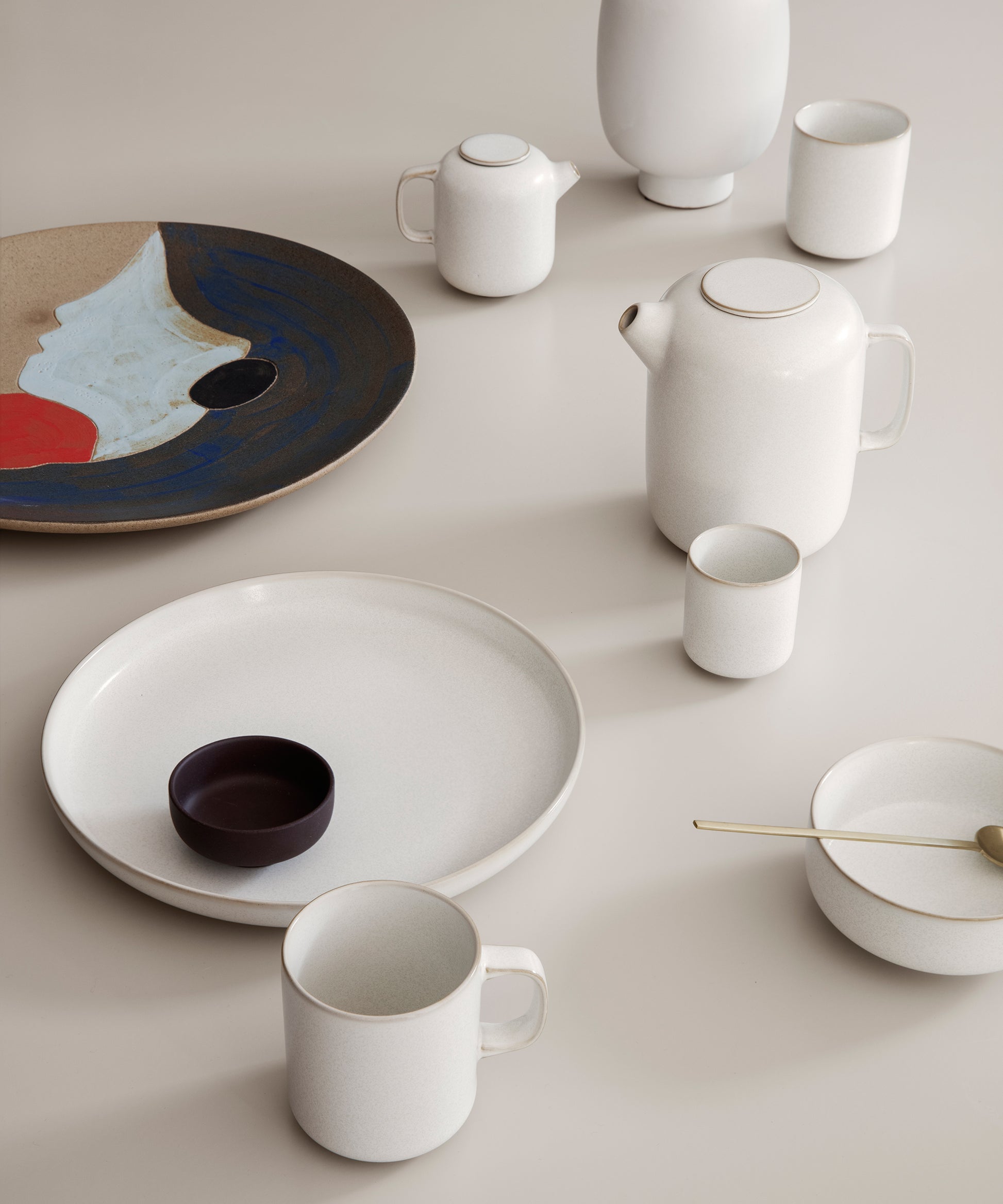 The Sekki Series rediscovers the magic of traditional manufacturing through its cream-colored glazed clay with tiny grey speckles, a glorious surface, and a remarkable feel.