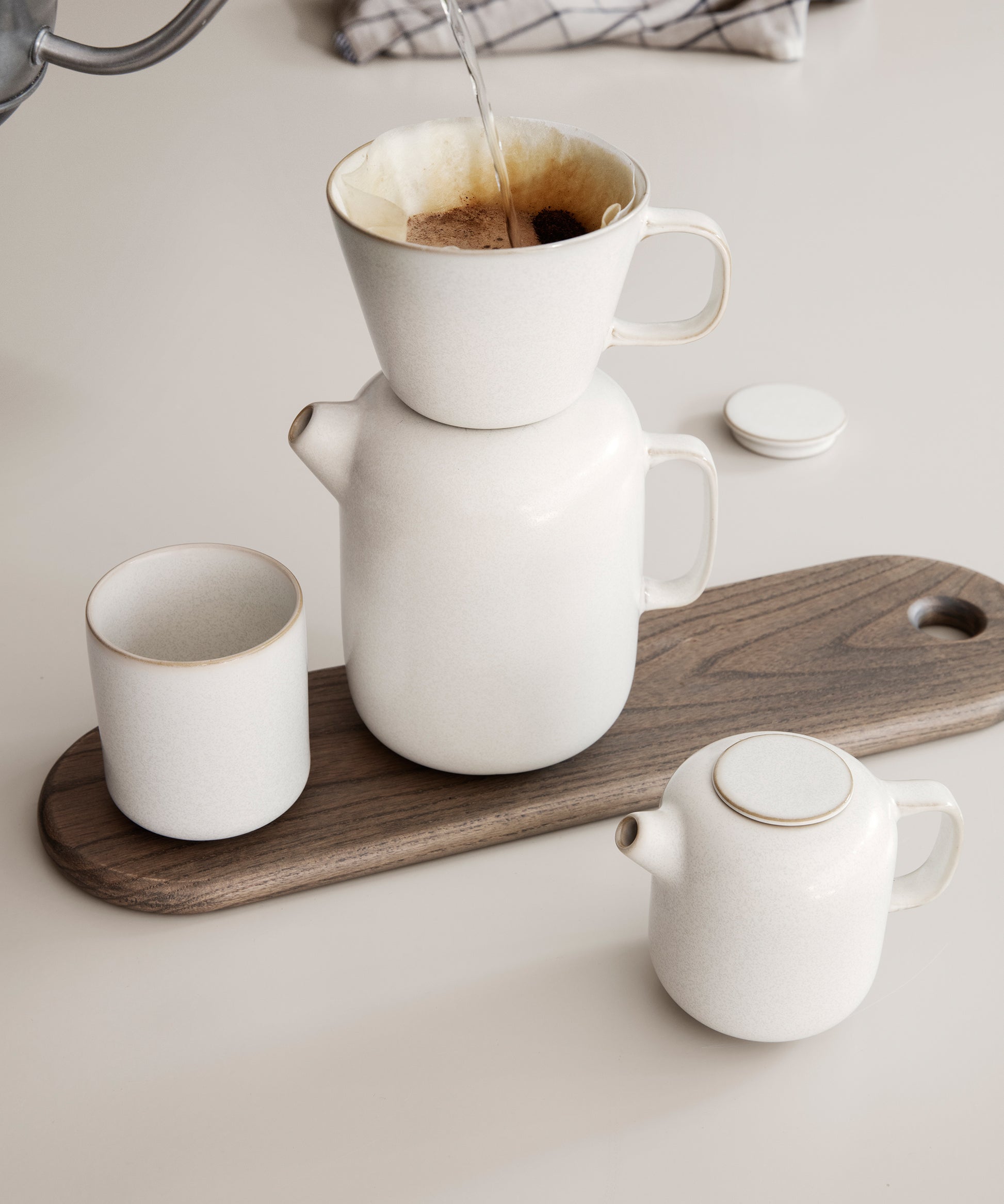 With its rounded shape, small pouring nozzle, and wide handle, the Sekki Milk Jar is perfect for pouring cream into your coffee or scouring your pancakes in warm maple syrup.