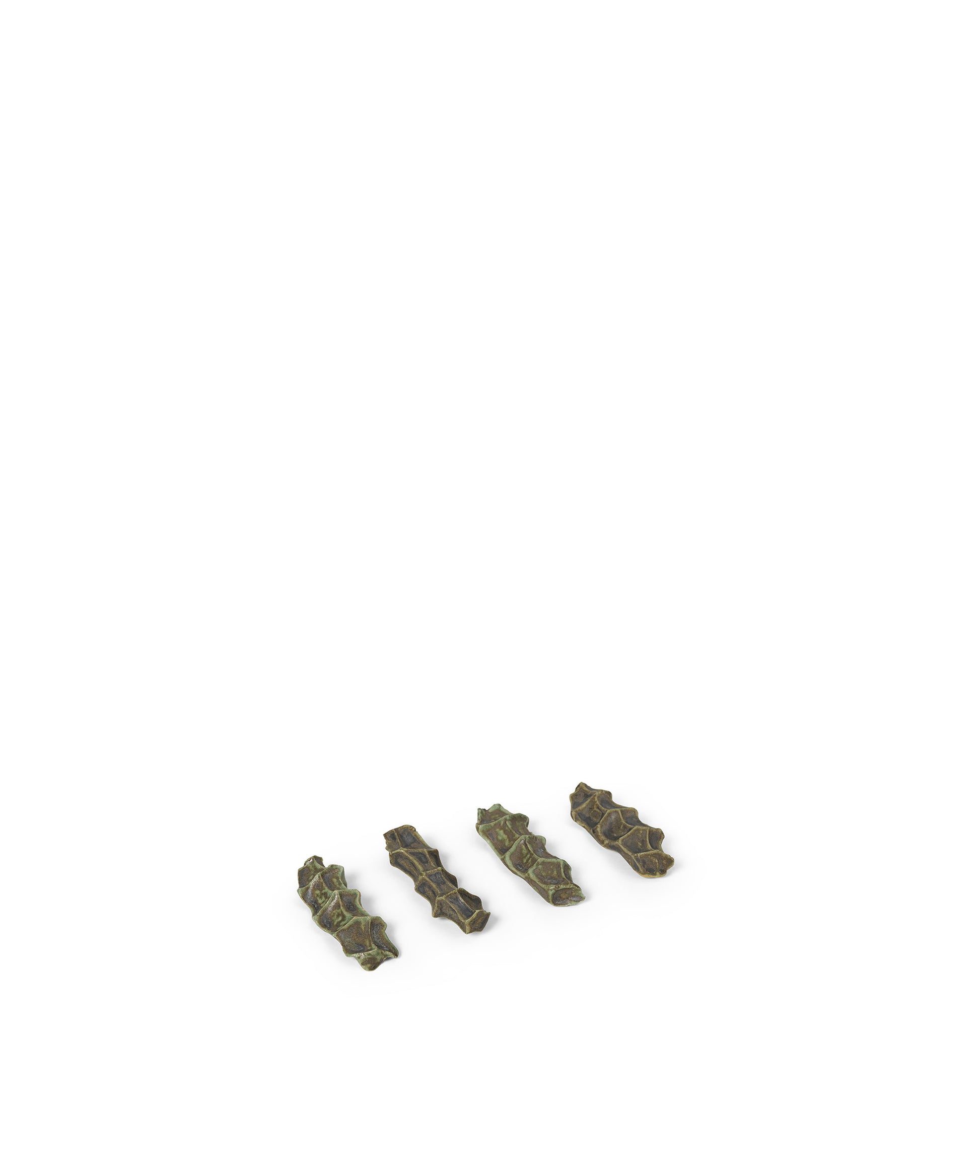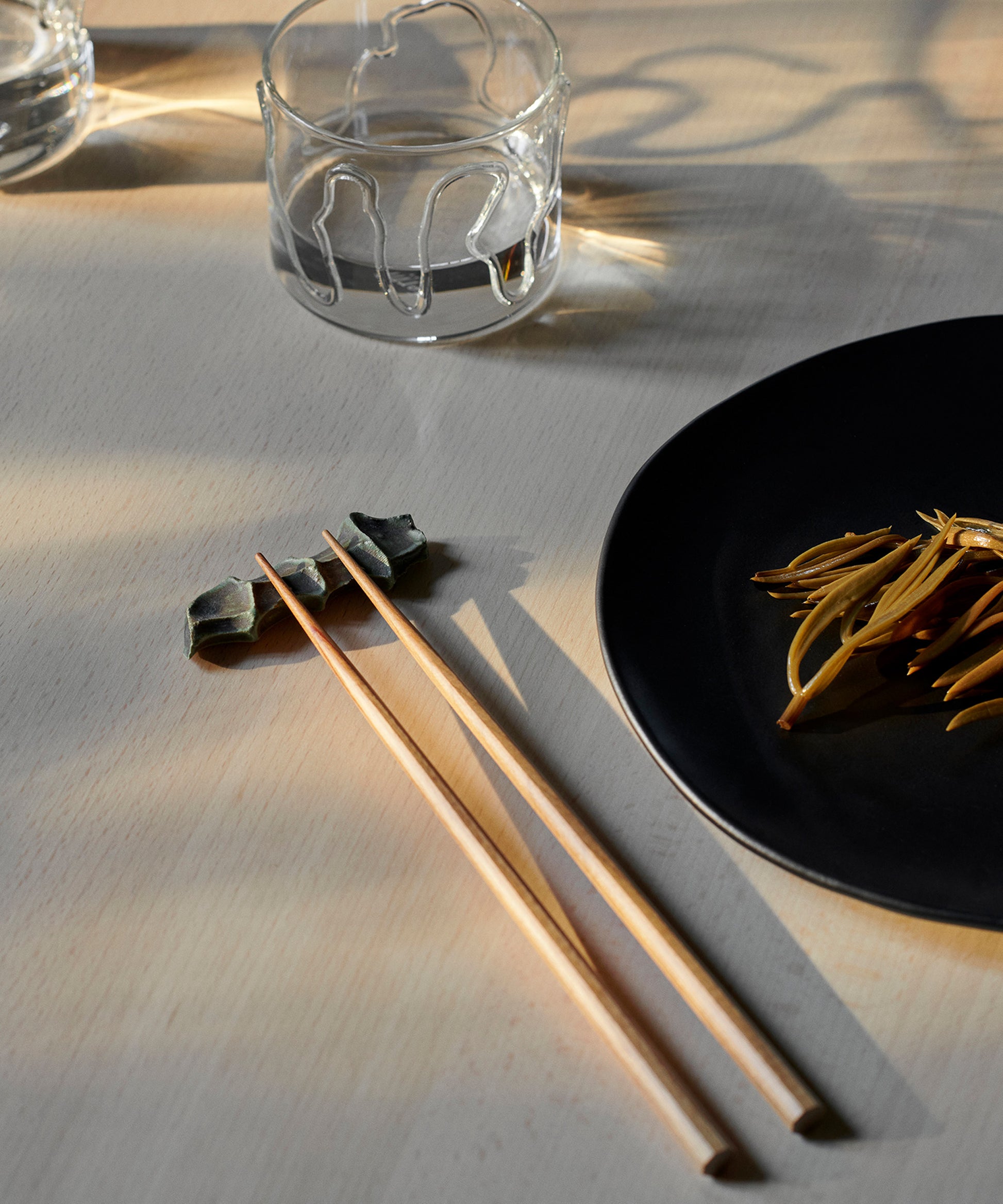 The set of four cutlery rests have a reactive glaze that underscores their handcrafted expression and are packed in a lovely, reusable wooden box with four compartments, making it ideal for gifting as well as storing the pieces when not in use.