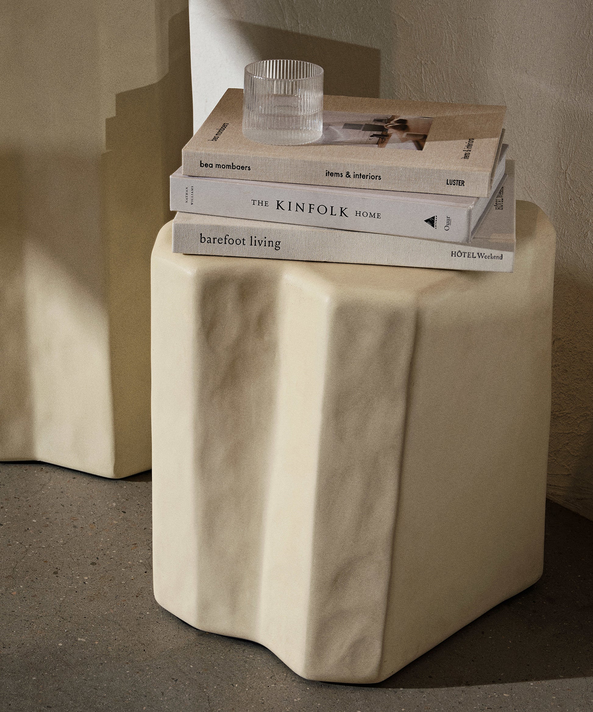 Paying homage to their namesake, which means pillar in old Norse, every piece is crafted entirely from glass fibre reinforced concrete, using an innovative casting process that provides each item with a rough, uneven shape reminiscent of blocks of carved stone. Suitable for both indoor and outdoor use, the Staffa Stool presents an intriguing piece that blurs the line between art and functionality. Use it as a stool or a side table and watch as it naturally sparks conversation.