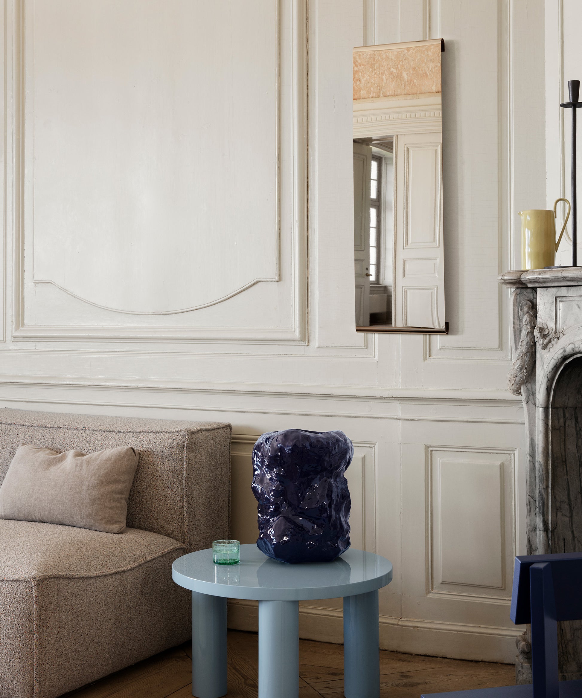 Featuring notable bent edges, the Tangent Mirror tricks the mind into believing that it levitates from the wall.