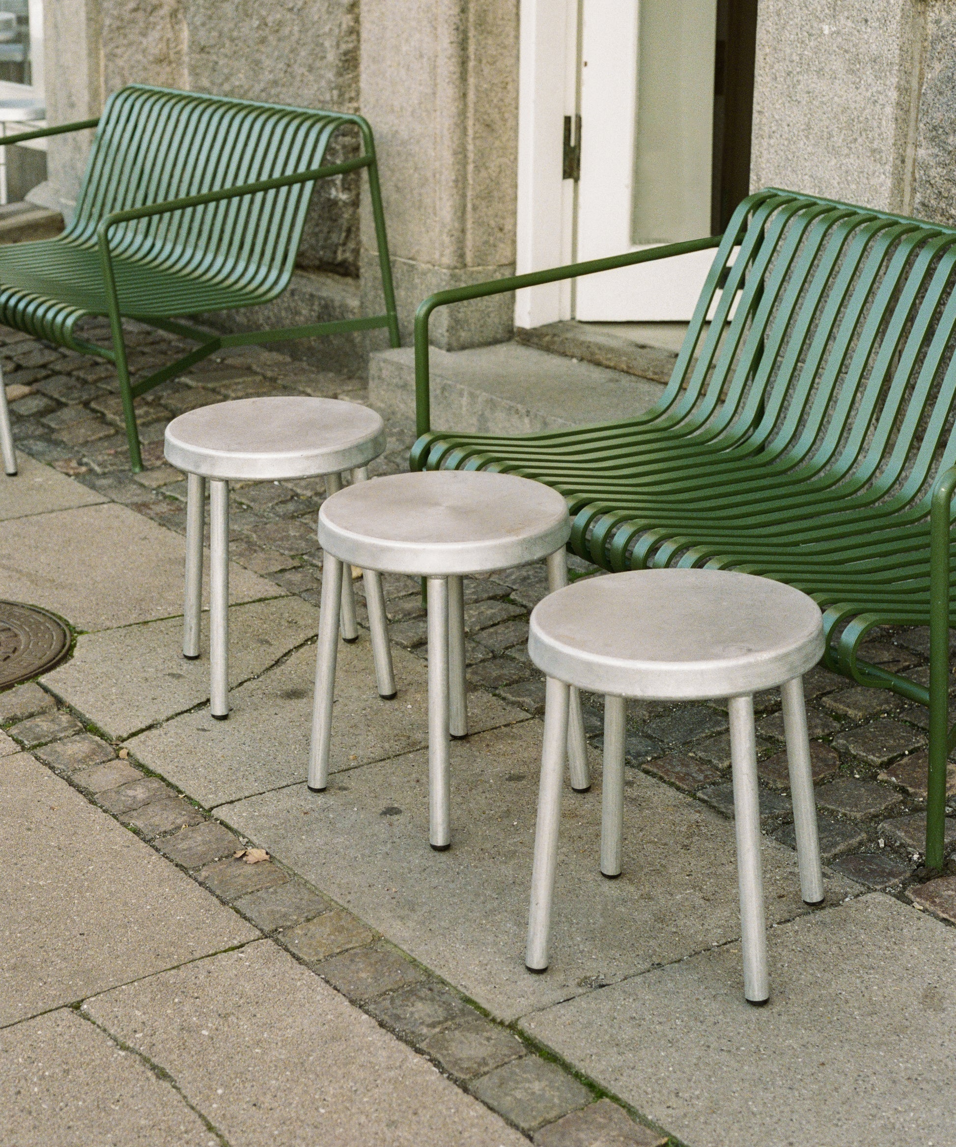 Inspired by the local taverns around Portugal, called “tascas,” the Tasca Stool is a lightweight and durable seating item made in aluminum with a distinctive finish done by hand.