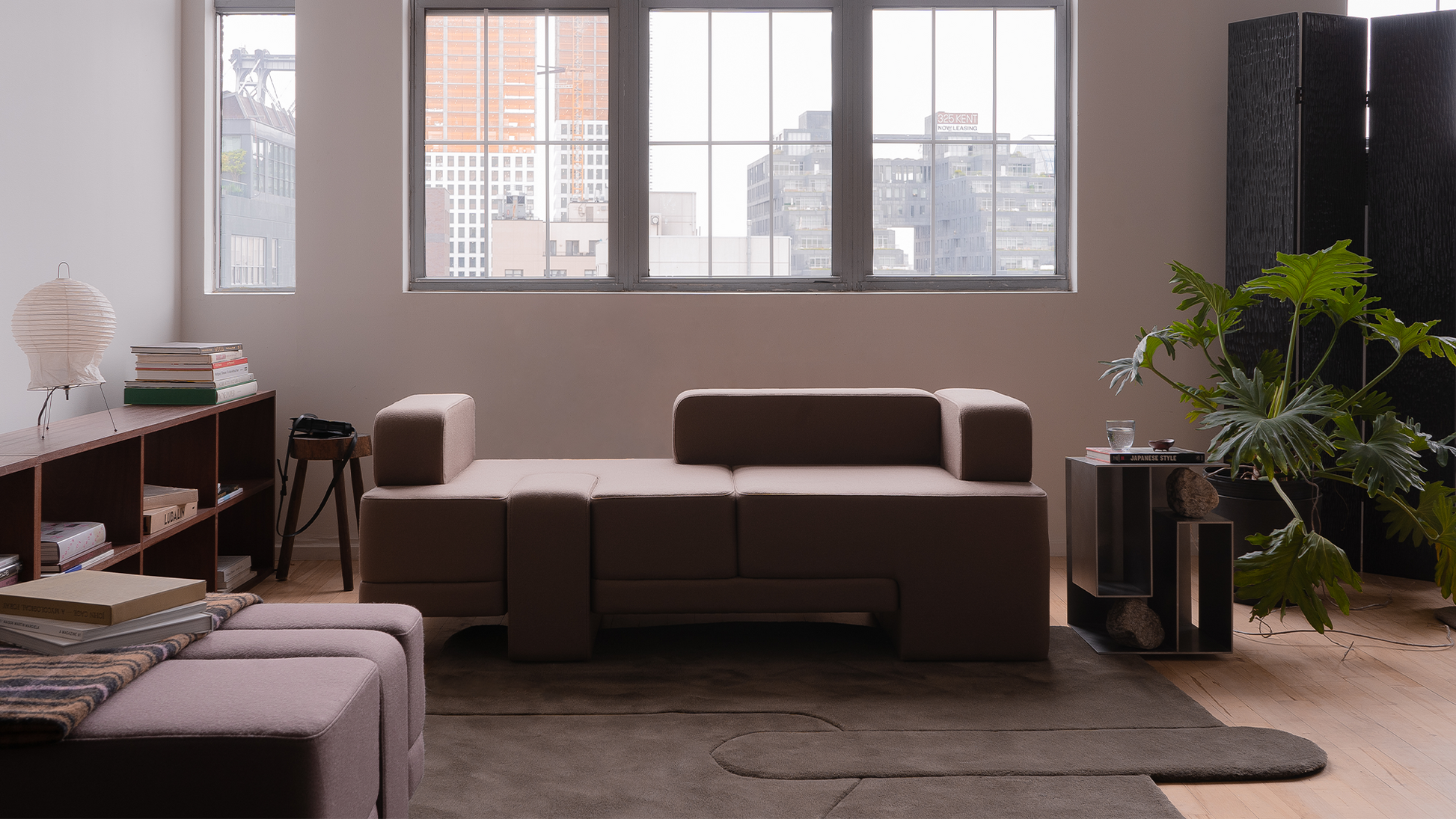 The Sarsen Series, designed by MKCA for TRNK Collection, embraces the dynamic interplay of objects, while emphasizing articulation and open-endedness. Drawing inspiration from joinery, the seating’s asymmetrical distribution of heft and lift ensures visual continuity throughout limitless configurations. The irregular shapes of the rugs reinforce the multidirectional nature of the collection, intending to ground a space without giving it hard boundaries. The Sarsen Series highlights the transformative power of elements in shaping function, habitation, and interaction.