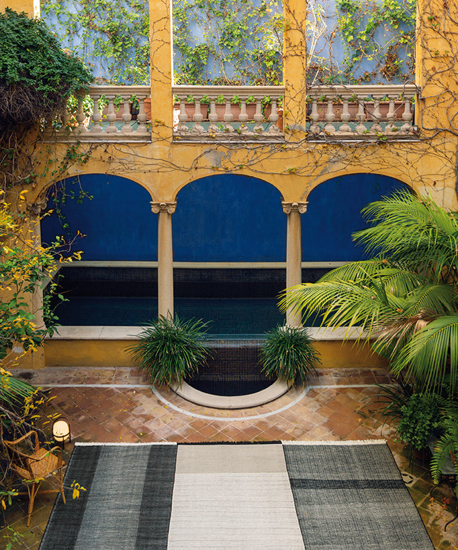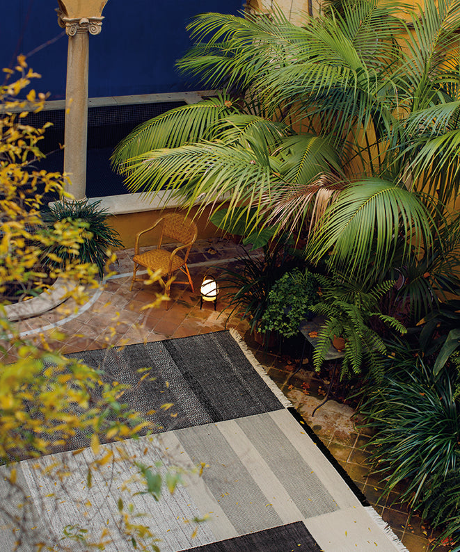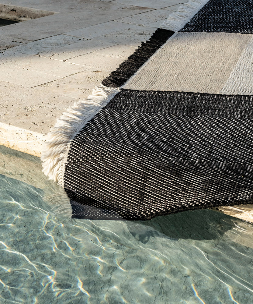 The particular PET fiber used offers a great softness that transfers the feeling of well-being from interior spaces to exteriors. In additionwith this fibernanimarquina turns waste from consumer plastic bottles into beautiful and long lasting rugsguaranteeing the traceability and certification of materials and manufacturing processes. By using recycled PET fiberwe give a second lease of life to plastic bottlesthus minimizing our impact by avoiding the use of new resources.