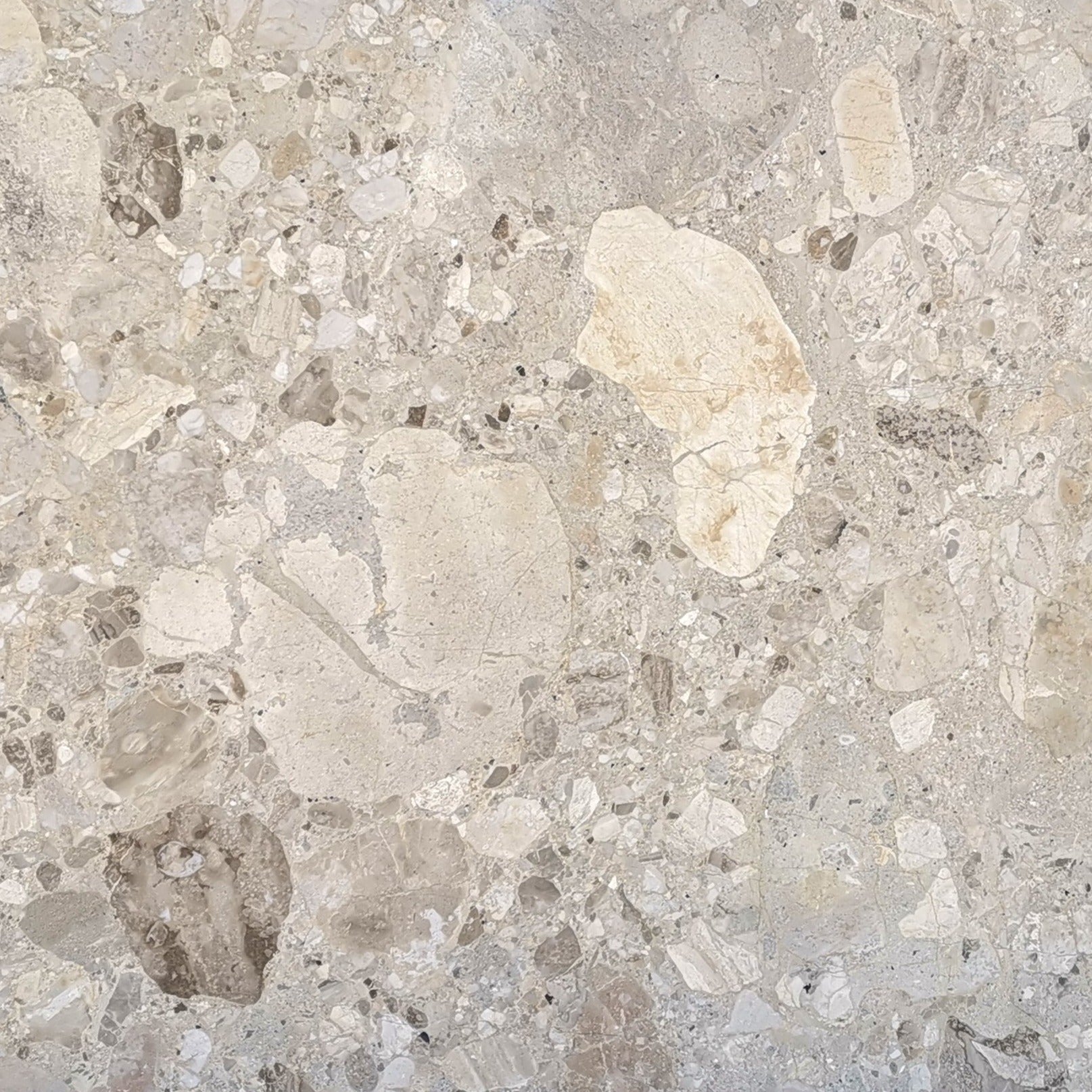 Cream stone with tonal light and dark irregular spots.