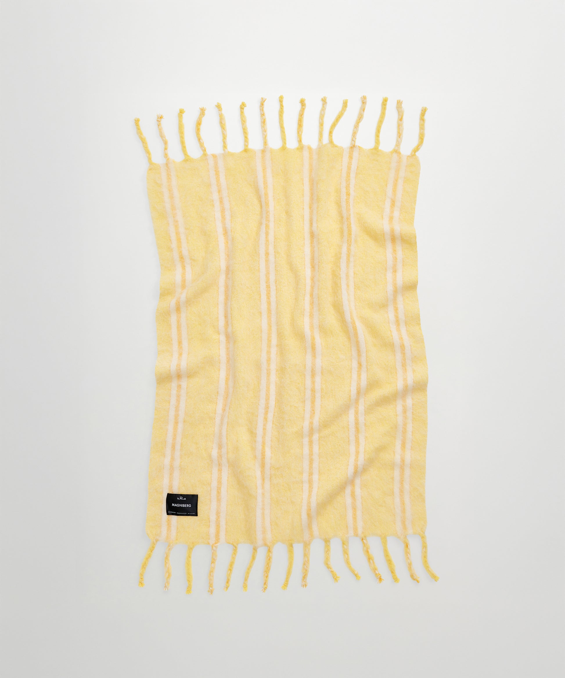 Crafted with the finest mohair wool, this blanket is handwoven in Finland at a family-owned mill with all details done by hand. Available in 13 meticulously balanced shades of blue or pink featuring oversized stripes inspired by the Wall Street bedding.