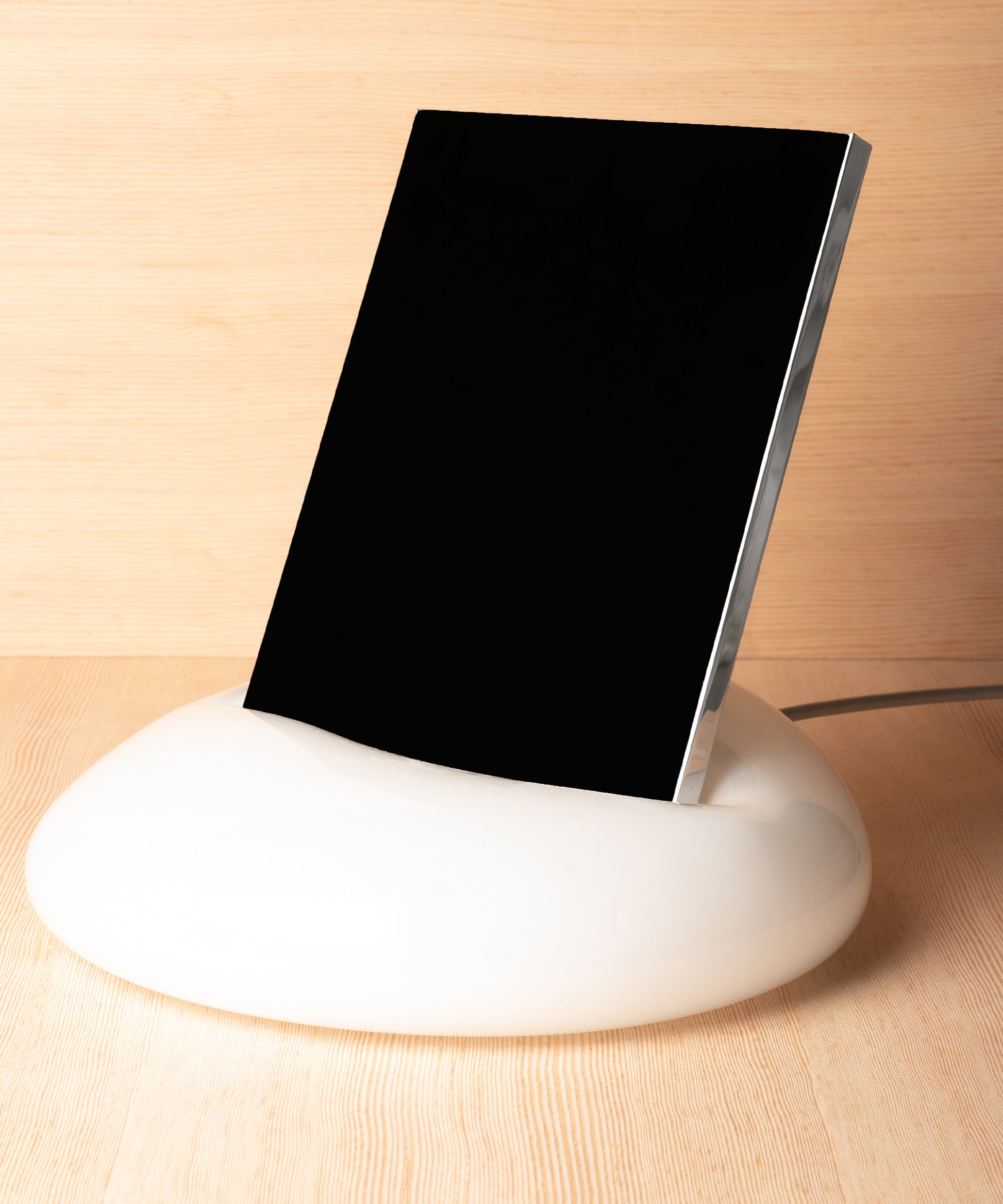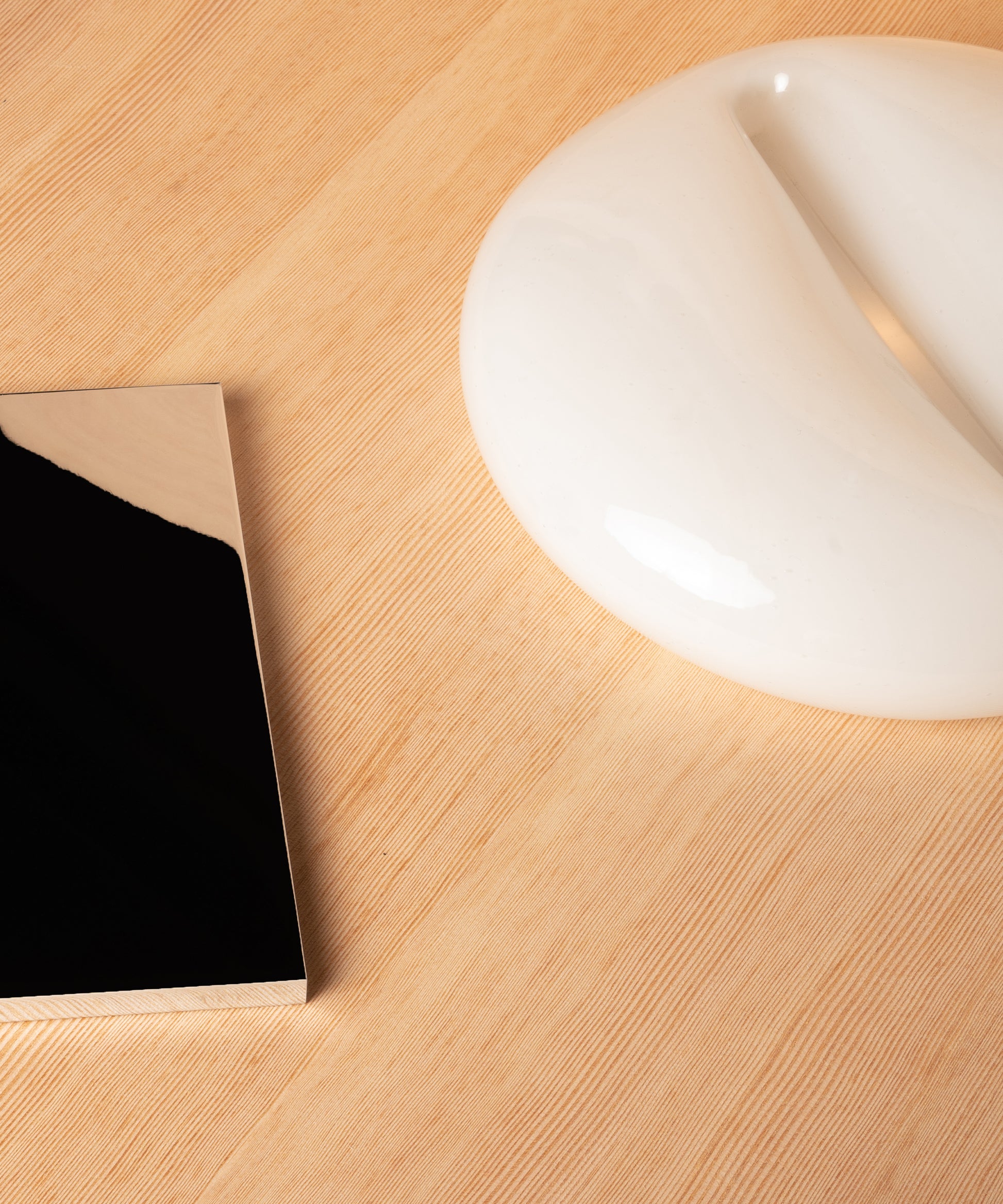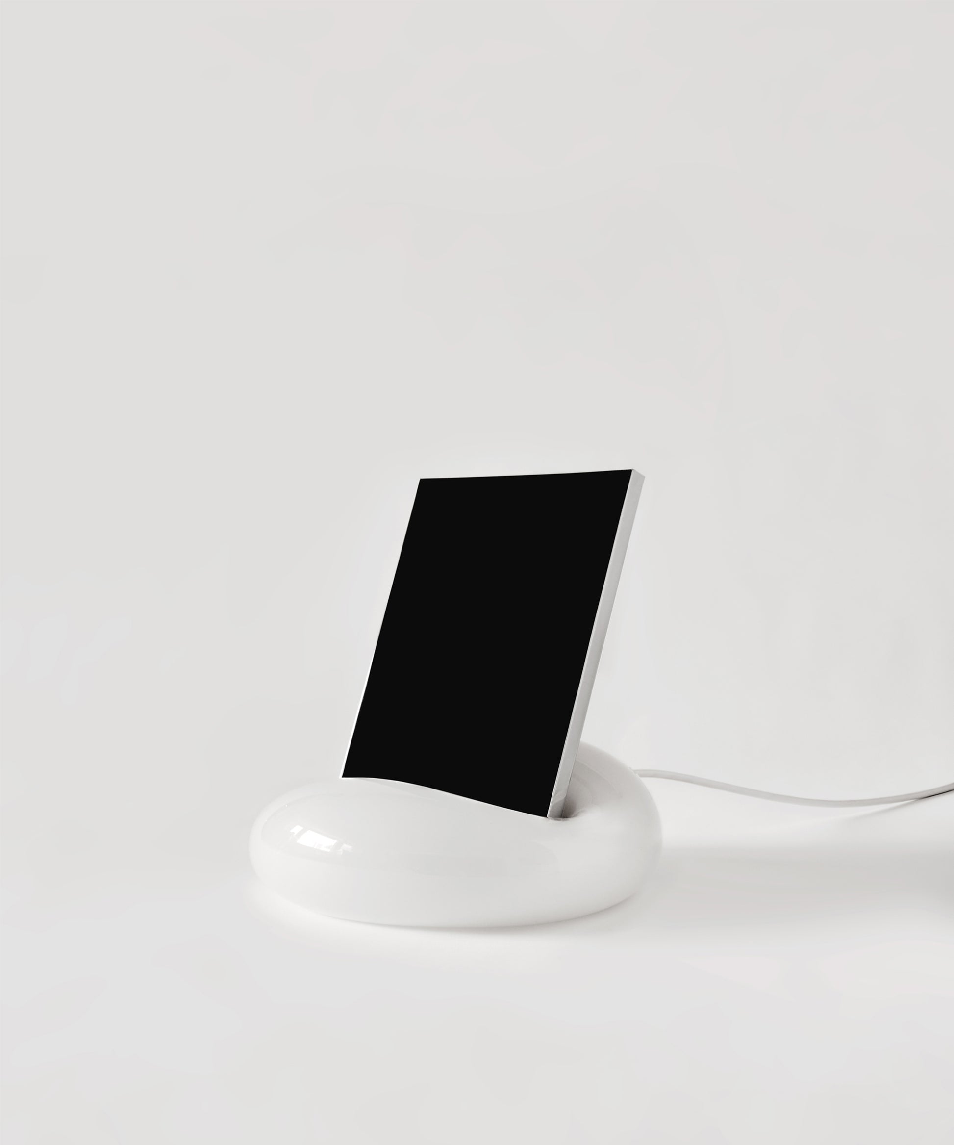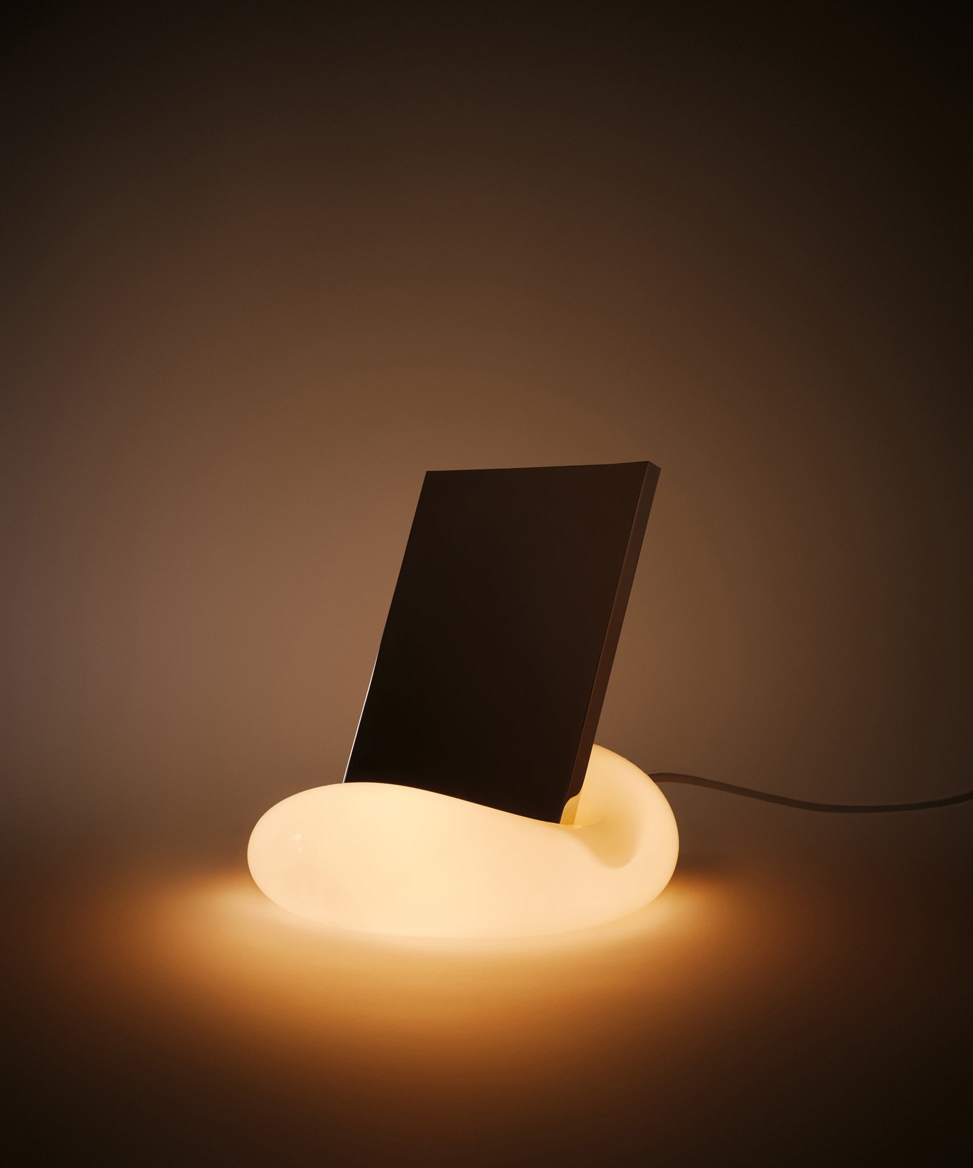 The “Pillow Mirror” is a multi-utility piece. Functioning as both a mirror and a light, the fixture is a conceptually elevated item that is meant for everyday use. These pieces rest in each other and are not attached.