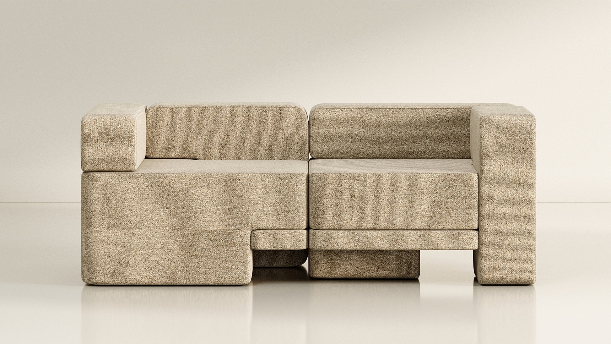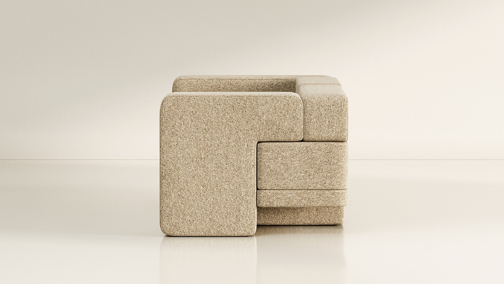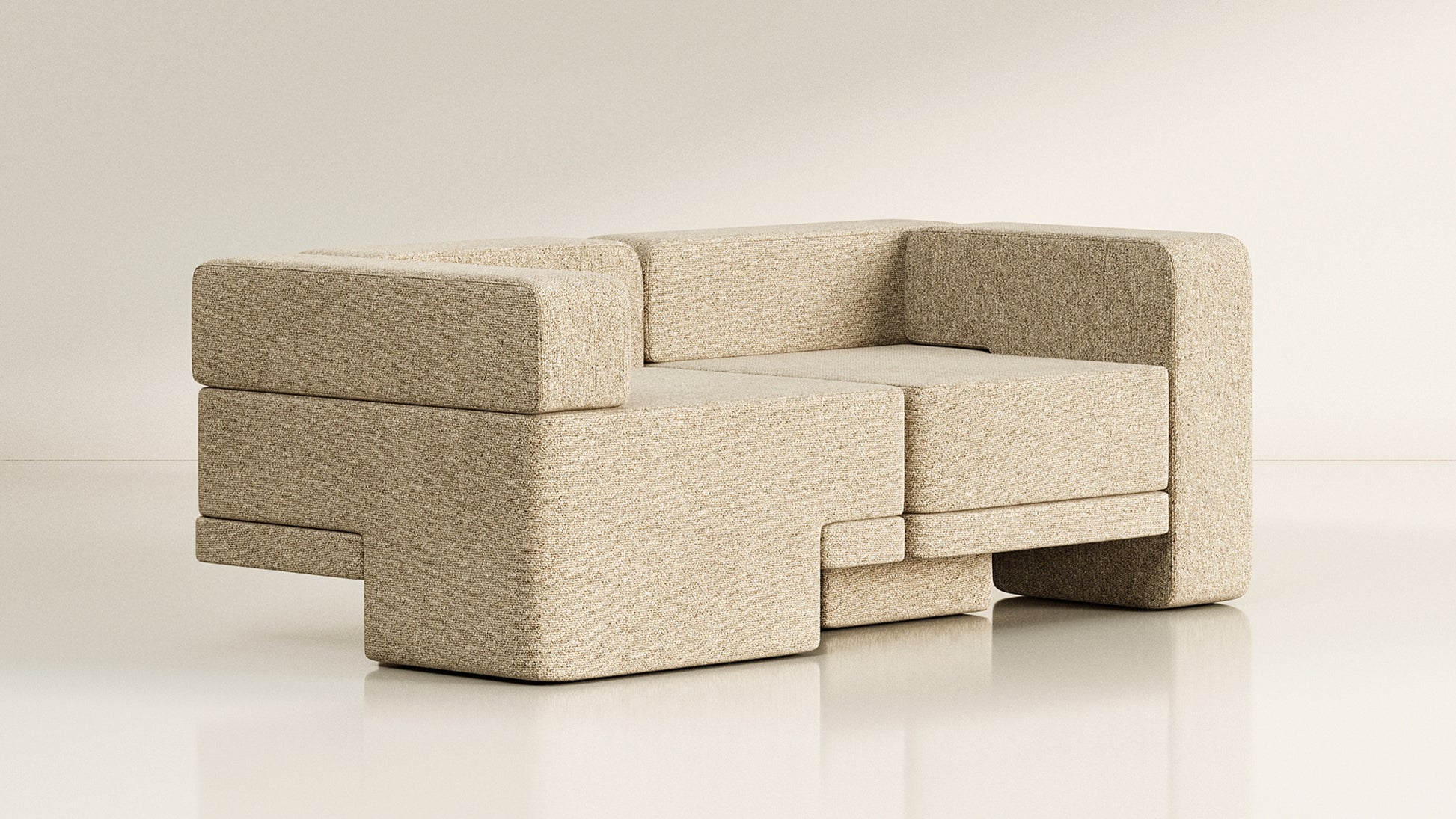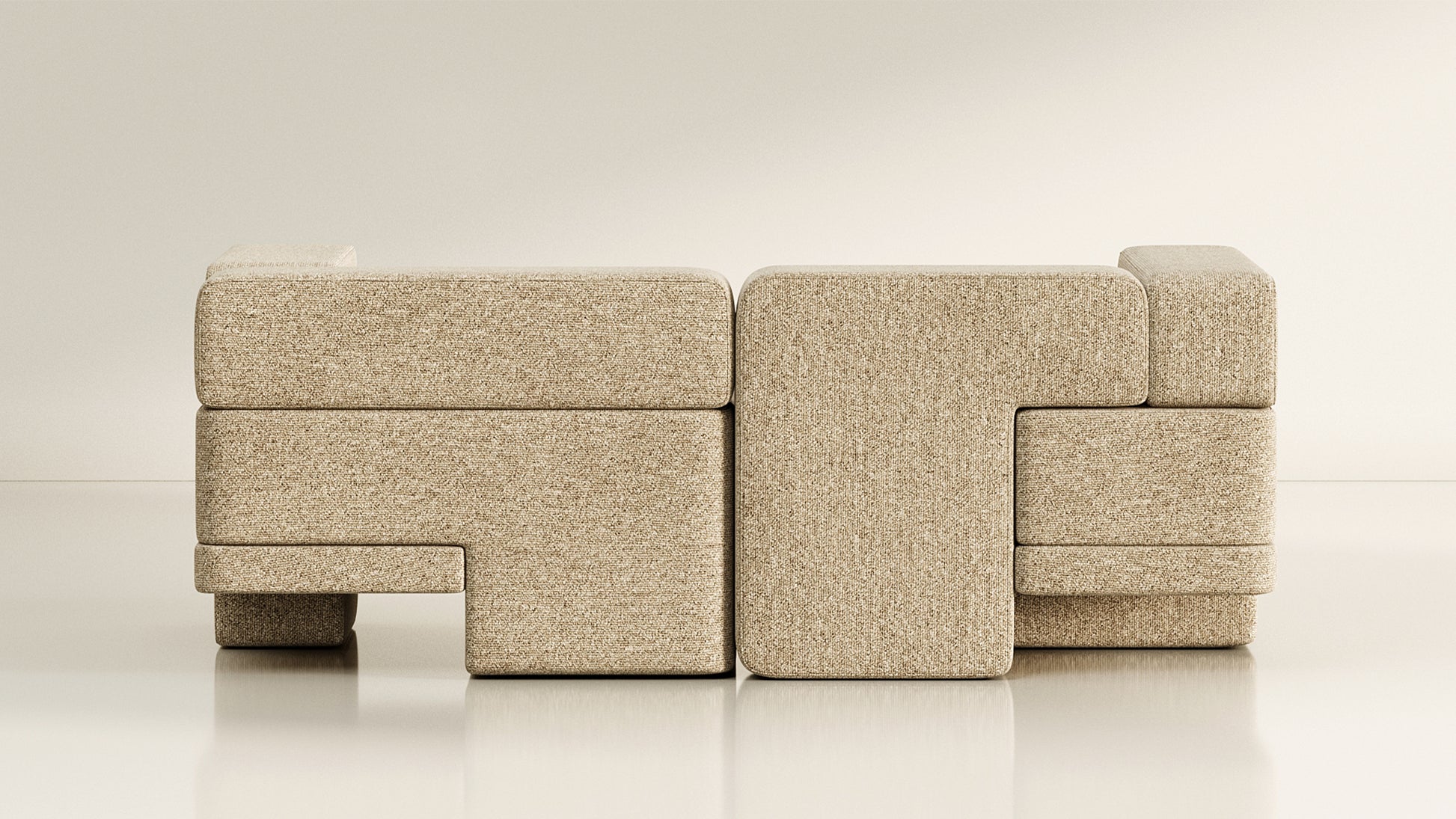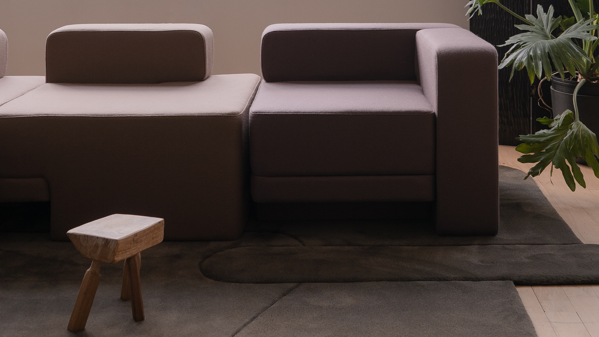 The Sarsen Series, designed by MKCA for TRNK Collection, embraces the dynamic interplay of objects, while emphasizing articulation and open-endedness. Drawing inspiration from joinery, the seating’s asymmetrical distribution of heft and lift ensures visual continuity throughout limitless configurations. The irregular shapes of the rugs reinforce the multidirectional nature of the collection, intending to ground a space without giving it hard boundaries. The Sarsen Series highlights the transformative power of elements in shaping function, habitation, and interaction.