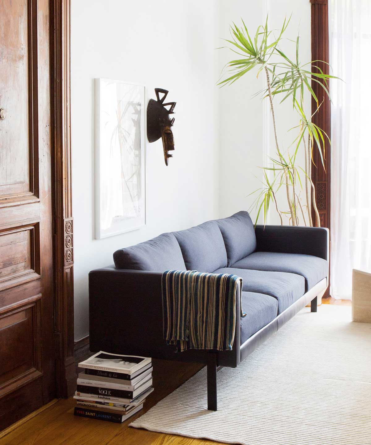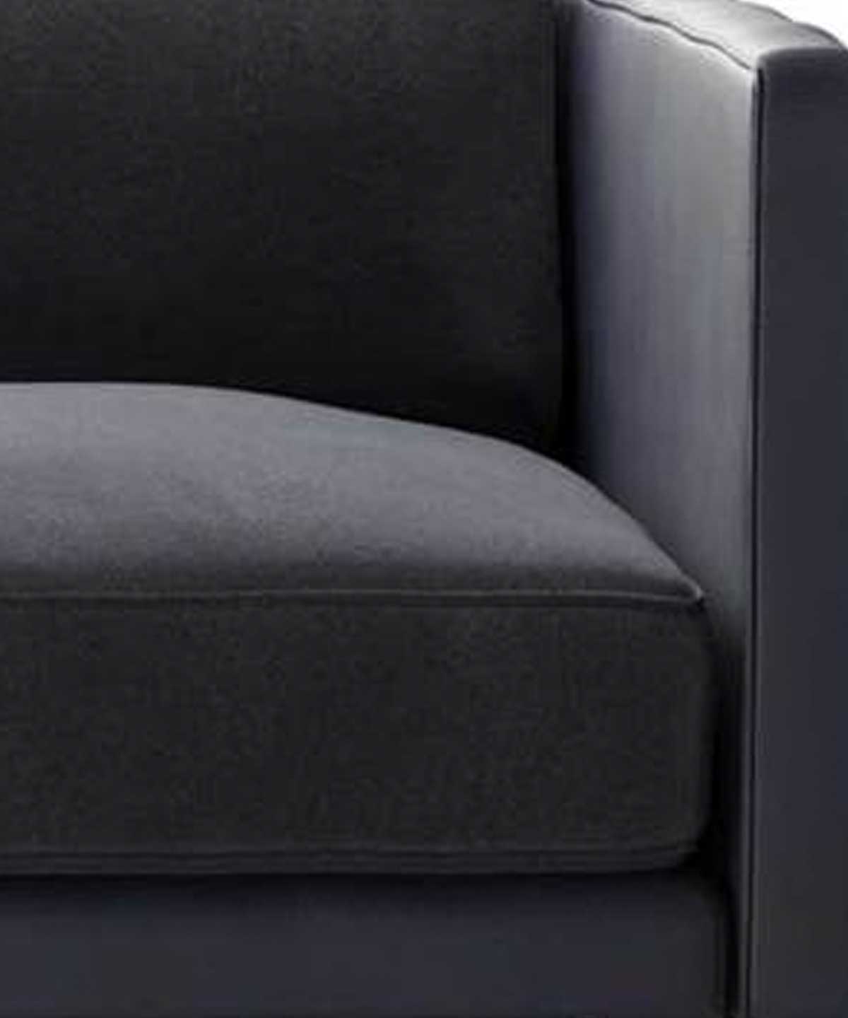 This two-tone, mixed media variation features an aniline leather wrapped framed, paired with seat cushions upholstered in one of our performance, stain-resistant fabrics by Maharam. Enjoy both the sleek, luxurious look of leather and the warm, textural qualities of fabric.