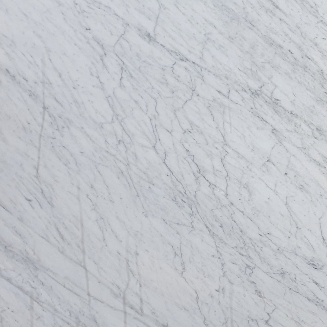 White marble with soft and feathery light grey veining, sourced from Italy.