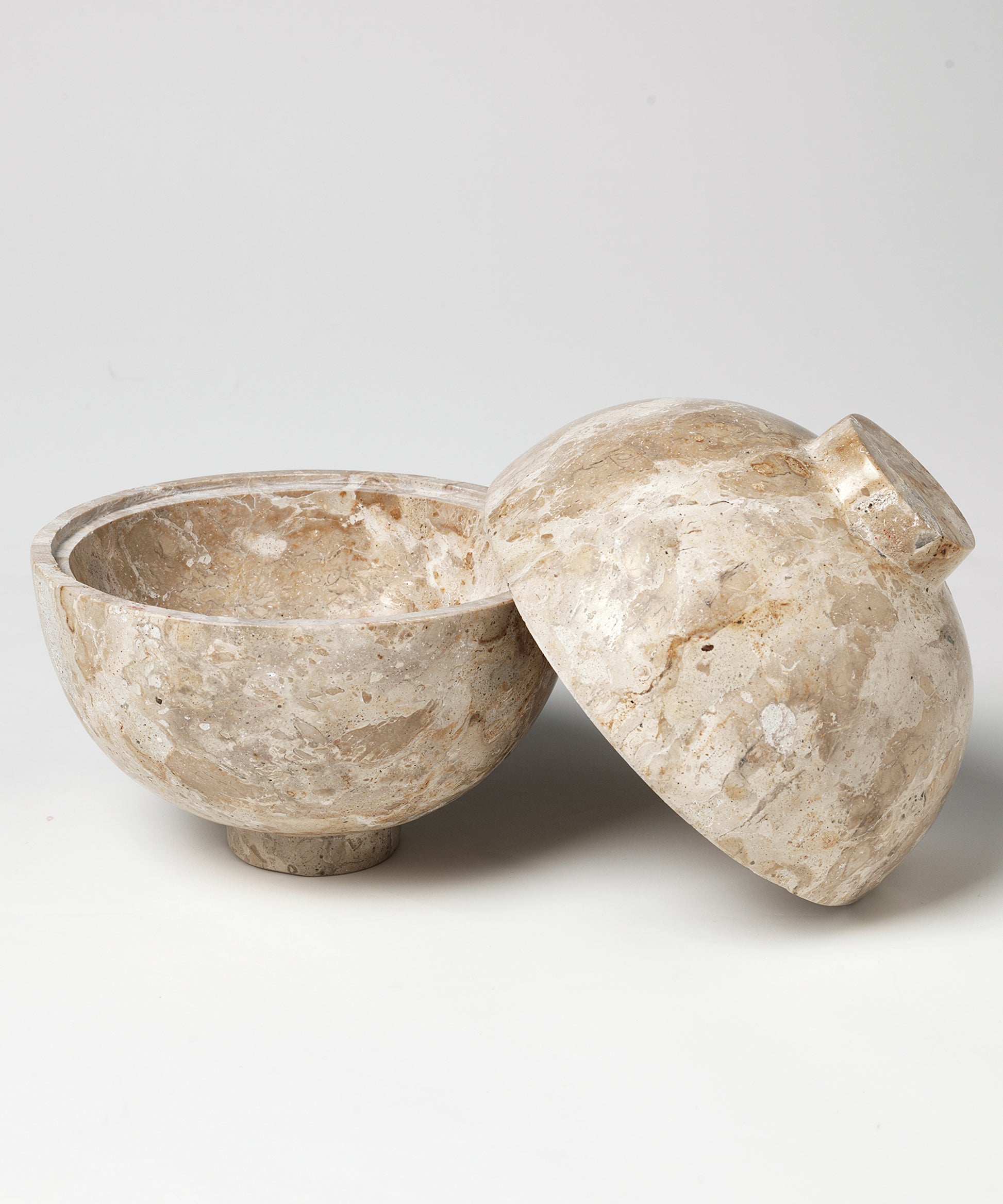A characteristic object of the Kristina Dam Studio universe is the 'spheres'. The XL Marble Spheres are made of peerless desert storm marble.