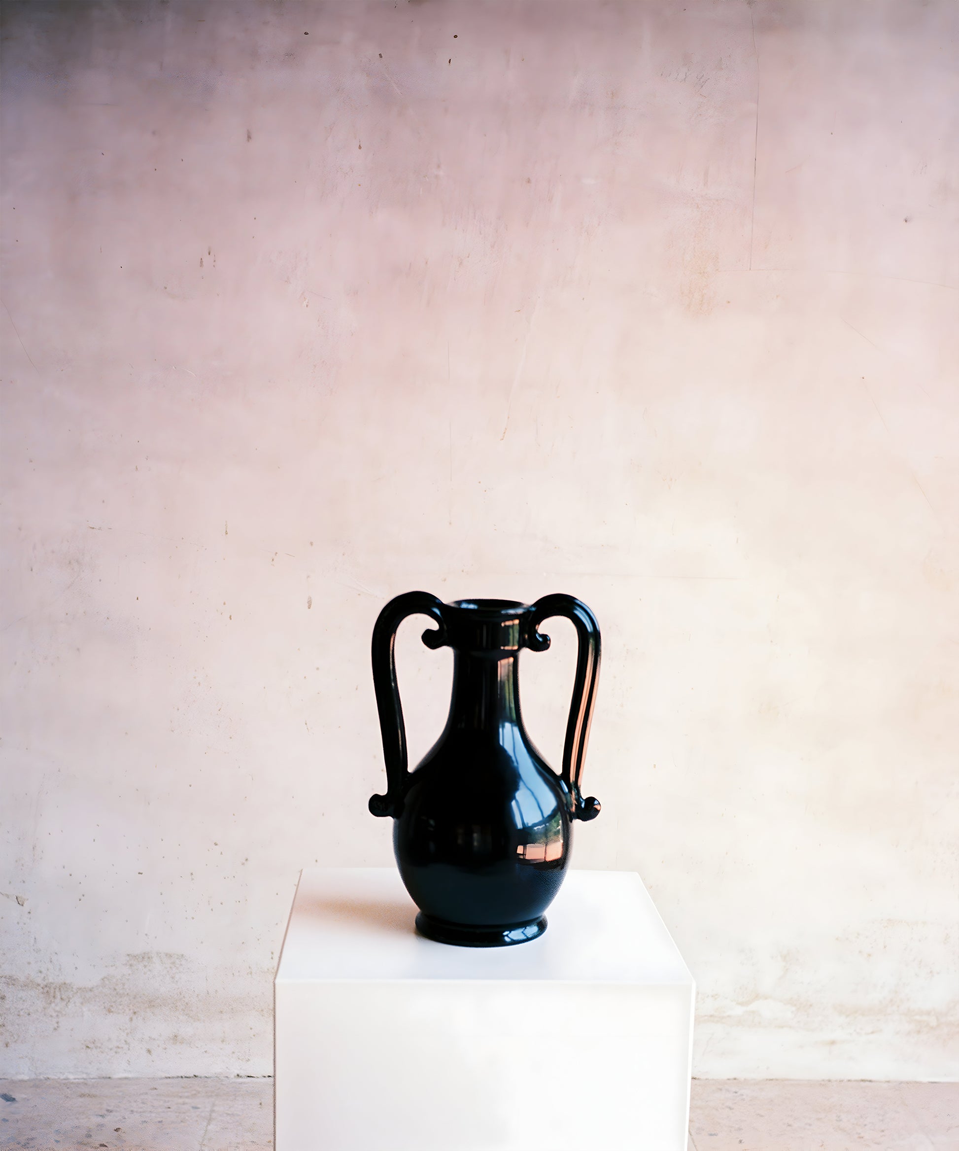 The Fiasca takes inspiration from storage vessels made in fairly standard shapes, they were designed to fit with dozens of others on a shelf, often in a pharmacy or shop. Their handles therefore tend to fit within the vessel’s profile, and the jar is generally narrower at the middle than at the top or bottom, making it easy to grip. The ceramic is handthrown and the orignal decor has been blacked out. The shiny black glaze has been rubbed by hand by the artisans to give this matte finish.