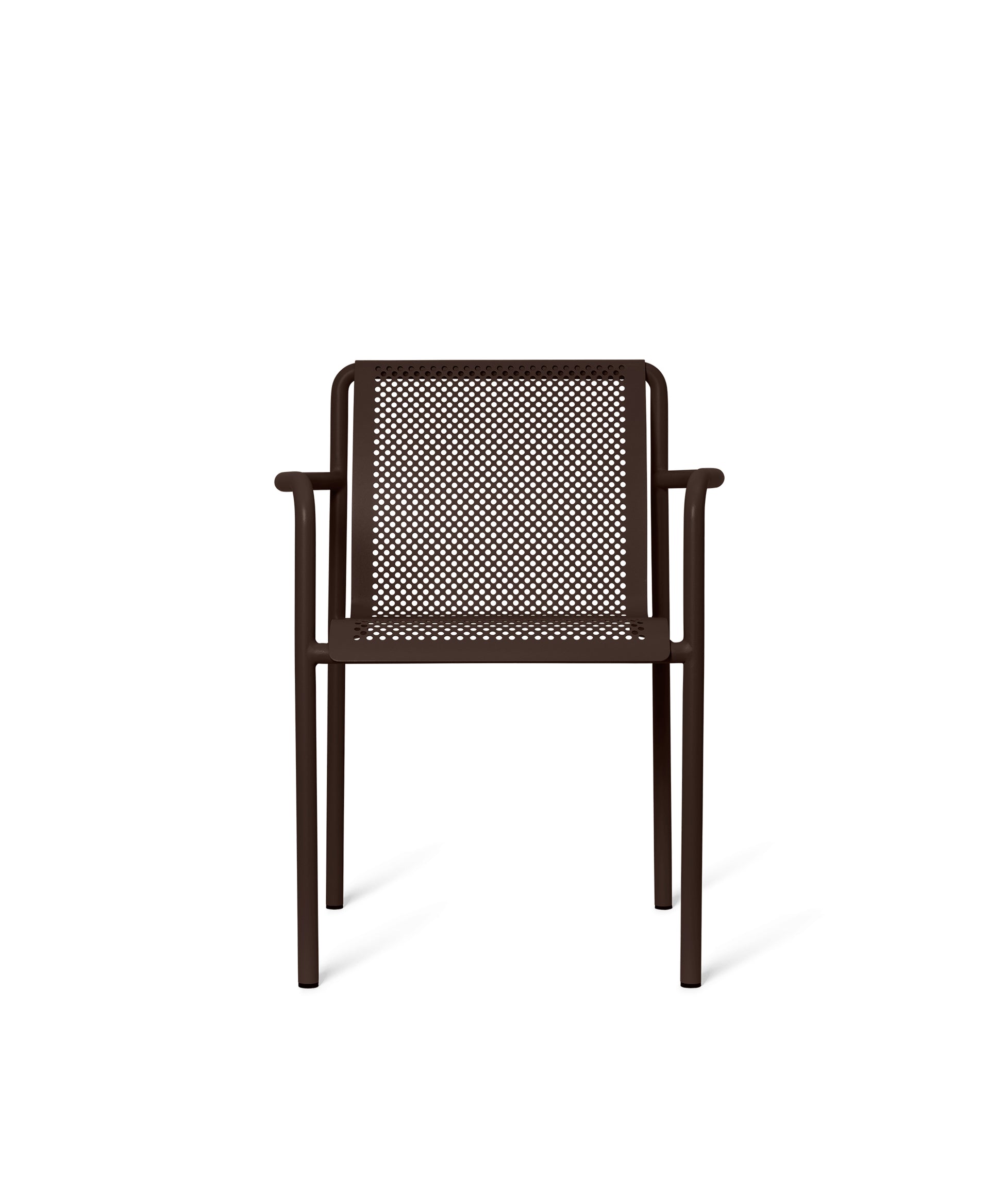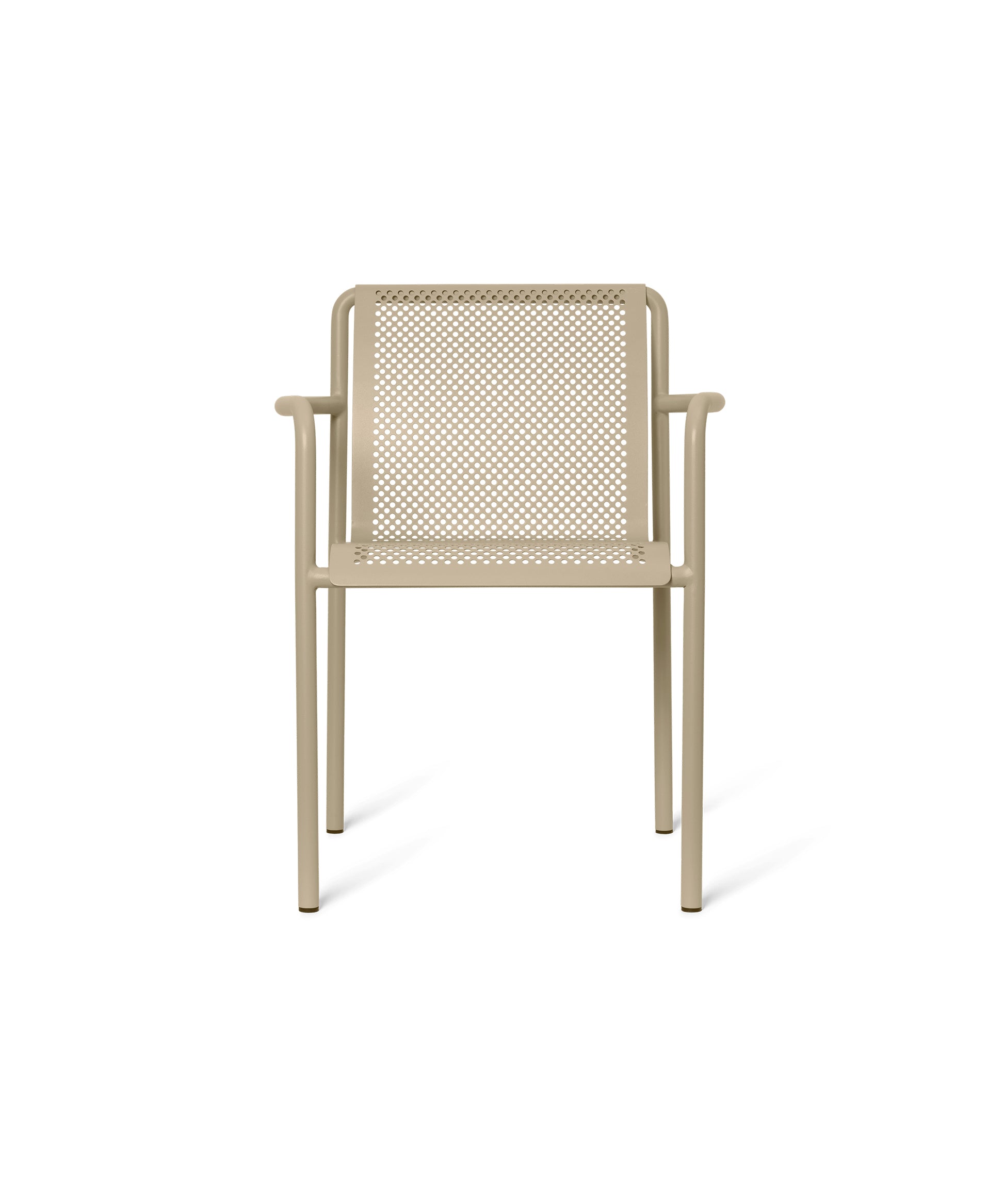 The Dapple Chair with Arms is crafted from powder coated galvanised steel that ensures durability and protection from the elements while maintaining an elegant aesthetic. Featuring arms for comfortable reclining, this stackable chair is a simple yet impactful addition to your outdoor space.