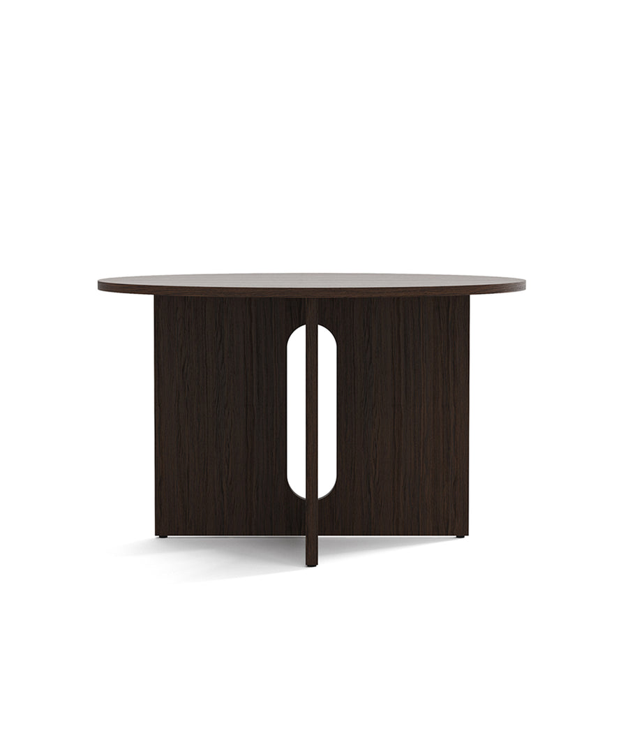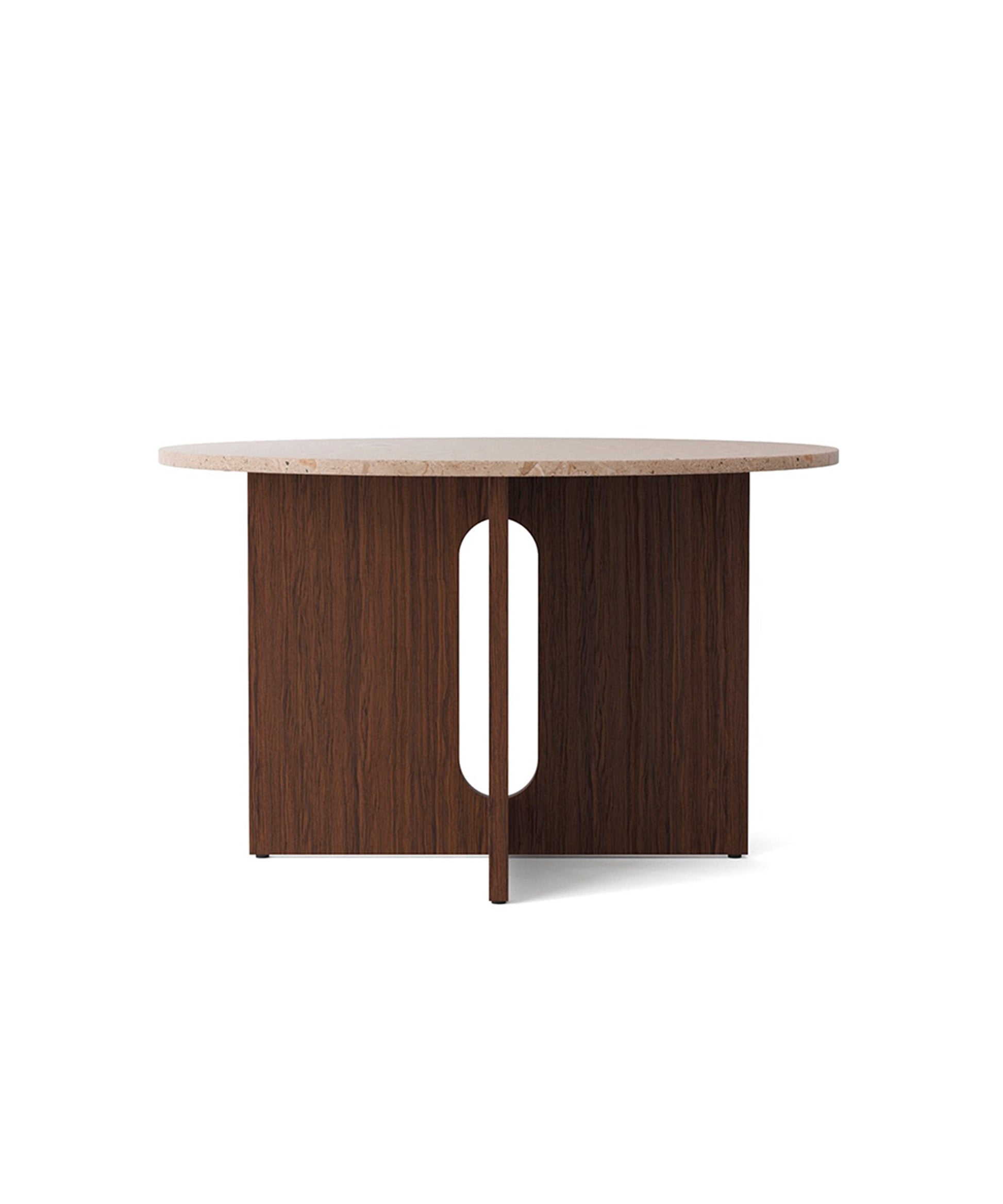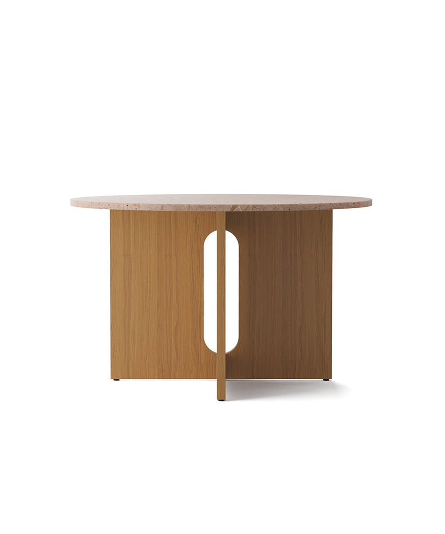Like a magnificent monument, the new Androgyne Dining Table pairs oak and stone to striking effect. The bold and confident take on a dining table amplifies the silhouette of the collection’s popular side table to grander proportions thanks to an elegant oak base – available in natural or dark stained – and a tabletop in corresponding wood or kunis breccia, an artistic blend of stones in warm tones that create subtle texture and add a new dimension to the design.