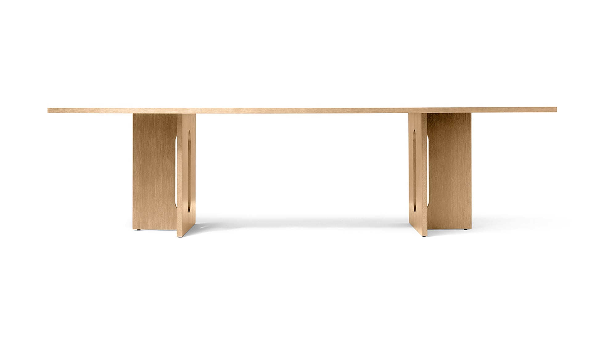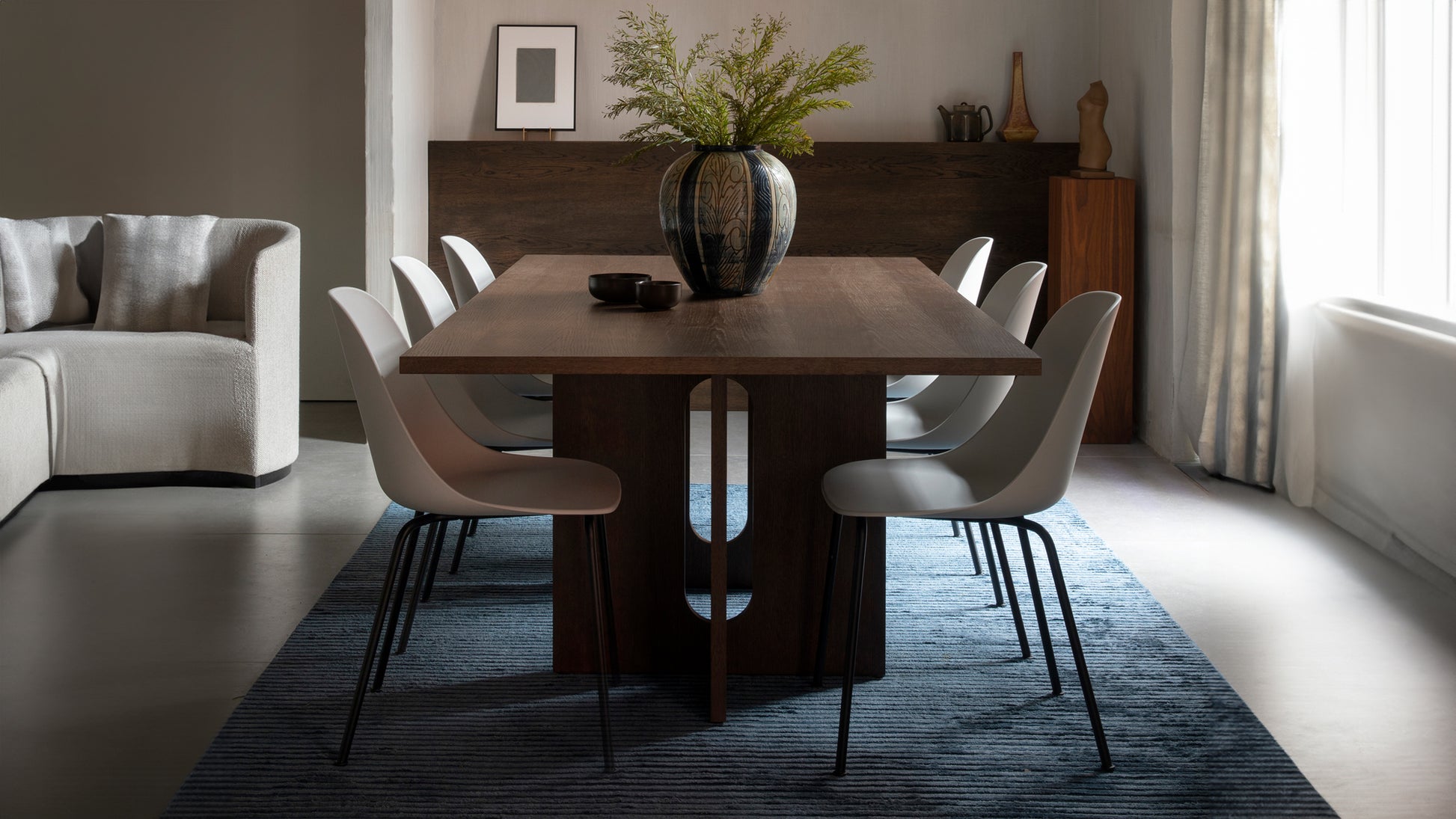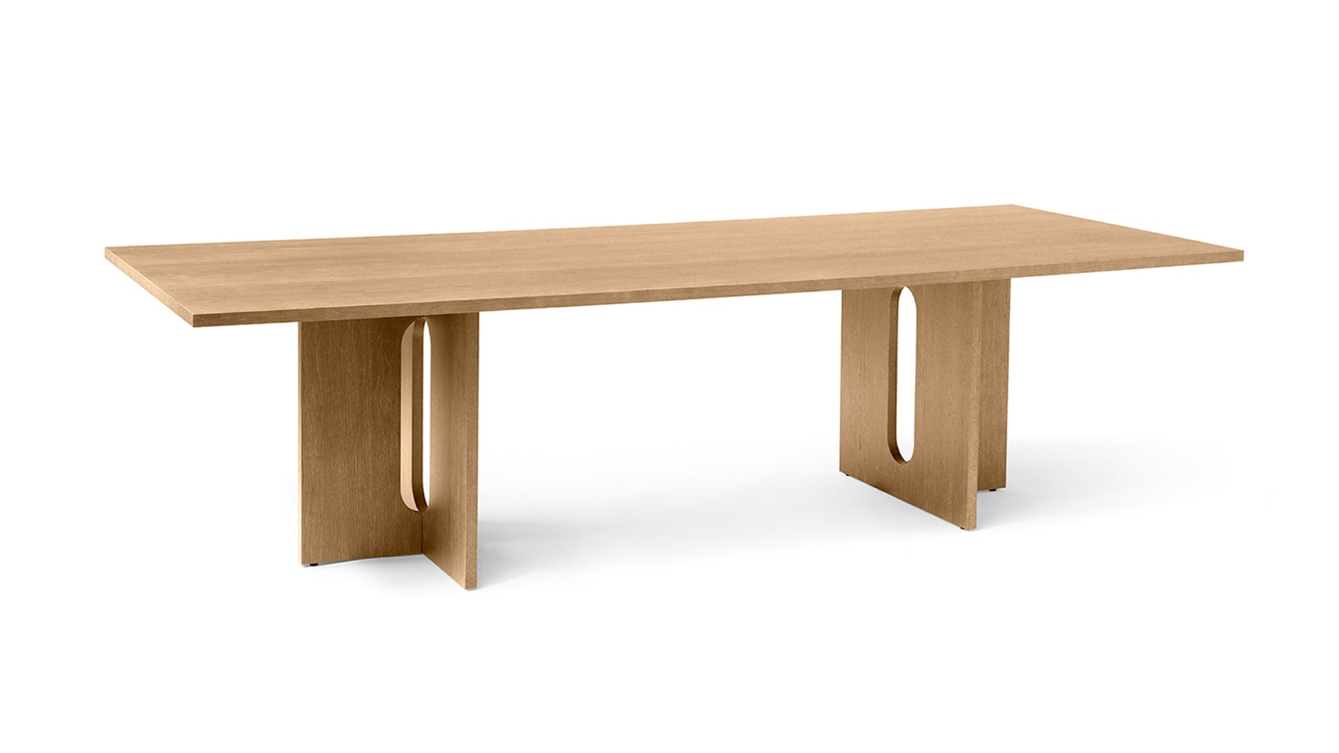 The invention of the Copenhagen-based Norwegian architect and designer Danielle Siggerud, its blend of the masculine and feminine true androgyny is what lends the collection its name. Like a magnificent monument, the new Androgyne Dining Table pairs oak and stone to striking effect. The bold and confident take on a dining table amplifies the silhouette of the collection’s popular side table to grander proportions thanks to an elegant oak base – available in natural or dark stained and a table top in corresponding wood or kunis breccia, an artistic blend of stones in warm tones that create subtle texture and add a new dimension to the design. A table not for the faint of heart, it makes a characterful accent in any space from a domestic dining room to a modern restaurant or office gathering point and serves multiple functions to bring a timeless quality to the design. “The Androgyne Collection has always been about honouring perfectly executed joinery and celebrating natural materials. The use of rich, warm oak makes it easy to pair the dining table with any interior style, and the wood will age gracefully over time. I envisage the table in a home space, as a natural gathering point that allows people to come together in different ways.” – Danielle SiggerudDesigned by Danielle Siggerud for Danish design company, Audo Copenhagen.