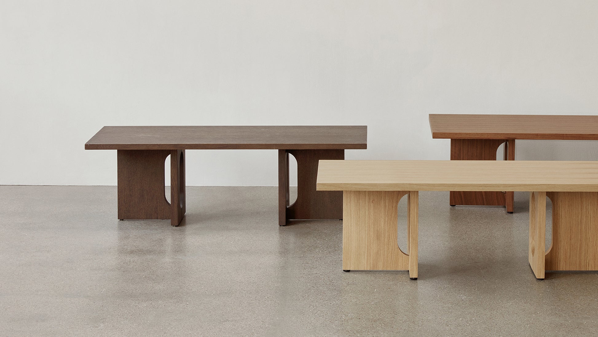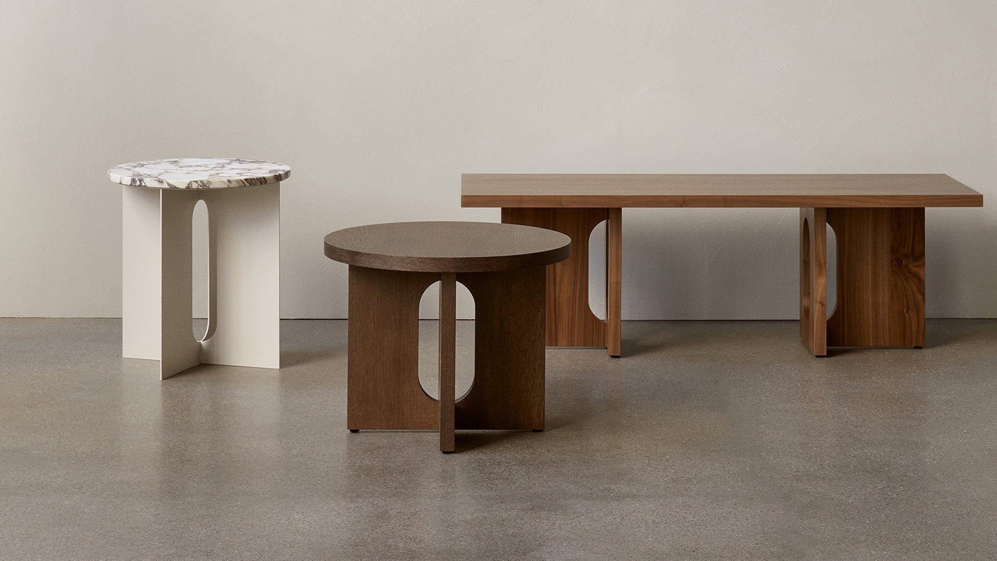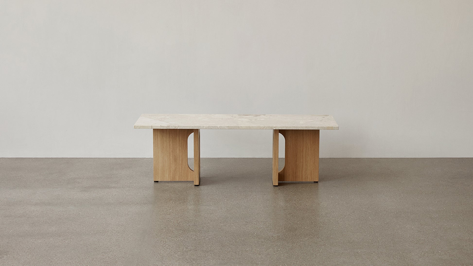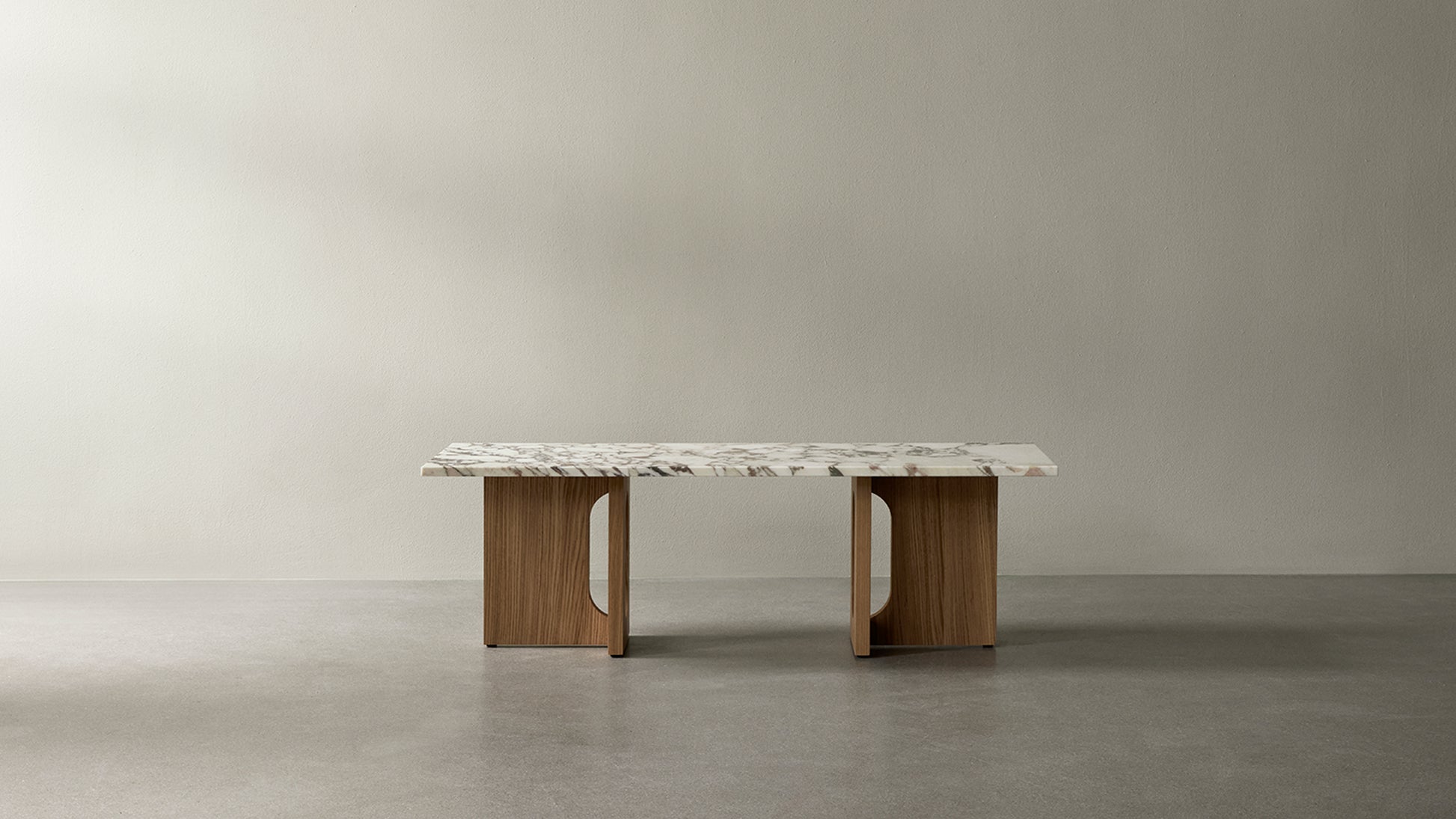 Originally developed by Norwegian architect and designer Danielle Siggerud as a modern and versatile table for MENU’s former showroom café, the Androgyne Collection profiles simple silhouettes and refined materials. Celebrating craftsmanship and wood, the Androgyne Lounge Table is versioned in natural oak or dark stained oak or walnut, as well as with the option of a kunis breccia stone tabletop.