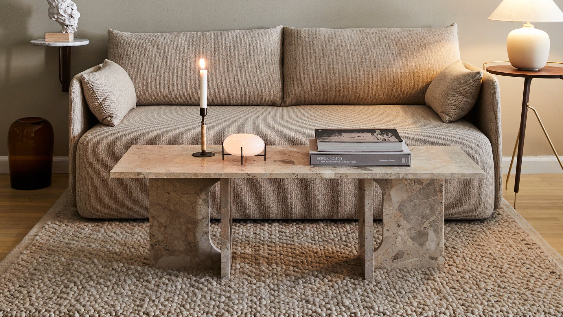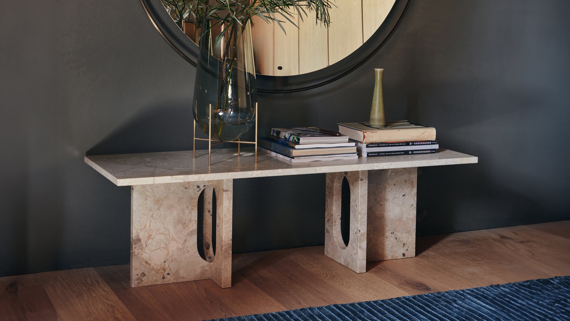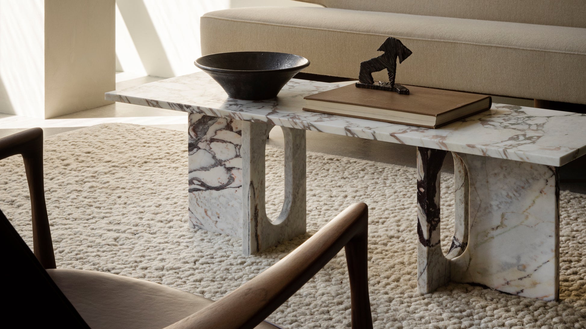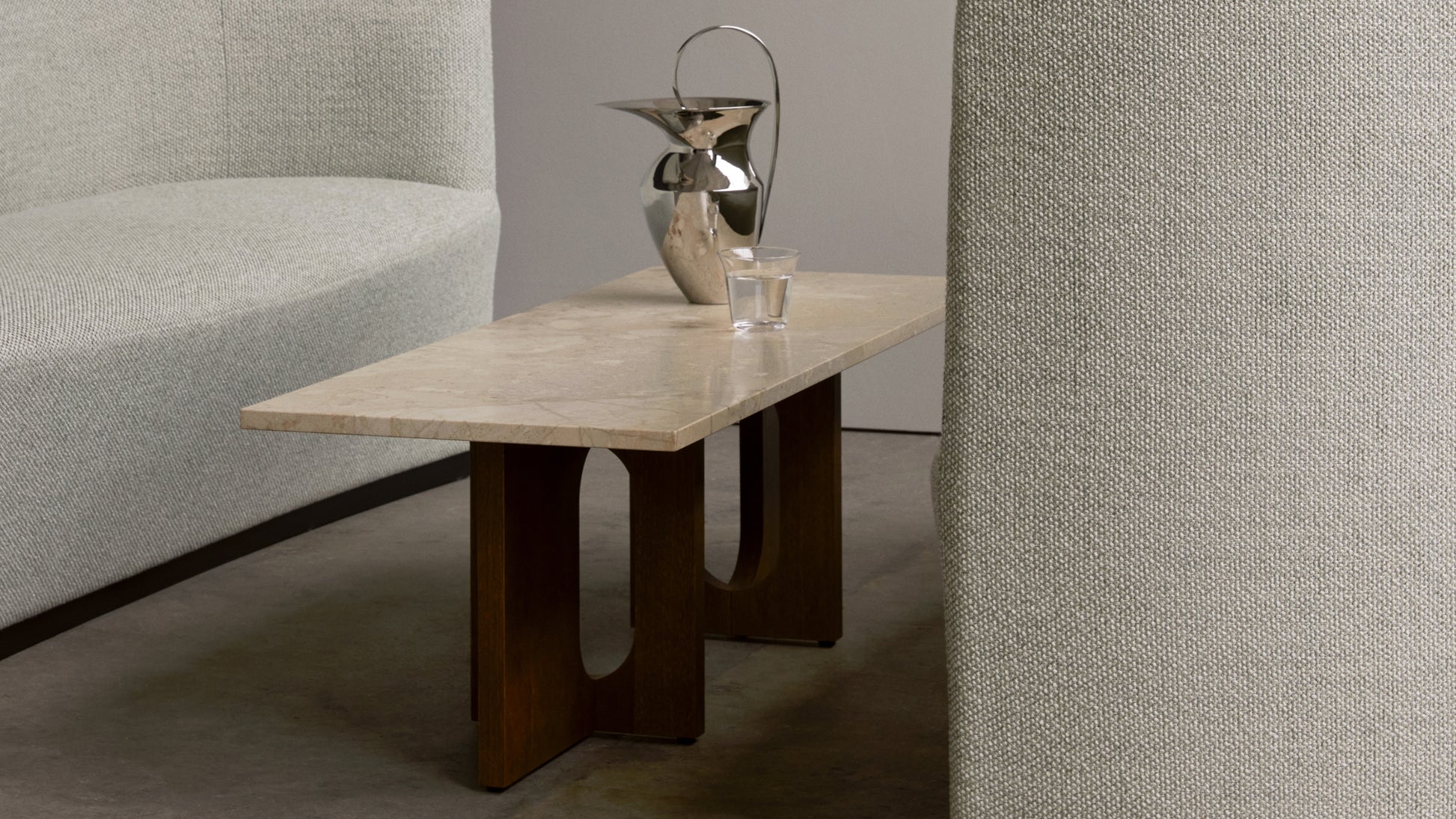 Originally developed by Norwegian architect and designer Danielle Siggerud as a modern and versatile table for MENU’s former showroom café, the Androgyne Collection profiles simple silhouettes and refined materials. Celebrating craftsmanship and wood, the Androgyne Lounge Table is versioned in natural oak or dark stained oak or walnut, as well as with the option of a kunis breccia stone tabletop.