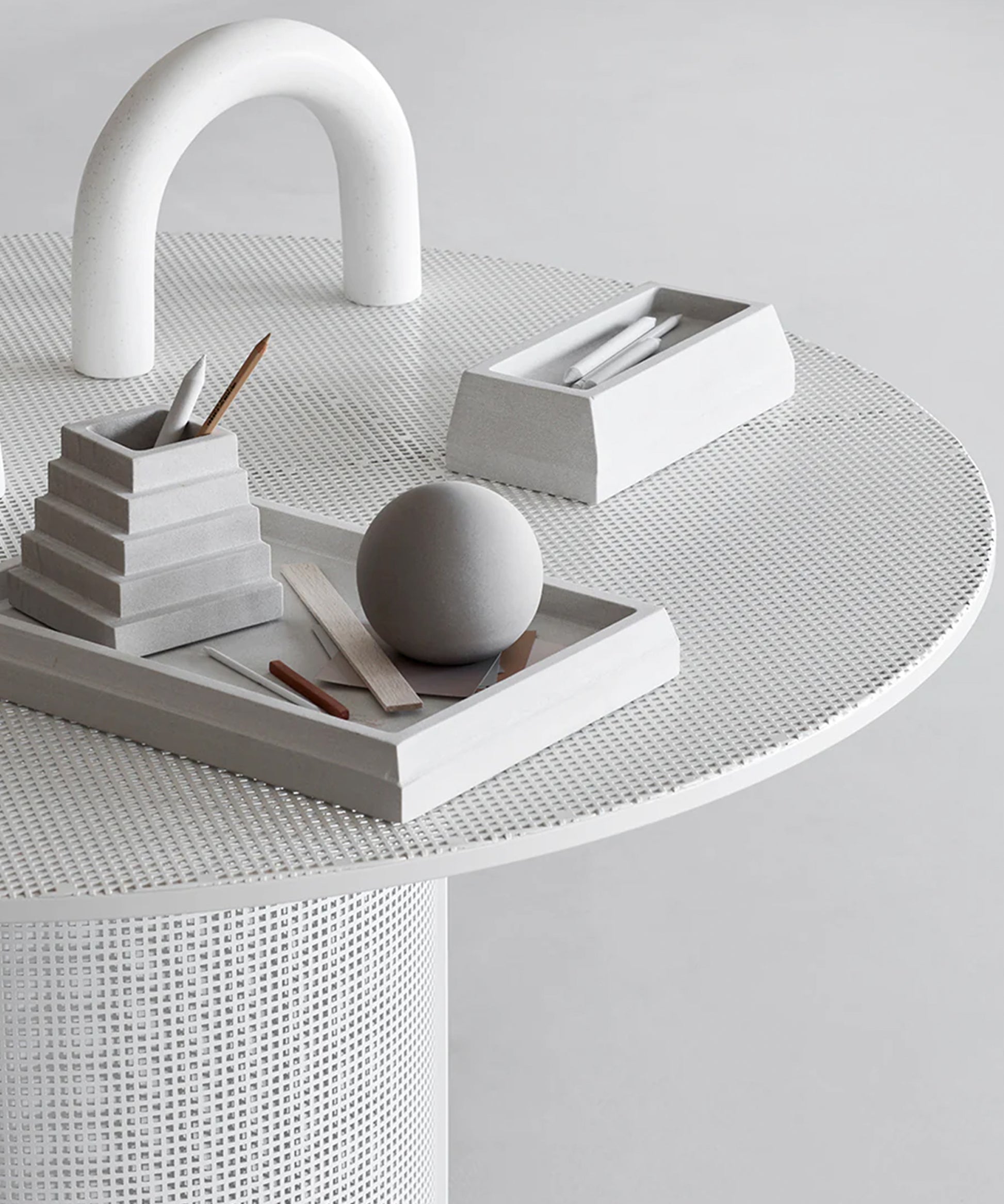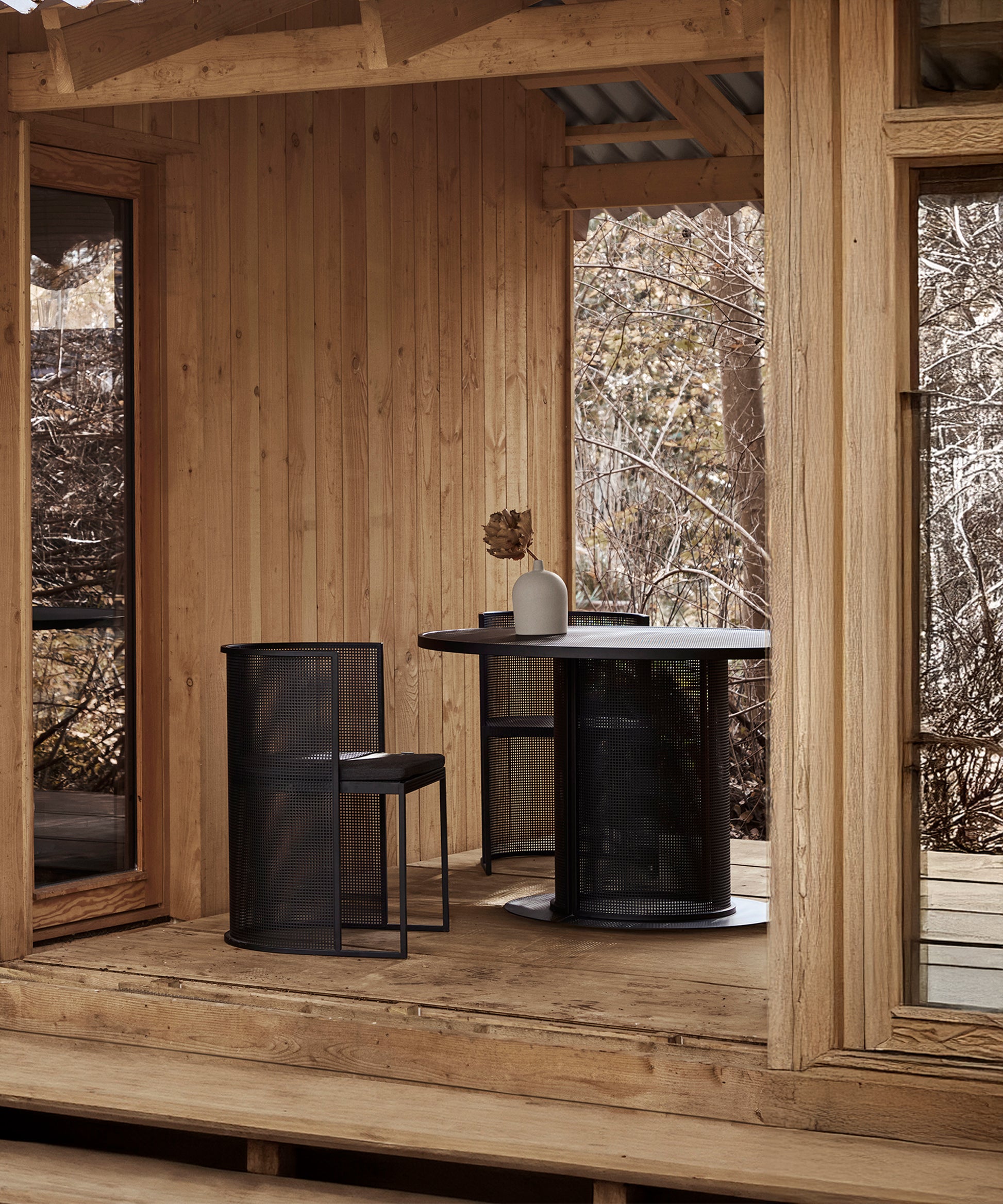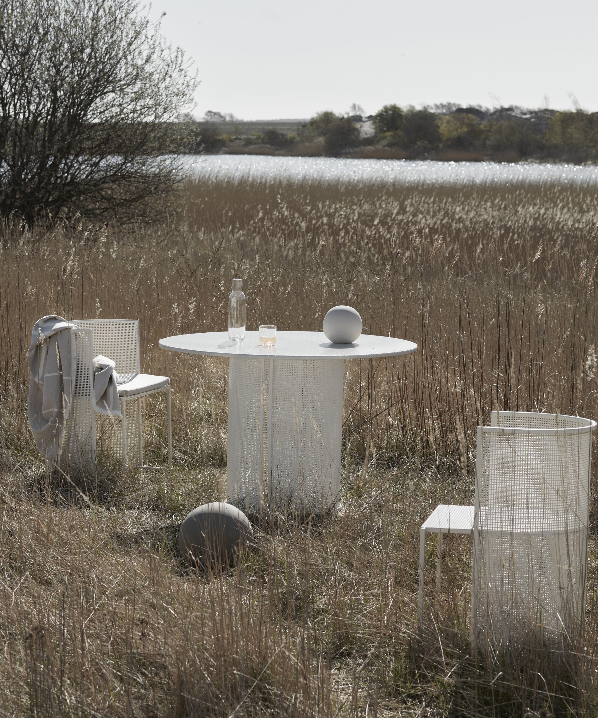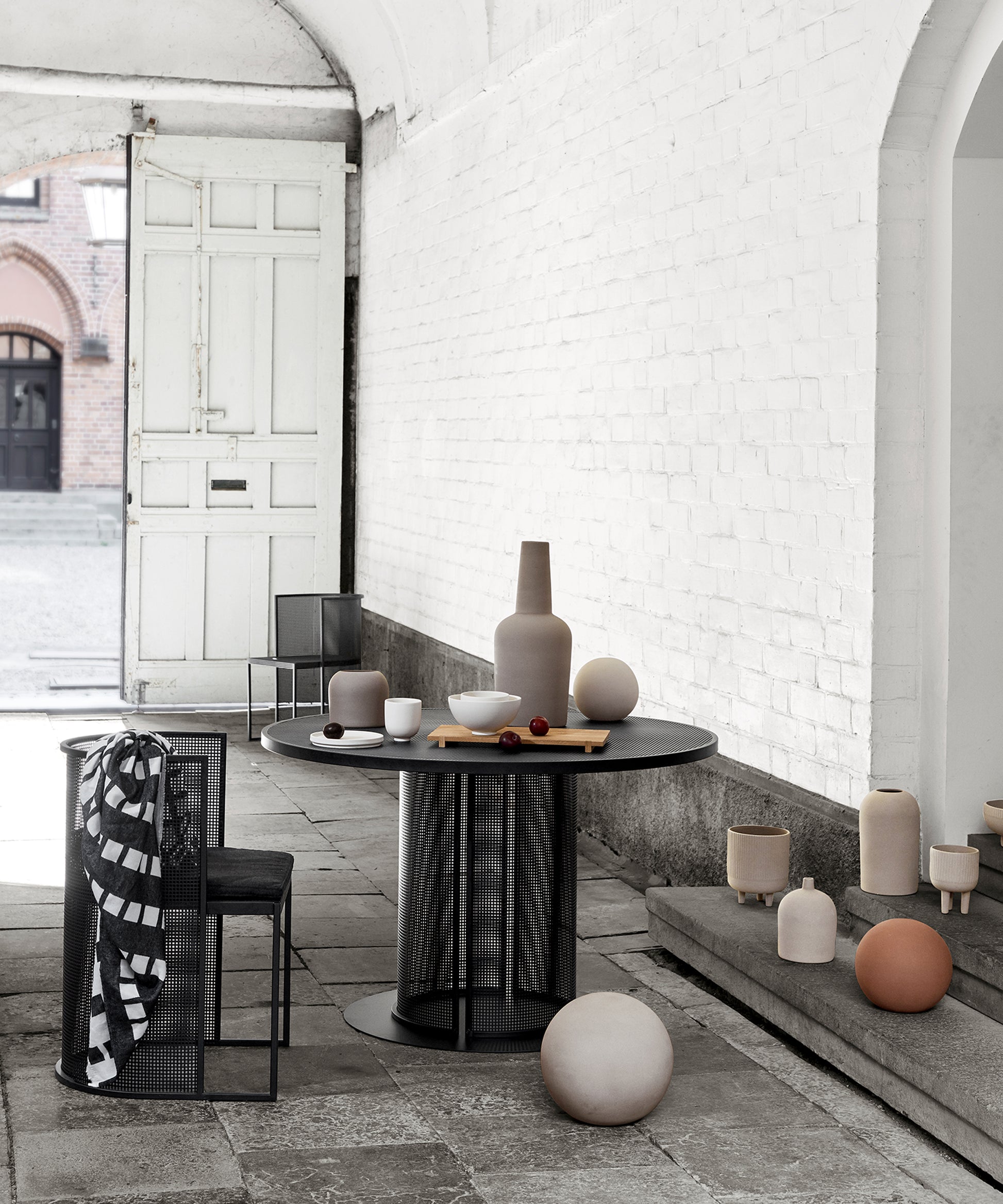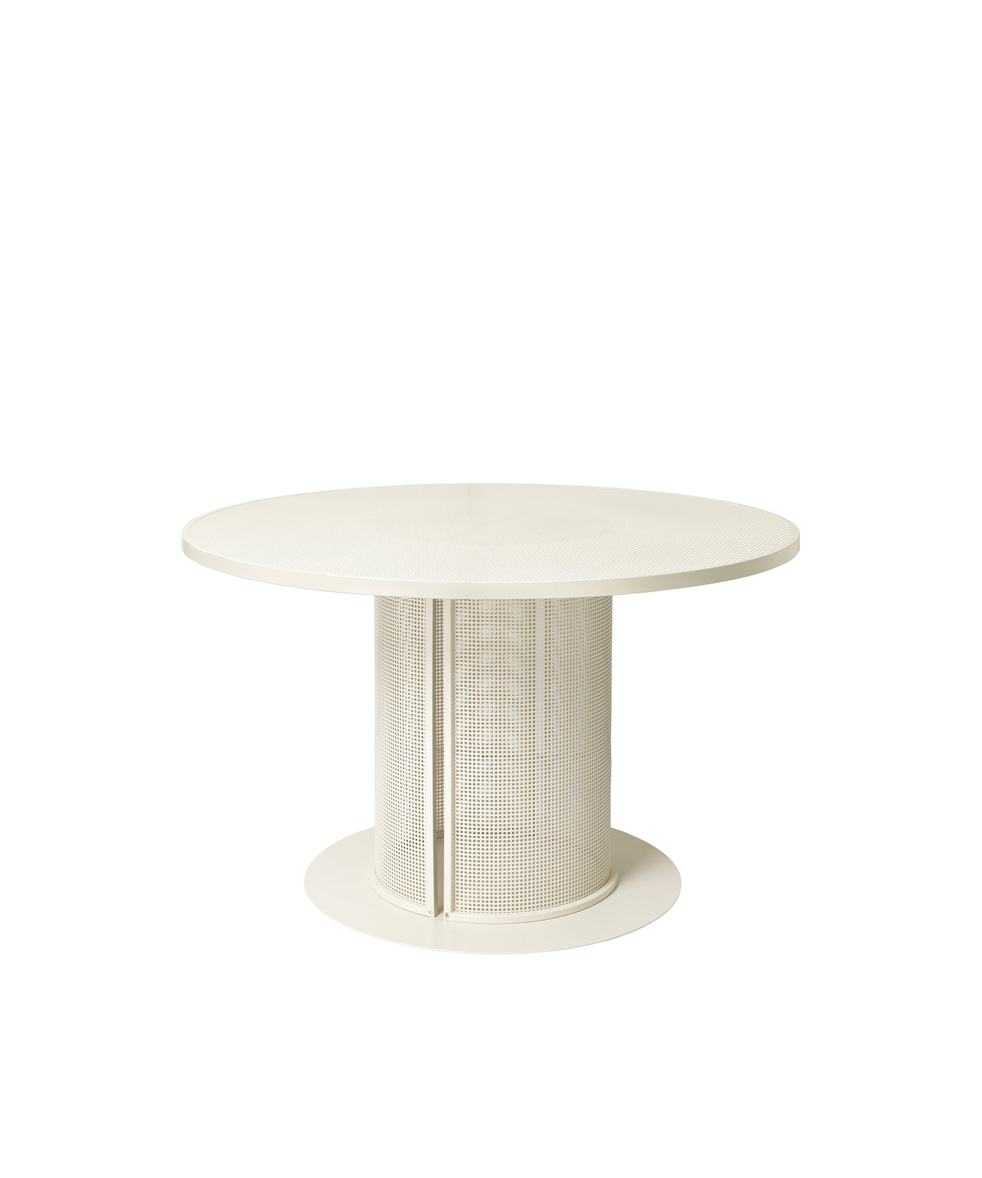 A round and circular table with a clean and straightforward design. The tabletop and the legs are made of perforated steel - a trademark design feature of the entire Bauhaus furniture range. As you know there is more space around a circular table and since no table legs are in the way in this unique design, you can easily fit many guests around this Danish designer table. The Bauhaus Dining Table shares the same characteristic design as the rest of the rest of Bauhaus furniture series - for example the Bauhaus Lounge Chair - black. The round tabletop made of perforated steel softens the engineered expression and gives the table a transparent and light appearance. The Bauhaus table is equally suitable for intimate meetings or large café-like environments. A very versatile table made of slick beige weather-resistant powder-coated stainless steel. The Bauhaus Dining Table is suitable for both indoor and outdoor use. The unique and simple design ensures that the table will last for a long time in your home interior. Use the Bauhaus Dining Table as both a kitchen dining table and enjoy its sculpture and neat look, when it is not used to dining. An ideal table for outdoor restaurants and urban spaces due to its coated stainless steel frame. When encircling by the black-colored Bauhaus Dining Chair you will have an outstanding dining furniture set. The design is simple and elegant based on pure geometrical components making the Bauhaus furniture series a perfect choice for all modern domains. Designed in Denmark and is available in this black or a neat beige coloring.