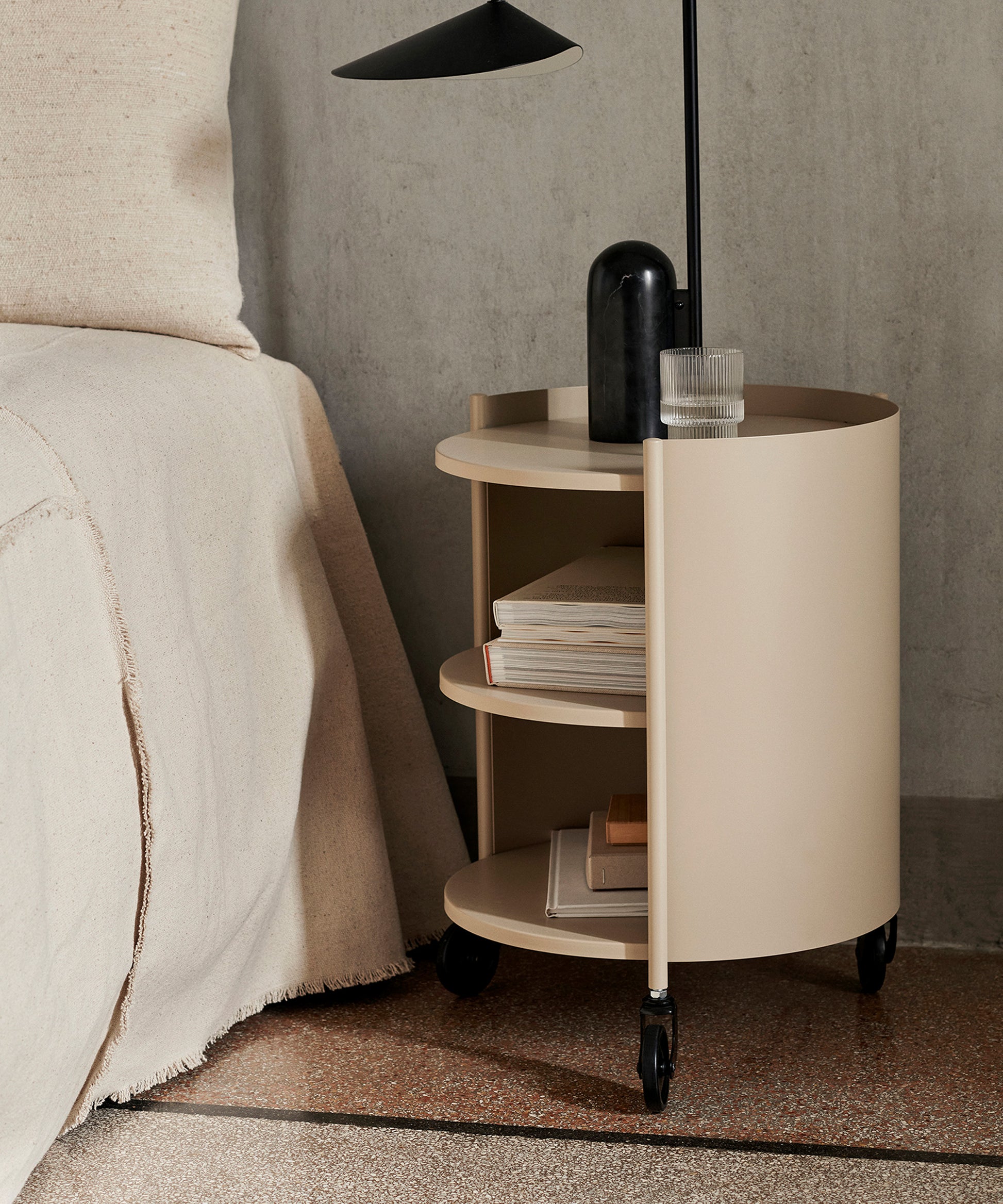Place a table lamp on the top shelf and use the Eve Storage as a practical bedside table, use it in the living room as a stylish side table or in the office to store your essentials. The functional wheels make it convenient to move the Eve Storage from one room to another, making it easy to fulfill all of your storage needs.