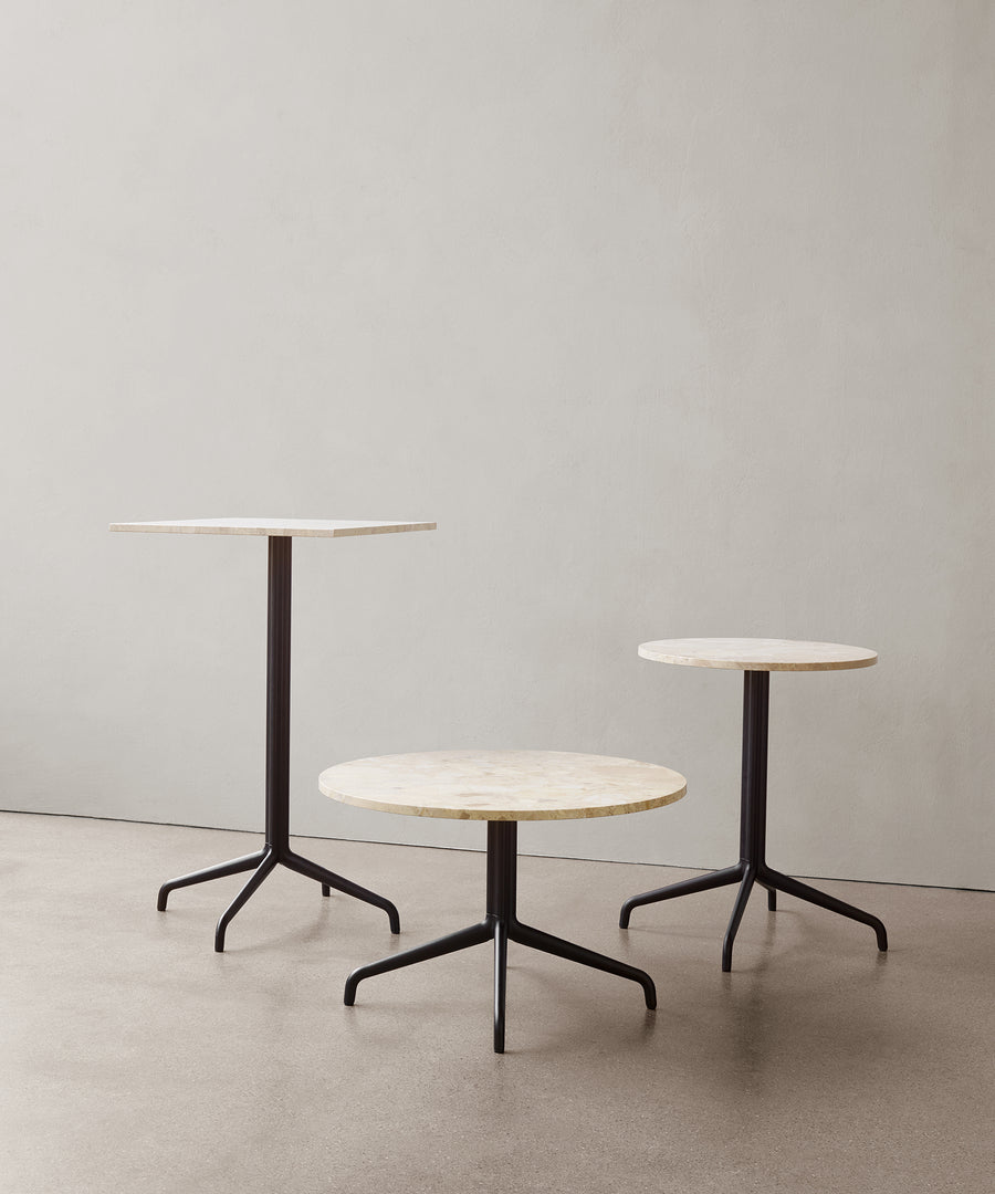 The Harbour Column Table features a simple tabletop paired with a subtle yet sophisticated clover-shaped column profile: the same one you’ll see in the new swivel version of the Harbour Chair. The pairing gives the modern design a classic, exclusive feel. While the table was originally designed for the Harbour Chair, it also works beautifully with other seating types and styles. At the heart of the Harbour family, after all, is a desire to meet our constantly evolving needs with adaptability and grace. At Audo Space, Audo’s testing ground for new products and a creative hub that’s part office, part café, and part co-working space, the Harbour Column Table has demonstrated an exceptional ability to meet every functional demand, while also pleasing the senses with its balanced, slim silhouette and tactility. The table is available with both round and rectangular tabletops, and in three heights, so finding the right one for your space is easy. You just might wonder how you managed without it. The column base is constructed in steel and aluminum in a black powder-coated finish, with dining, counter and bar heights to fit numerous needs in homes, workplaces, cafés, and lobbies, the possibilities are endless. Mix and match bases and tabletops to create your ideal pairing.