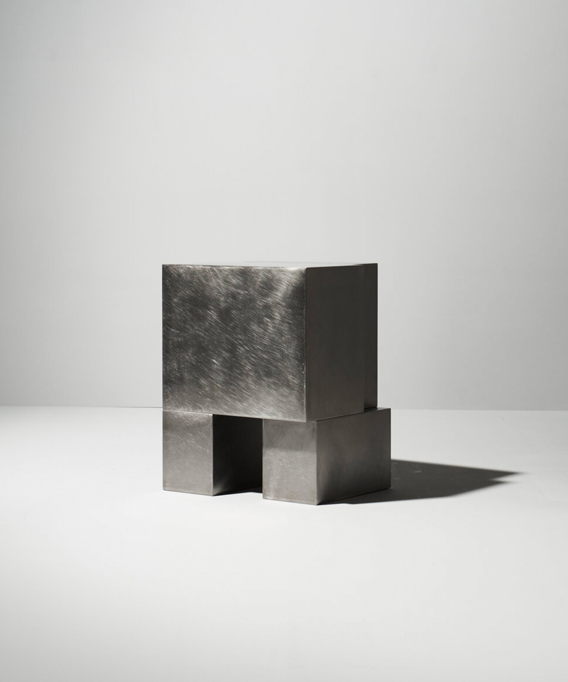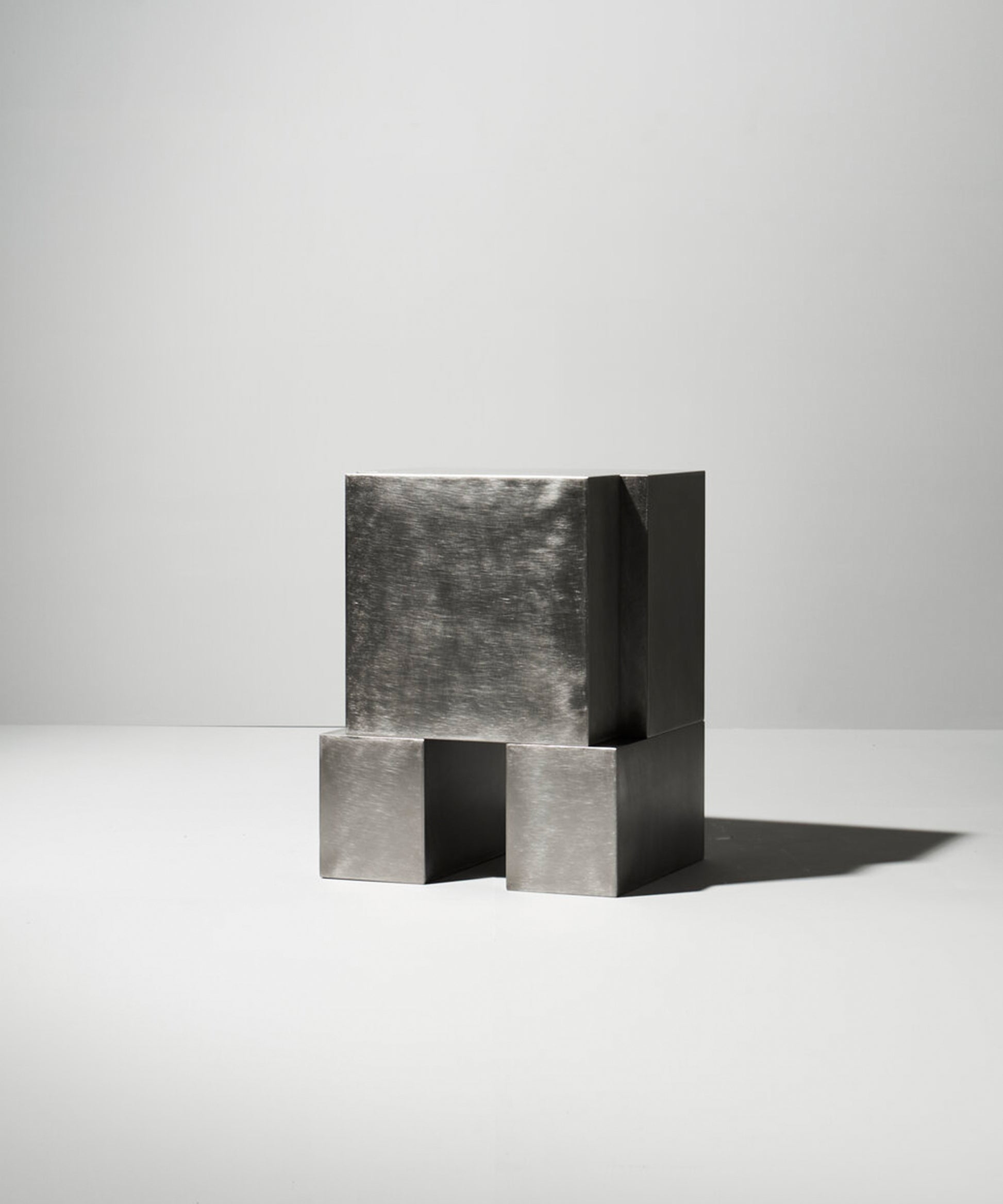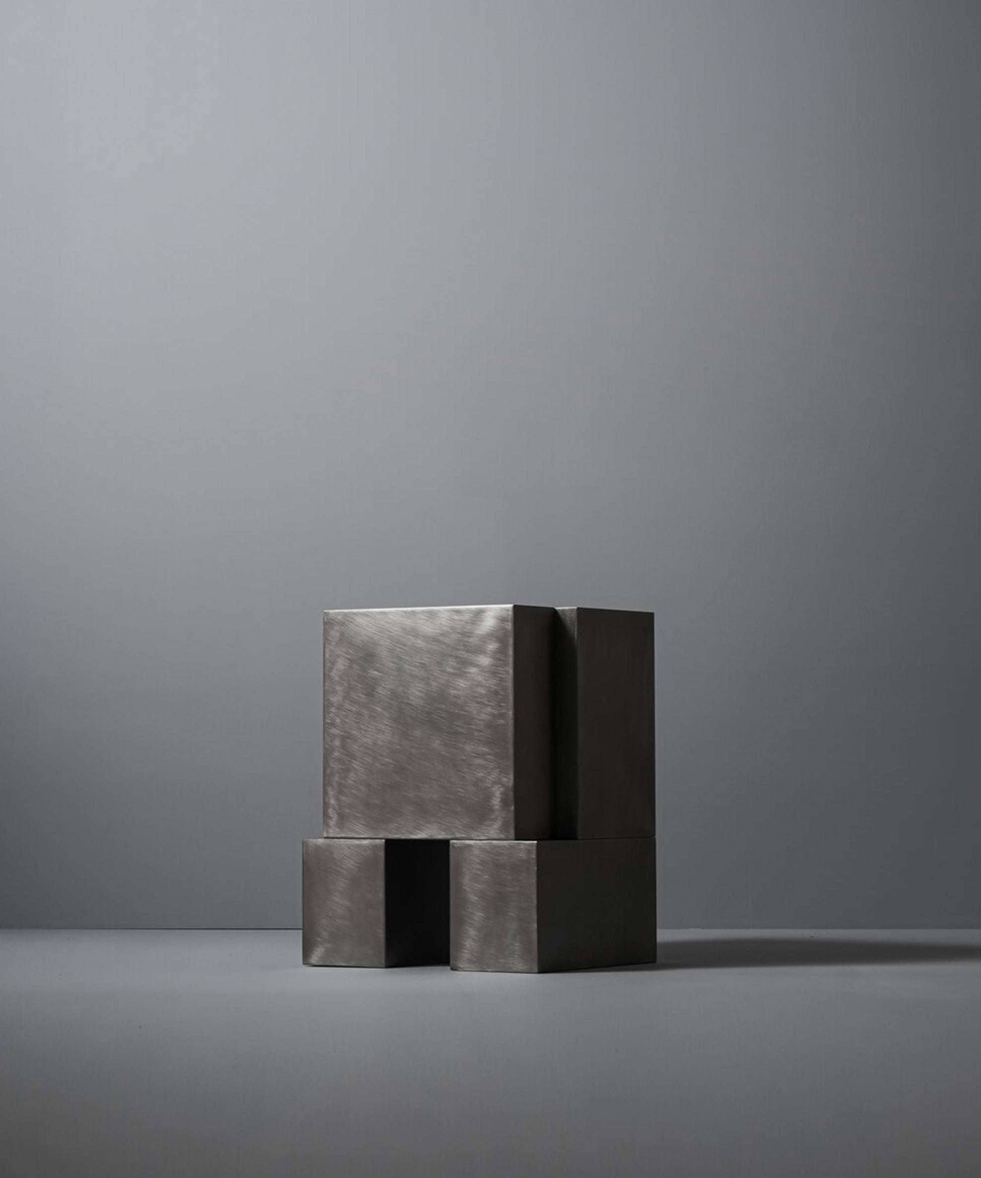 Layered steel is as part of the Layered series, the stainless steel surface is 100% hand-sanded and wax finished to add depth and emphasize formability.The Layered Series is the main concept of Hwang's work. He focuses on experimentation layering materials we can easily find around us to form architectural compositions. This series starts from his childhood memory of an incessantly transforming city full of geometric architecture.