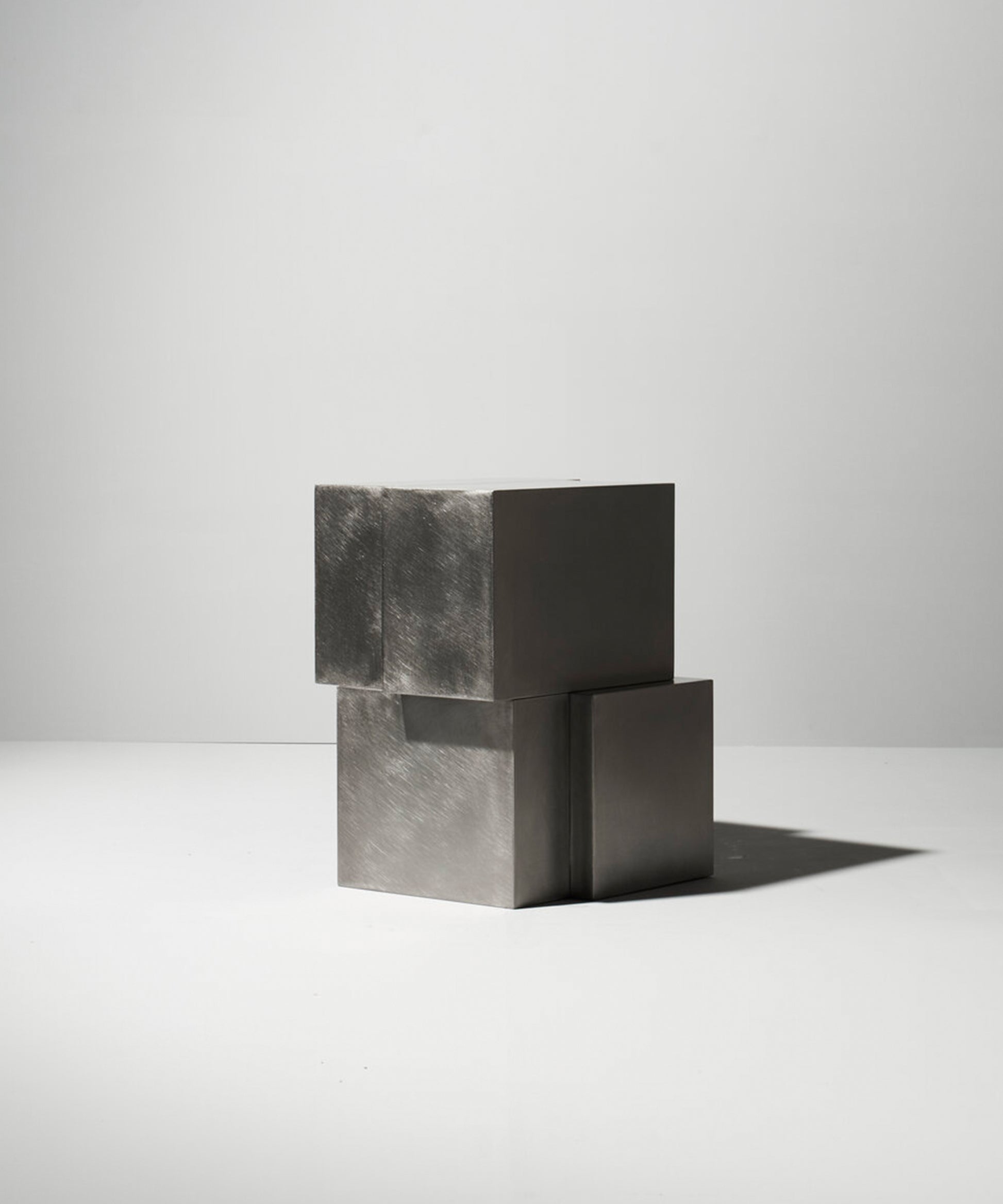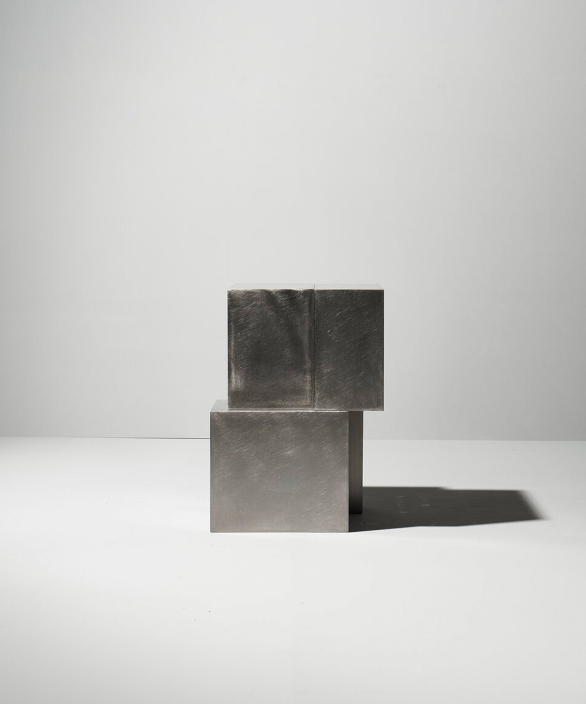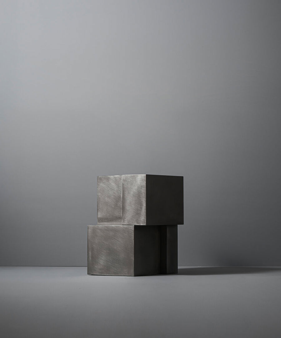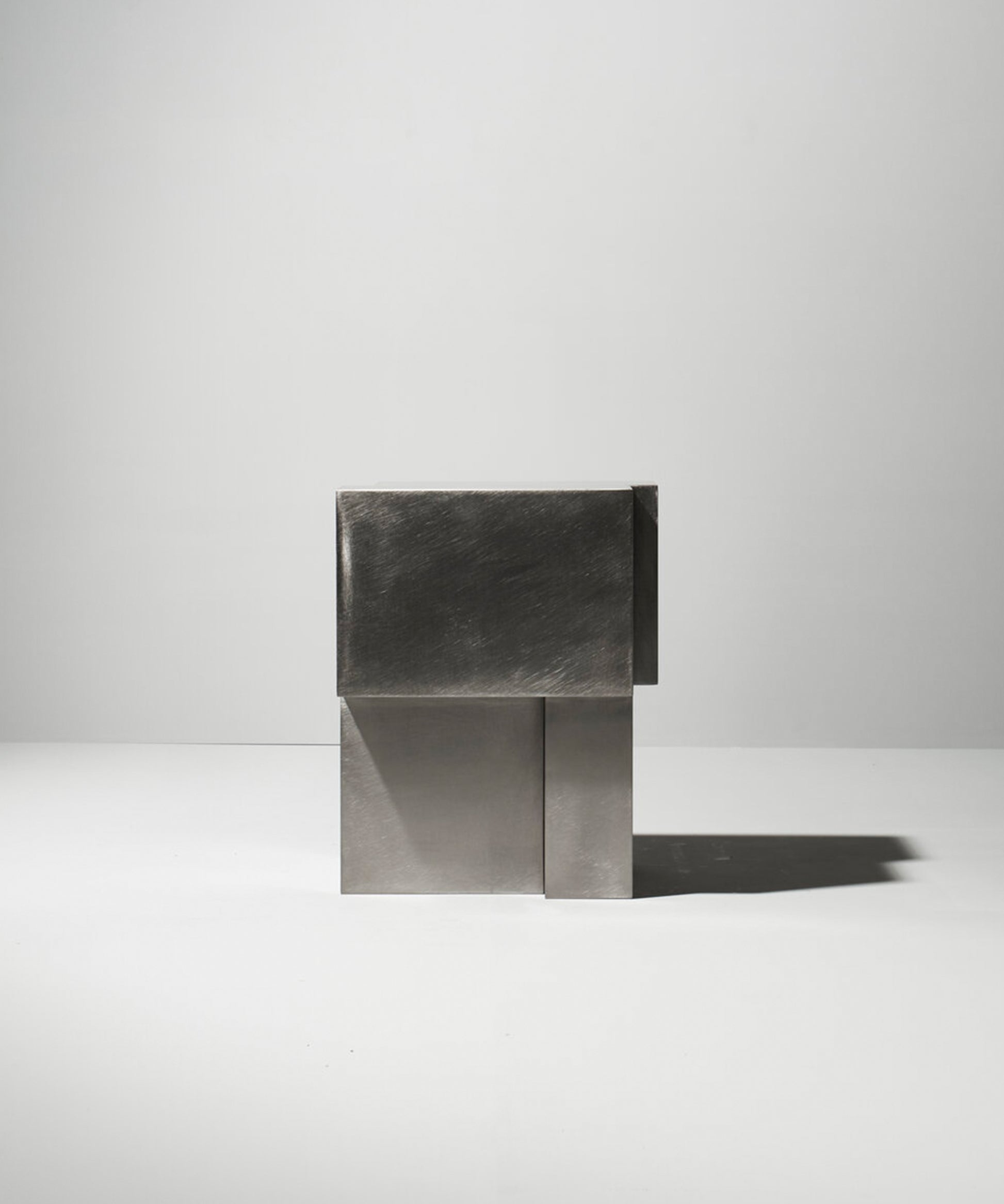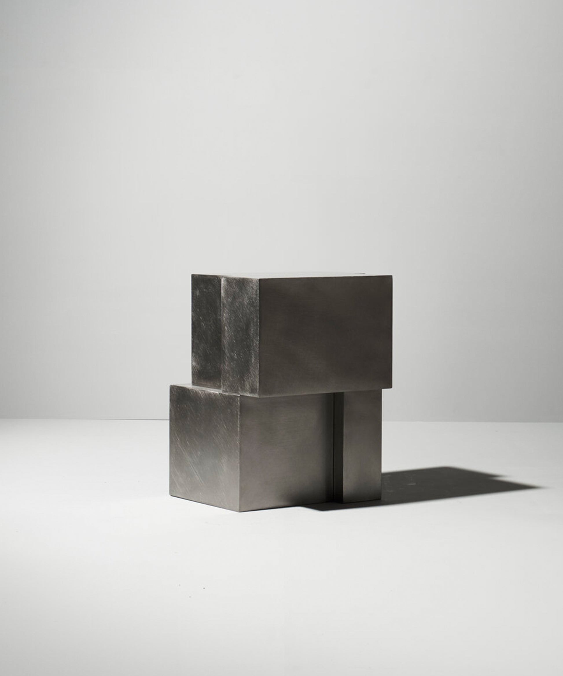 Layered steel is as part of the Layered series, the stainless steel surface is 100% hand-sanded and wax finished to add depth and emphasize formability.The Layered Series is the main concept of Hwang's work. He focuses on experimentation layering materials we can easily find around us to form architectural compositions. This series starts from his childhood memory of an incessantly transforming city full of geometric architecture.