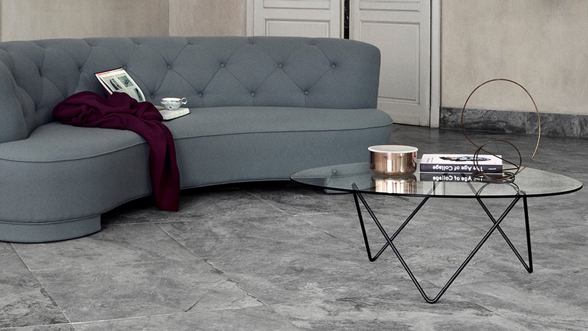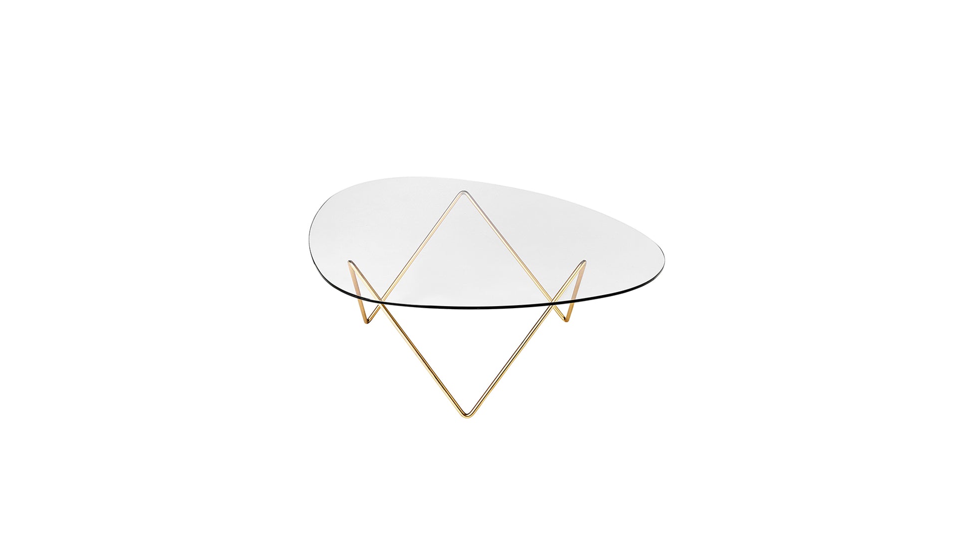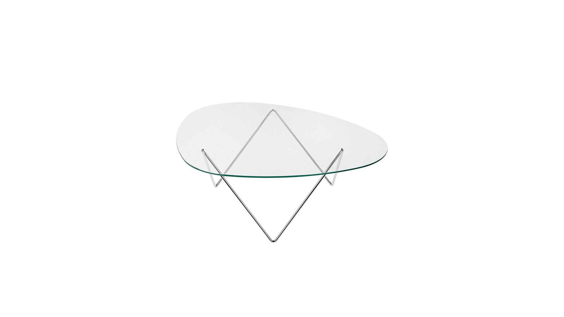 The table base is made from a glass top with the choice of a powder-coated steel, chrome, or brass base.