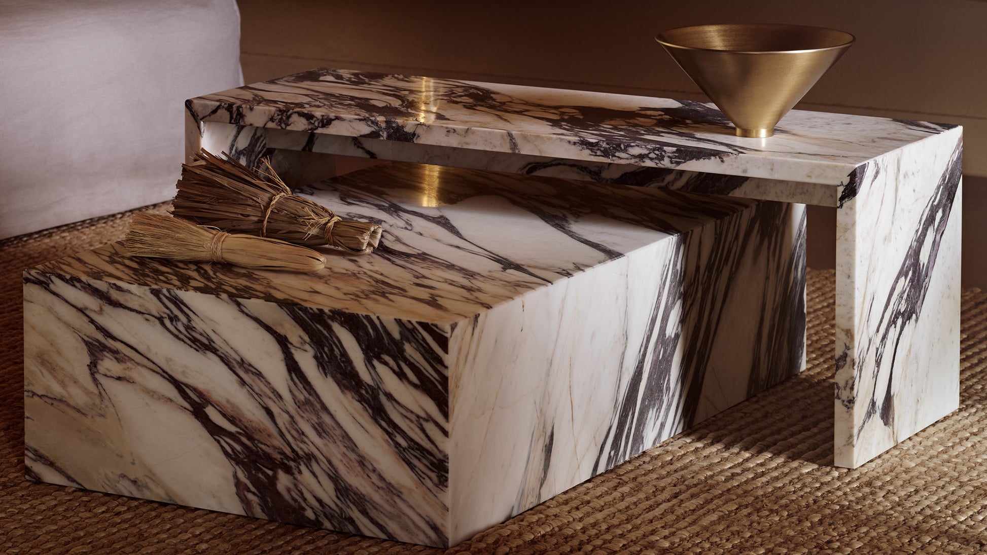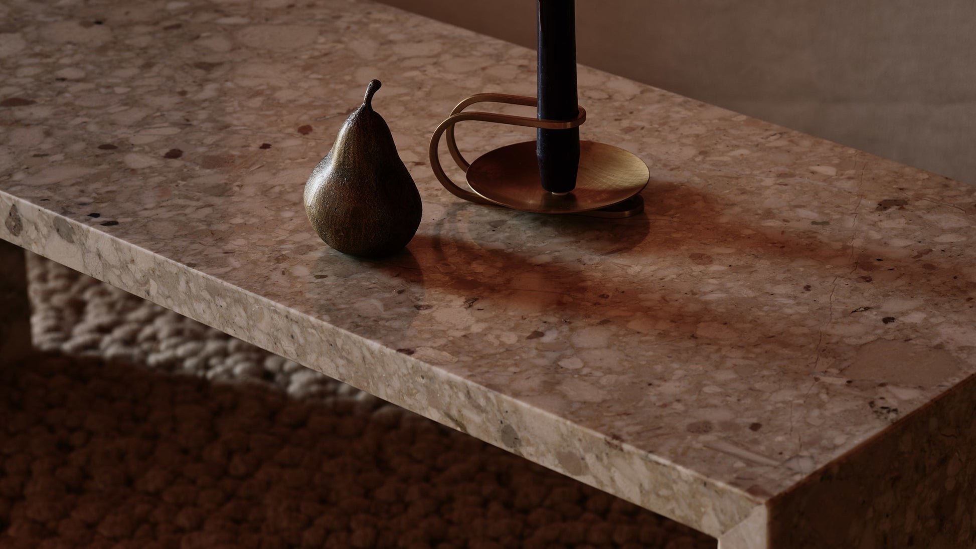 Made from high-grade marble or stone in a range of beautiful colors, the sleek table works independently as well as in combination with the Plinth Low and Plinth Grand podiums.