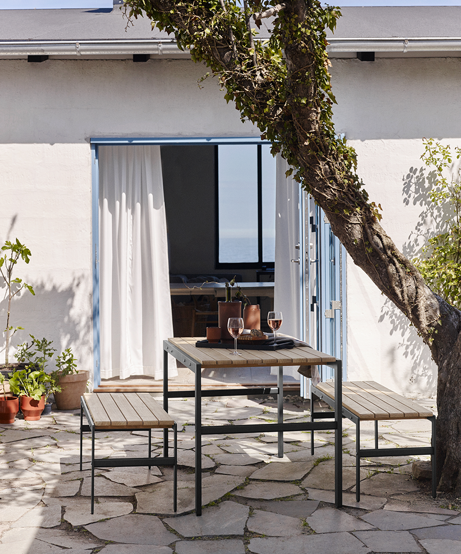 This series brings together industrial and natural elements in a classical design where small details stand out. The bench carries a restrained style which makes it highly compatible with other outdoor furniture in various materials and settings.