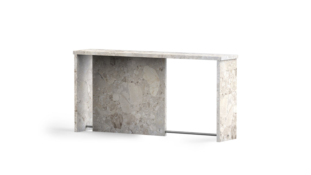 “The process for designing the Segment Series was reductive. I asked, how can we simplify these forms to make a dense material like solid stone feel a bit lighter? That's how the small gaps between adjoining slabs, which now define the collection, came about. I also considered how light interacts with the product, allowing the occasional ray to peer through the slivers of negative space." - Tariq Dixon, Designer