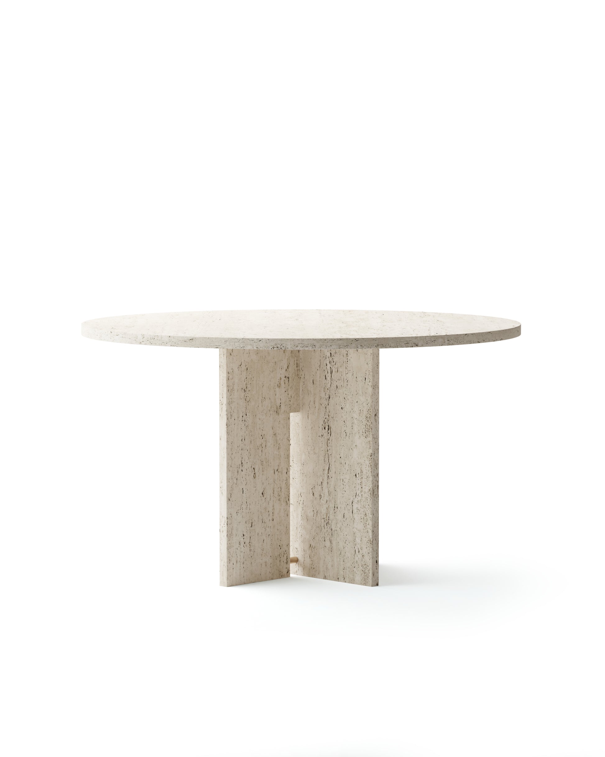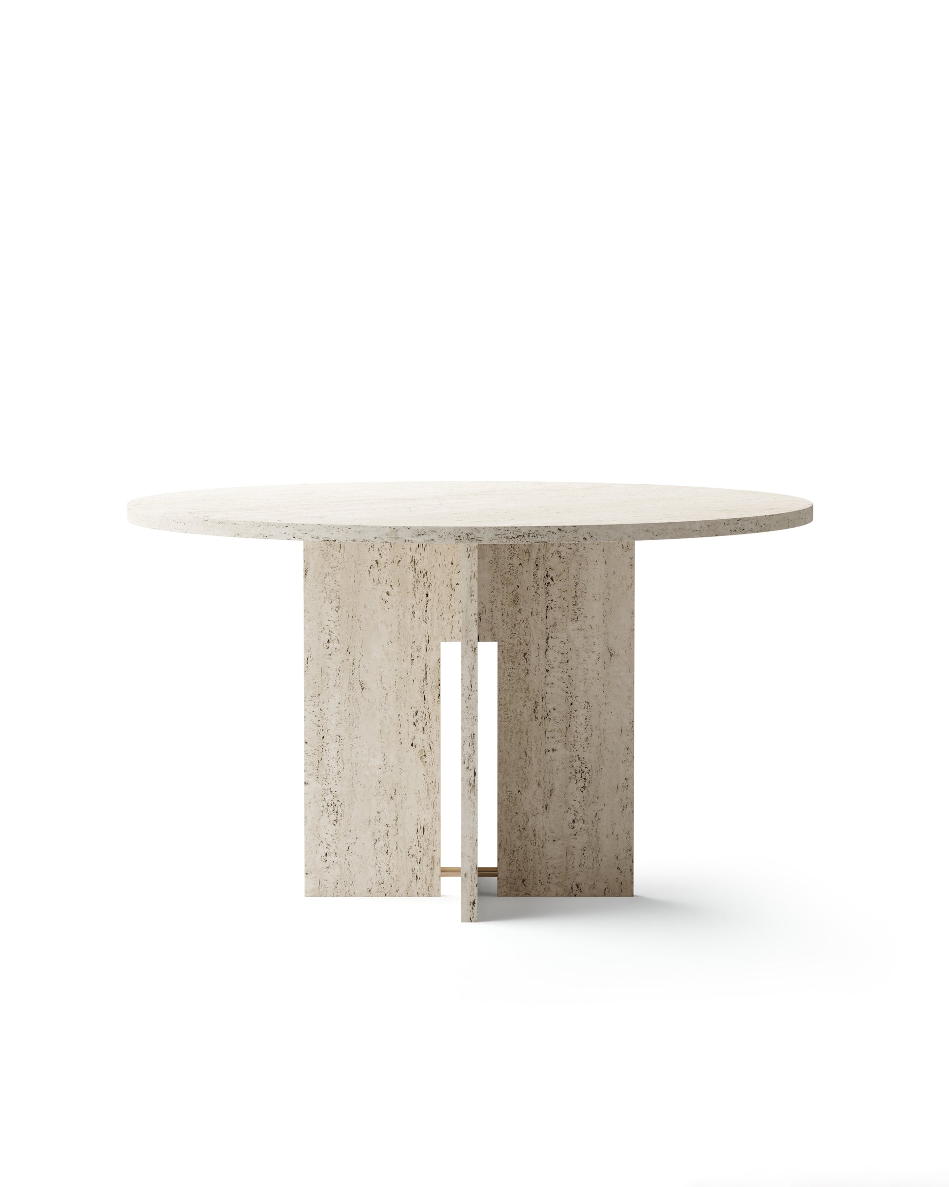 For bringing this collection to life, we turned to Portugal - a country with a centuries-old history of stone artisanship. Each table is made-to-order using thick, solid slabs of raw travertine or honed stone and marble combined with metal rods for material contrast and unyielding structural support. We've added extra extra strength and support through aluminum insert construction, making the pieces lighter and less damage prone. (Please note, raw travertine has open pores, giving it an organic, textural surface. The dining table ships as disassembled components; however, our In-Home delivery service includes assembly.)