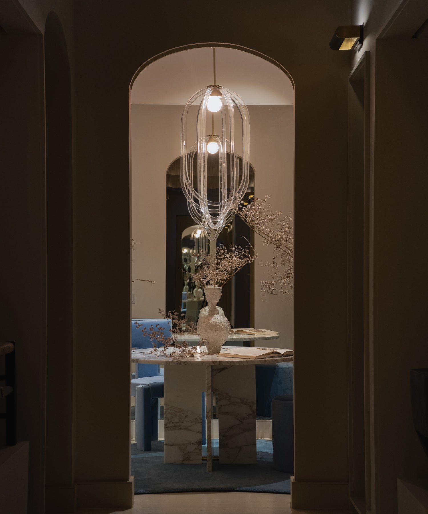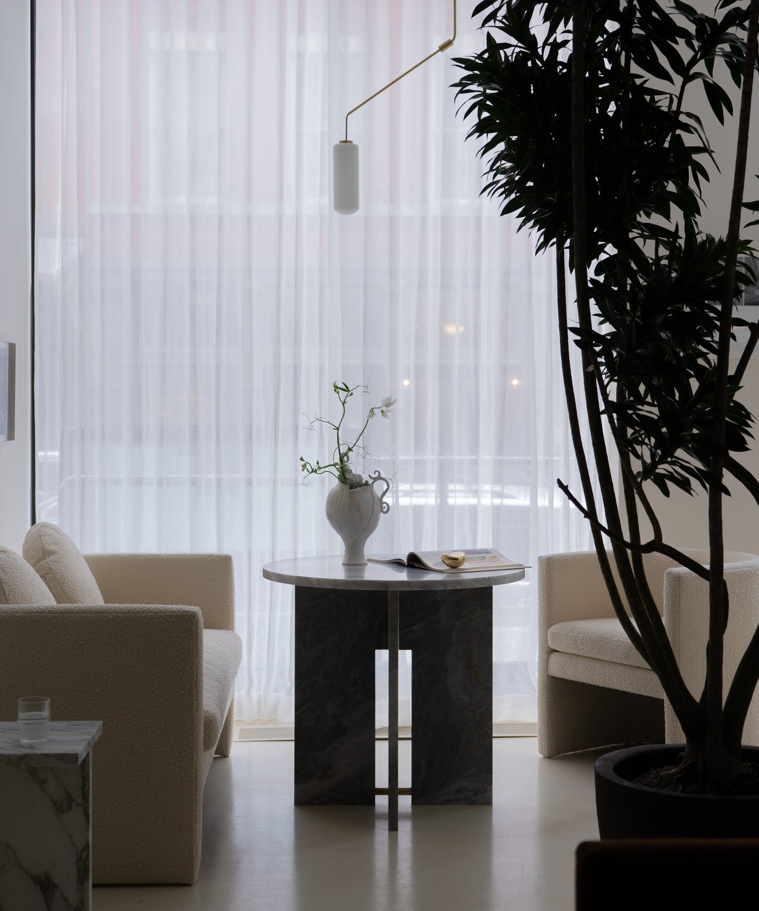 “The process for designing the Segment Series was reductive. I asked, how can we simplify these forms to make a dense material like solid stone feel a bit lighter? That's how the small gaps between adjoining slabs, which now define the collection, came about. I also considered how light interacts with the product, allowing the occasional ray to peer through the slivers of negative space." - Tariq Dixon, Designer
