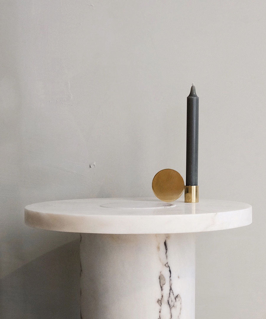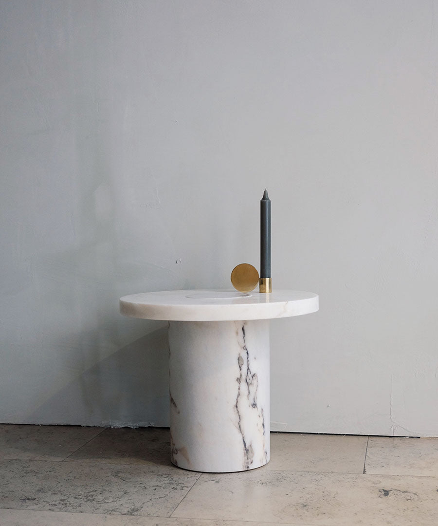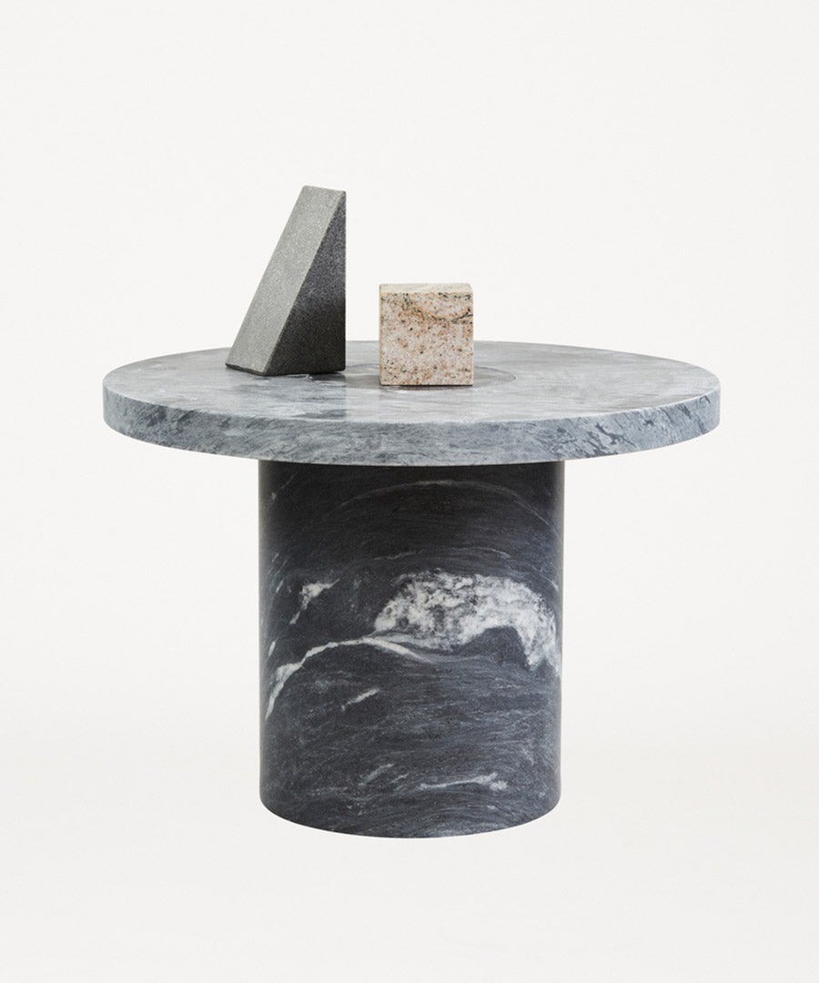 Suitable as a coffee table or side table, the Sintra Table features a smooth marble top with a contrasting rounded cork base.