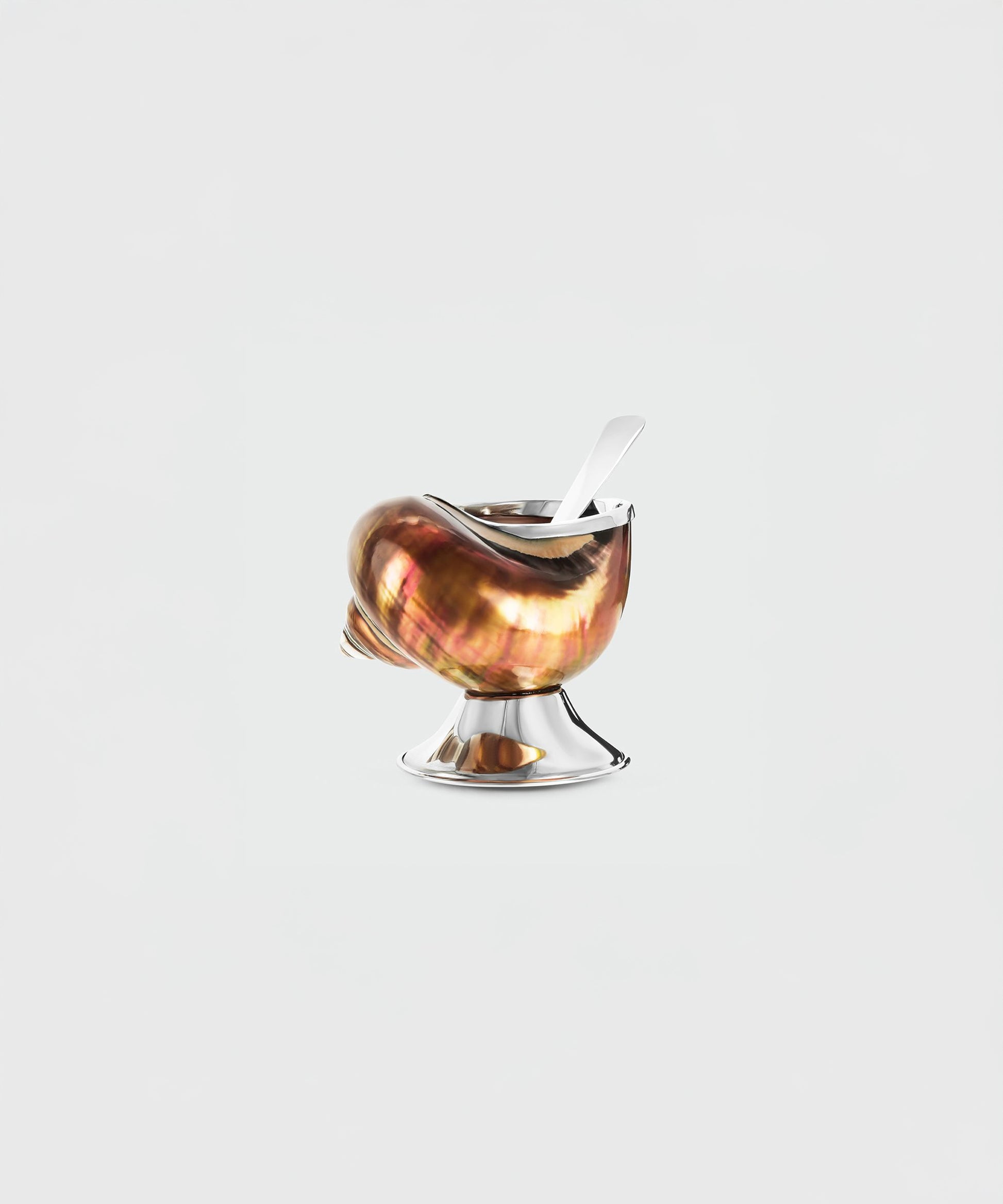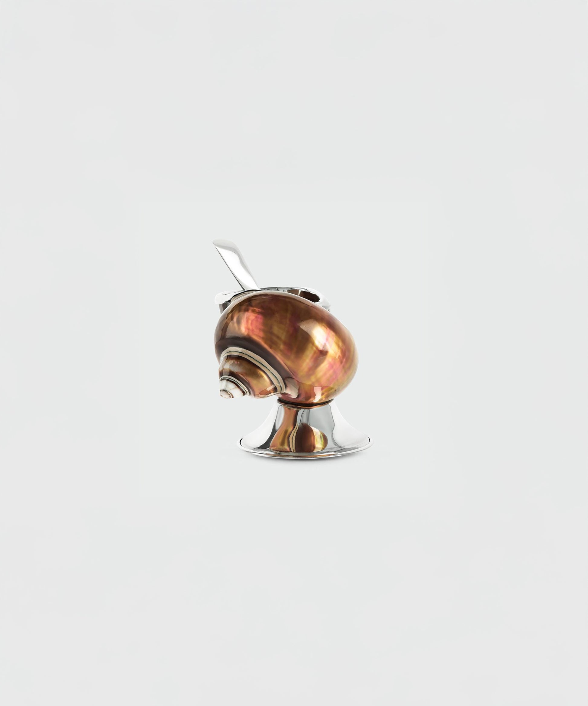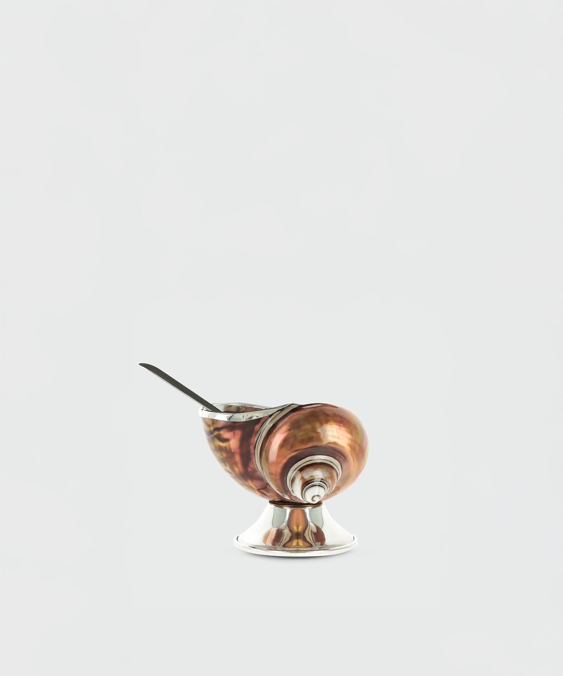 This exclusive sugar bowl is created from the rare Turbo imperialis shell, highlighting its natural bronze tones and iridescent interior.