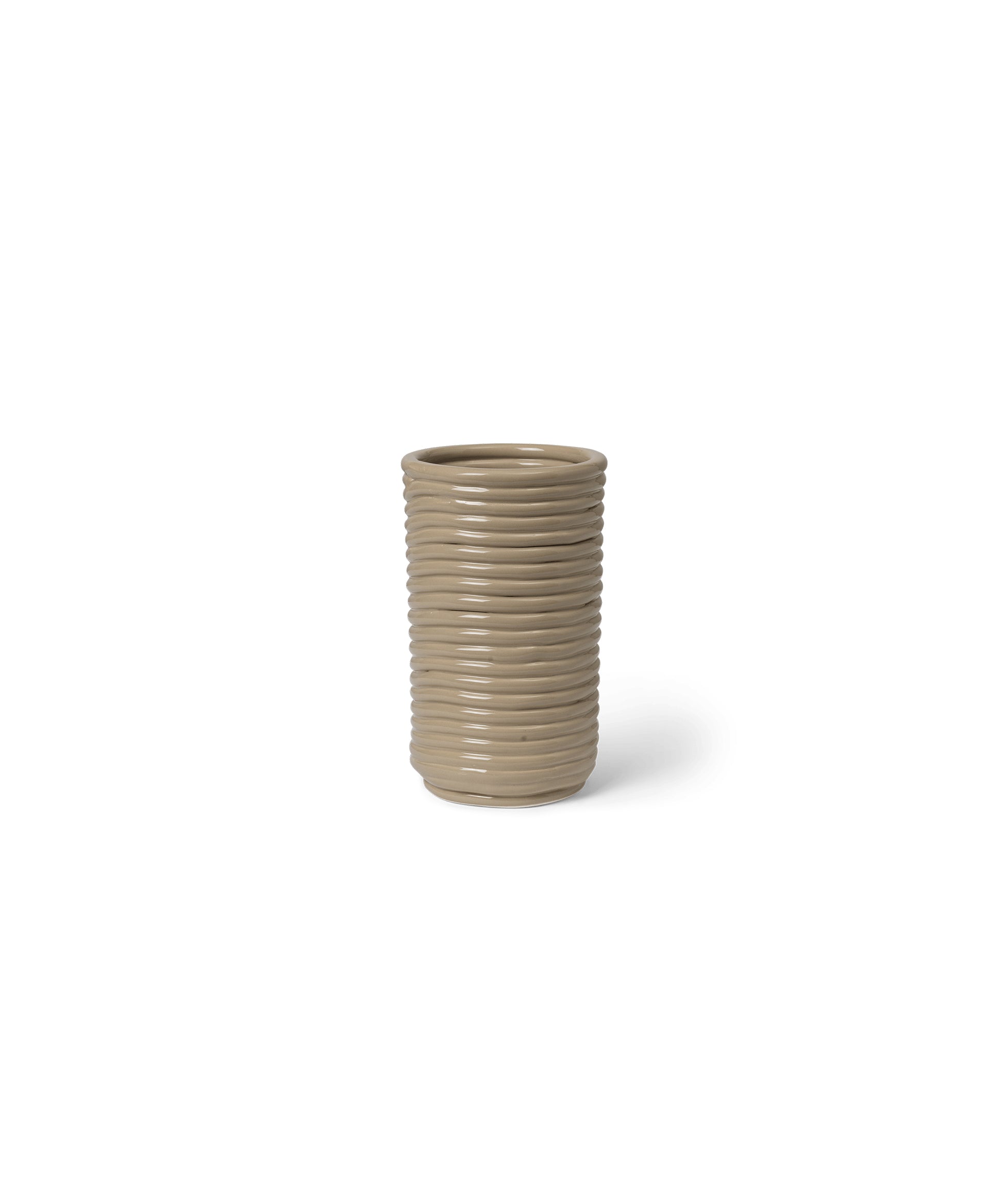 Skillfully crafted from glazed ceramic, the Corduroy Vase brings an element of crafted charm into your living space.