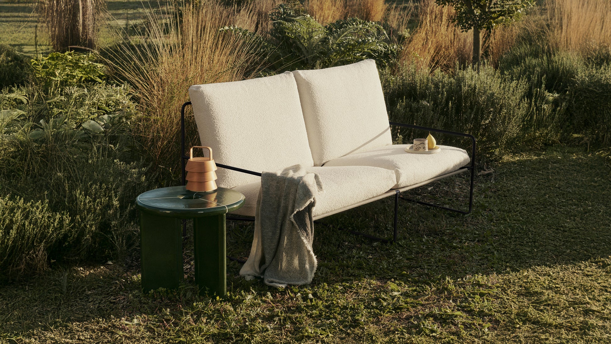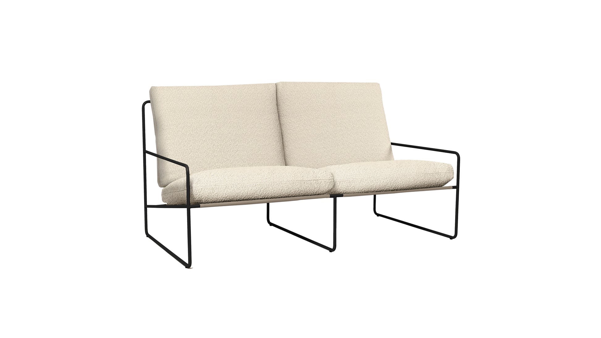 The Desert Sofa is offered in an outdoor bouclé upholstery. Typically reserved for indoor settings, this textured bouclé has been specially treated to be water-repellent, allowing you to enjoy the cosy feel of indoor comfort in your outdoor spaces.