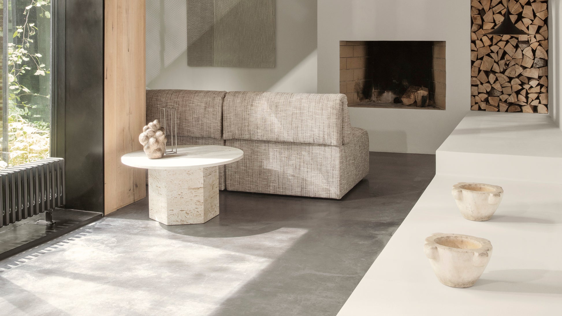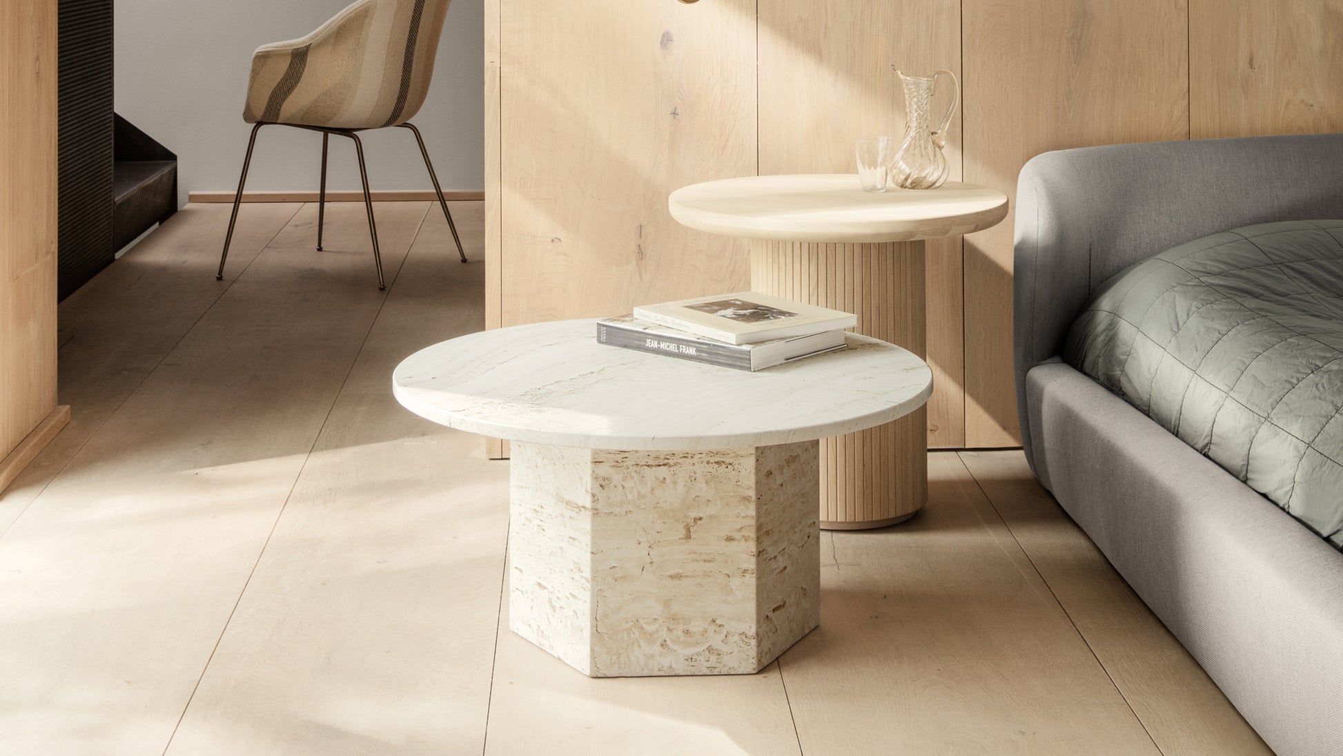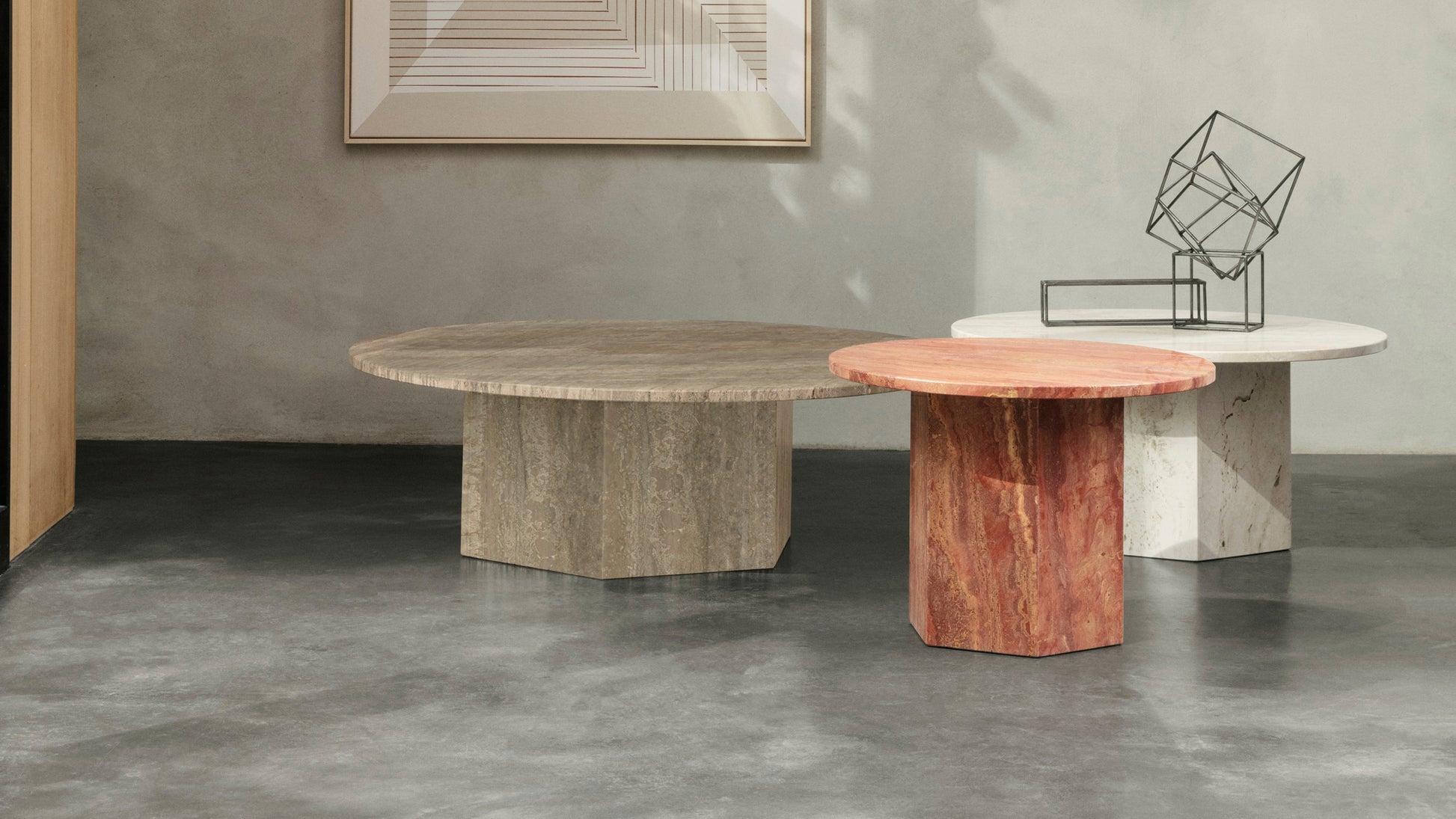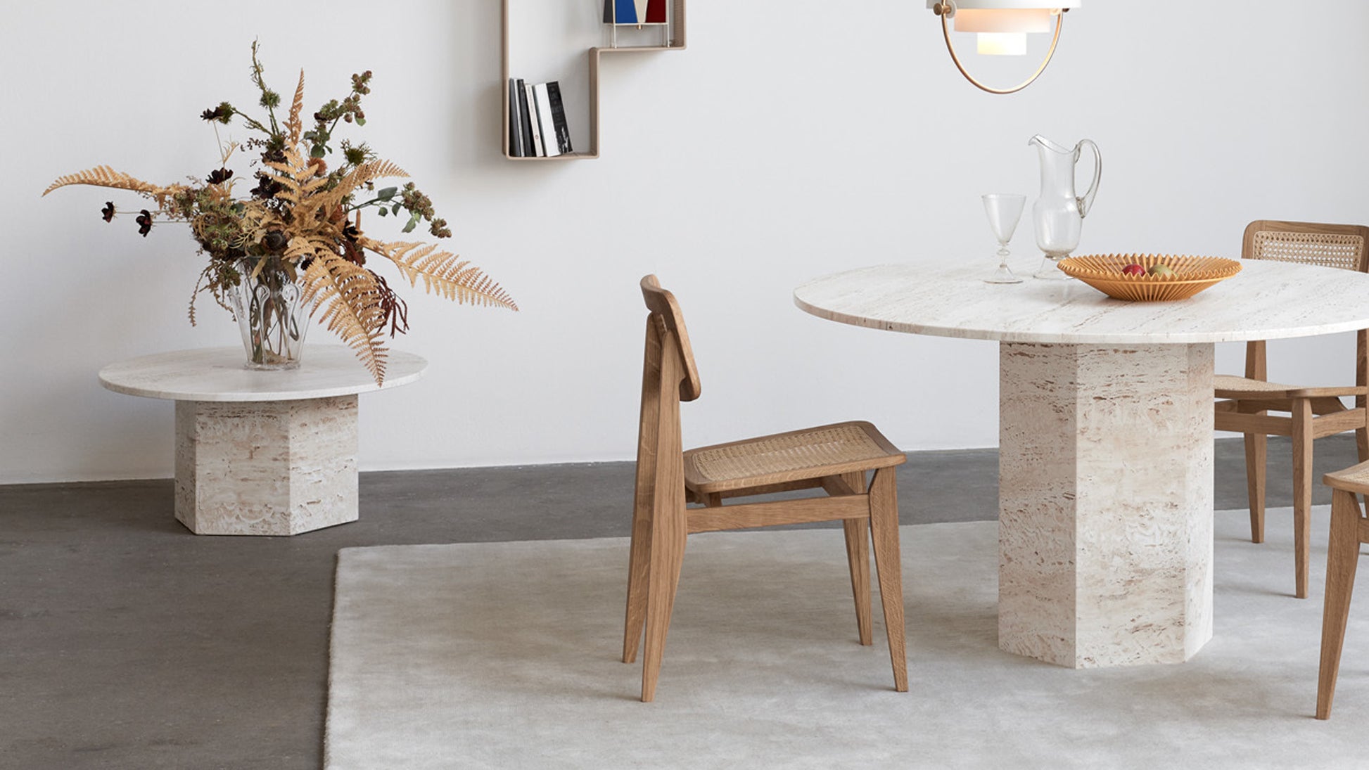 Designed by GamFratesi, the Epic Table is a sculptural piece of furniture inspired by Greek columns and Roman architecture.