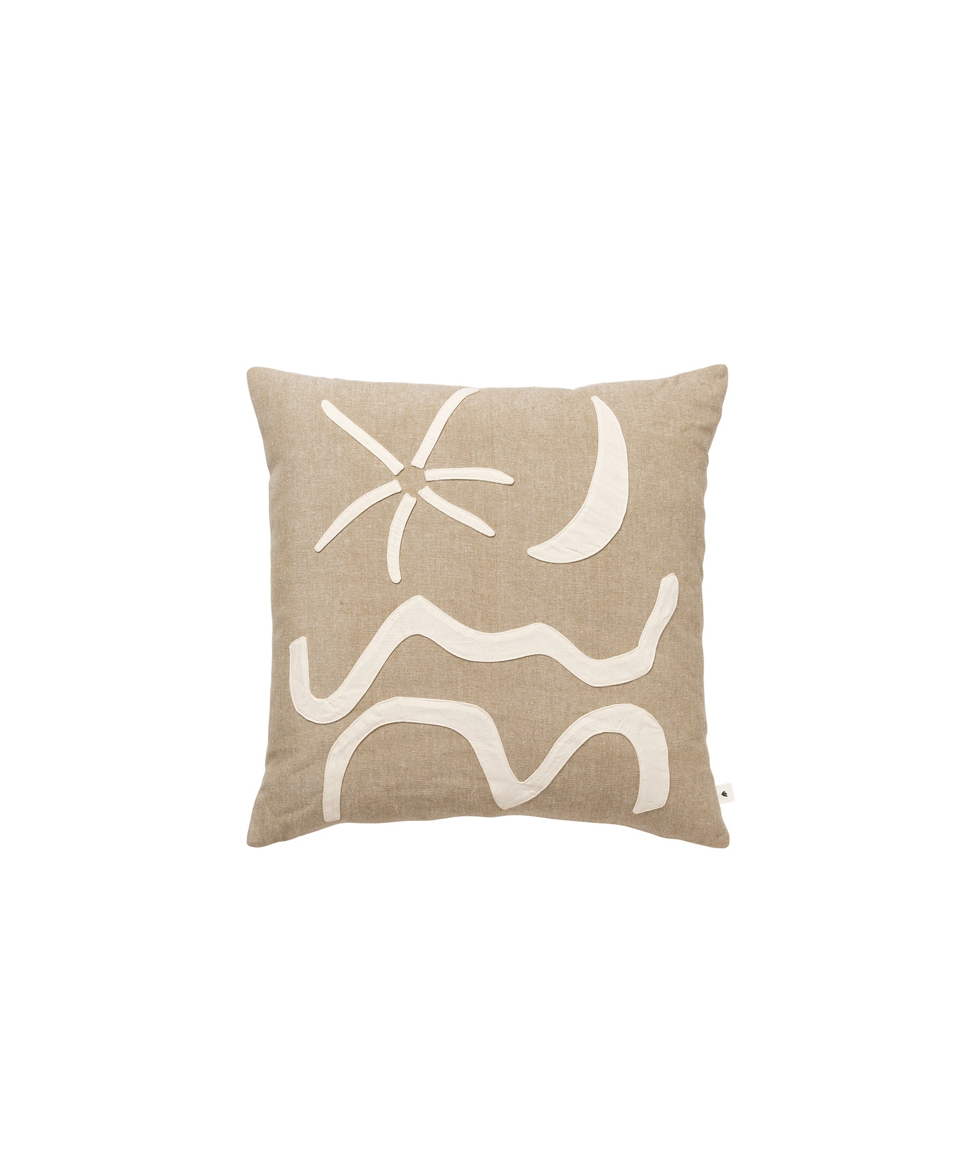 Inspired by the natural beauty of Mediterranean coastlines, the Kove Appliqué Cushion is expertly crafted from 100% GOTS-certified organic cotton.