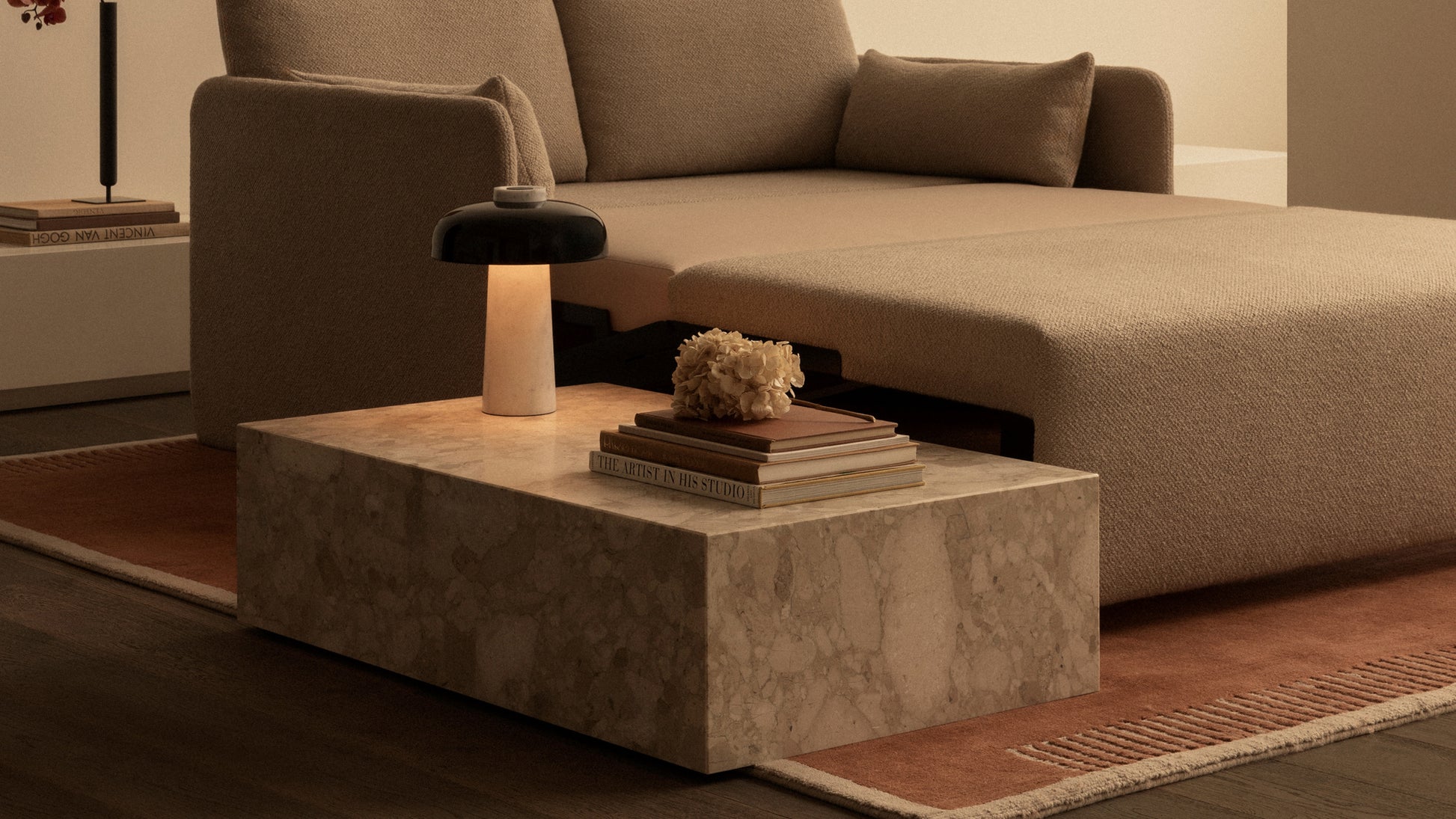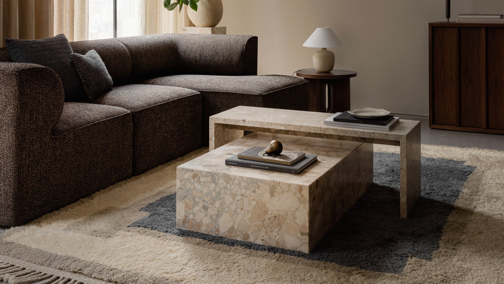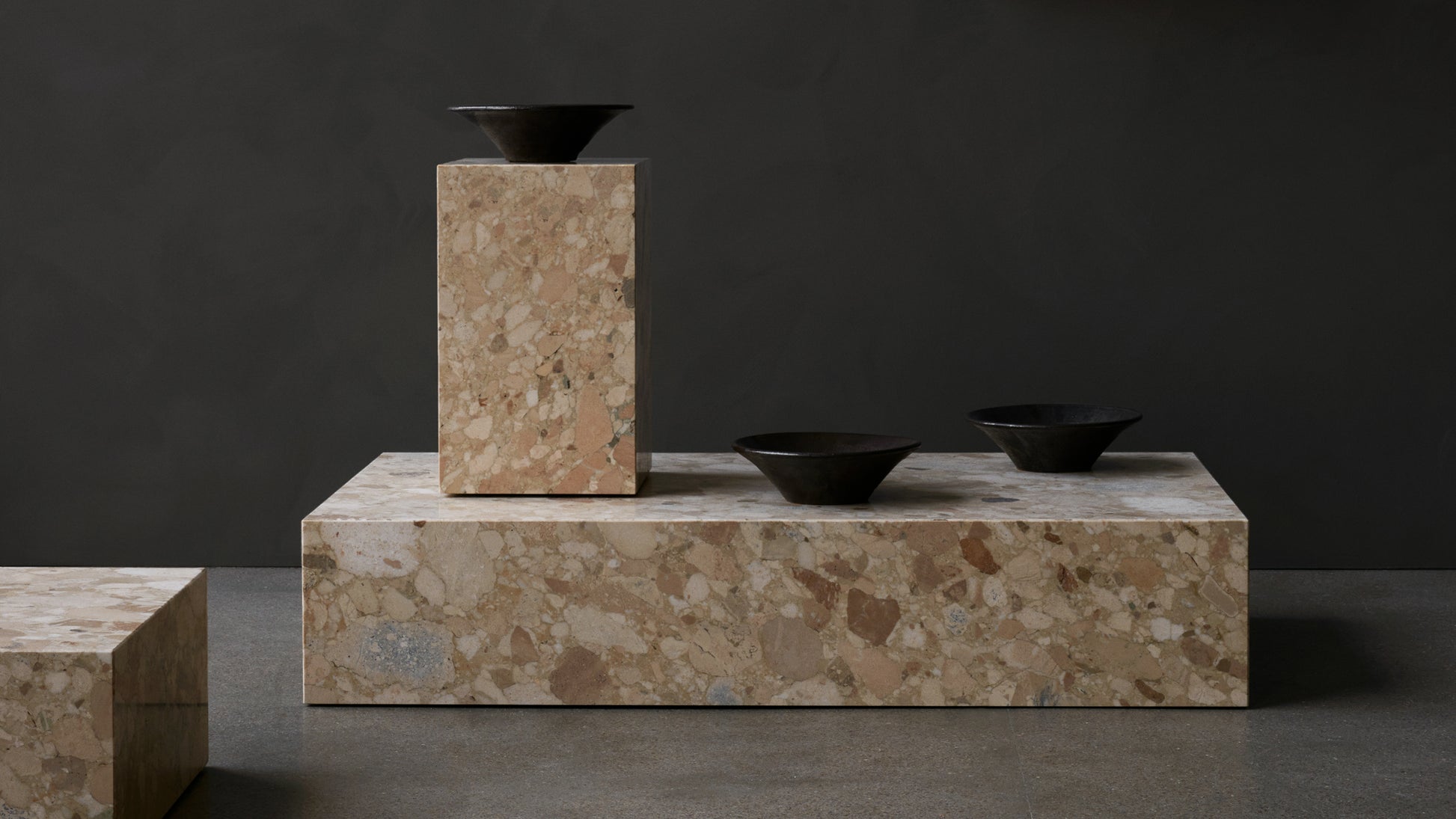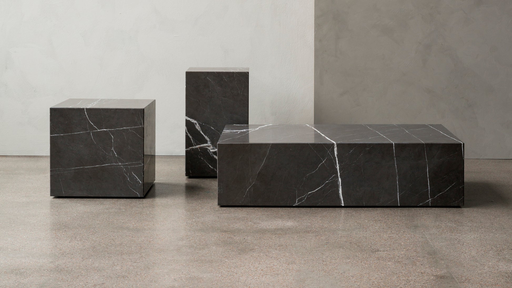 Clad in marble, these Plinth Tables will anchor your room with a touch of luxury.